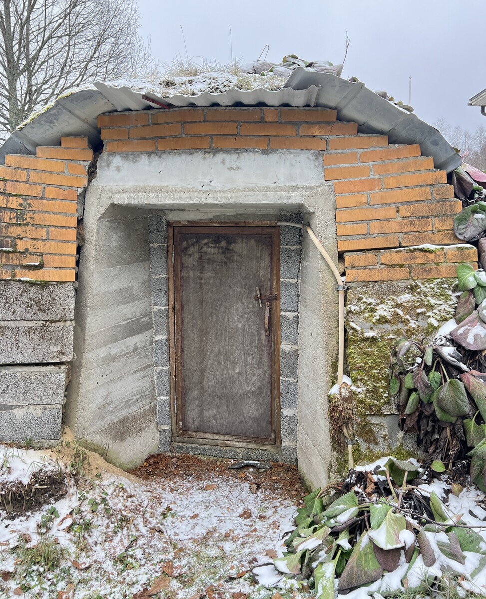 Erillinen maakellari pihalla.