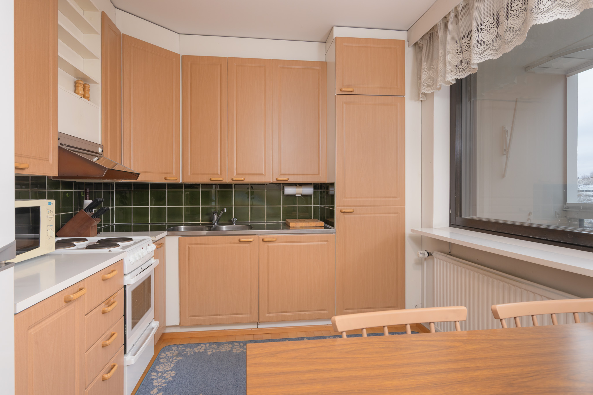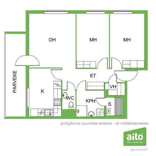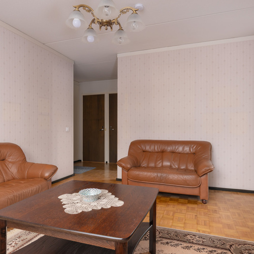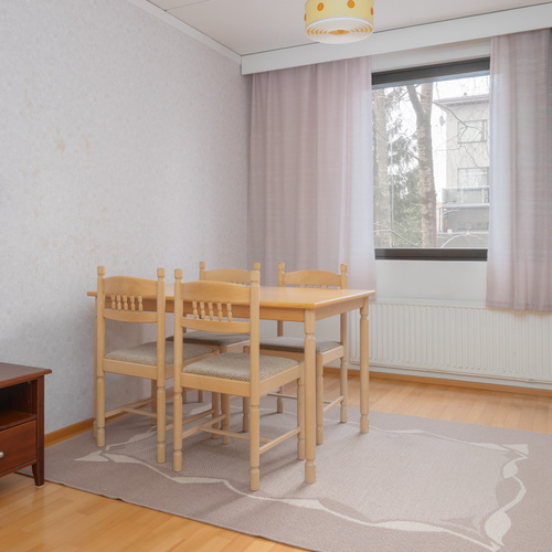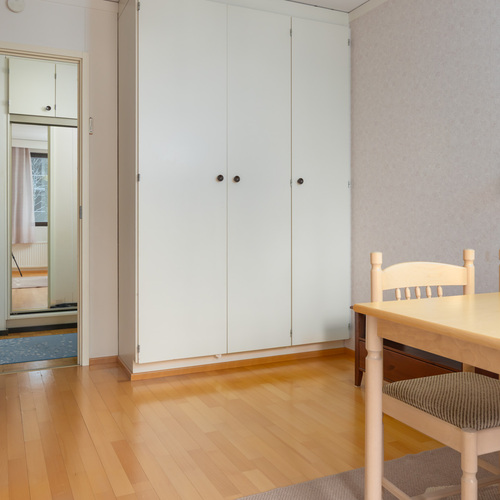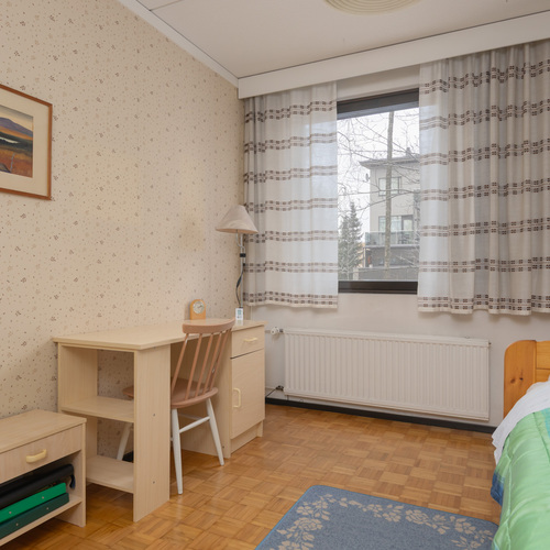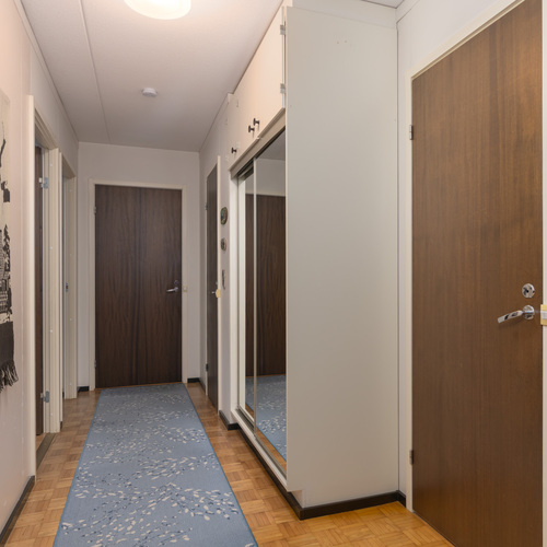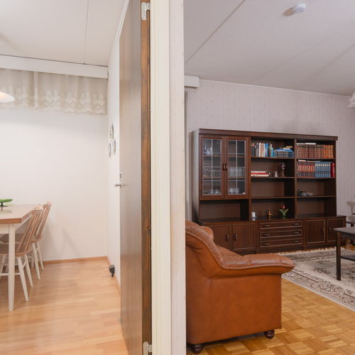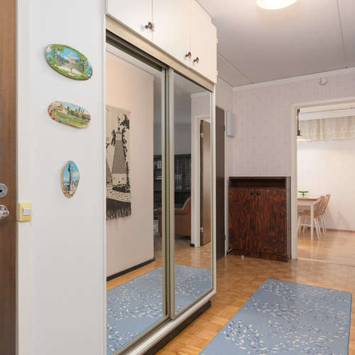 Kolme huonetta, keittiö ja sauna muodostavat toimivan kokonaisuuden: kaksi reilunkokoista makuuhuonetta ja olohuone, josta on kulku tilavalle lasitetulle parvekkeelle. Parvekkeelta avautuvat puistomaiset ja viihtyisät näkymät kaupungille ja asuinalueelle. Oma sauna on aina käytettävissä rentouttamaan arkea ja erillinen wc tekee arjesta sujuvampaa.