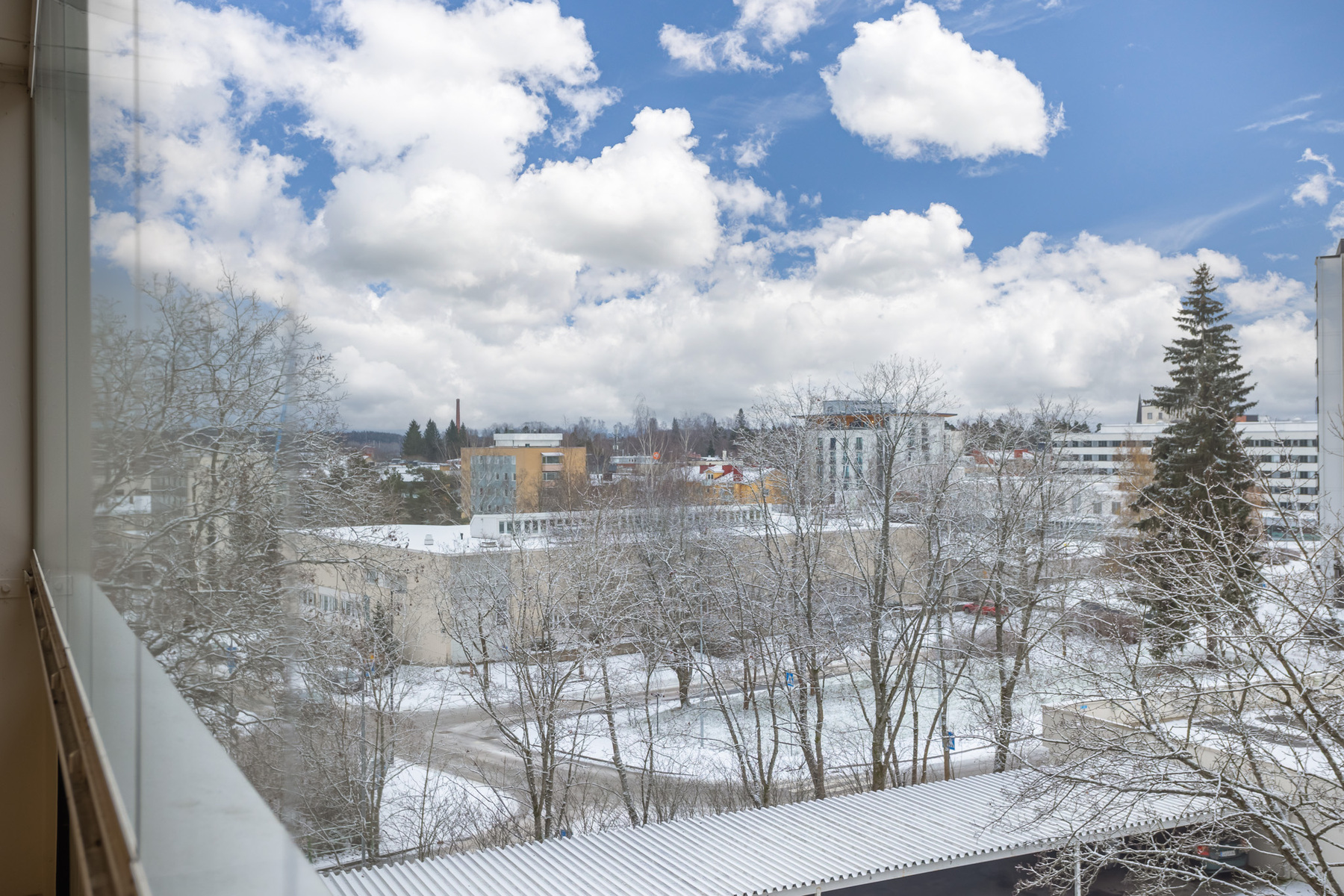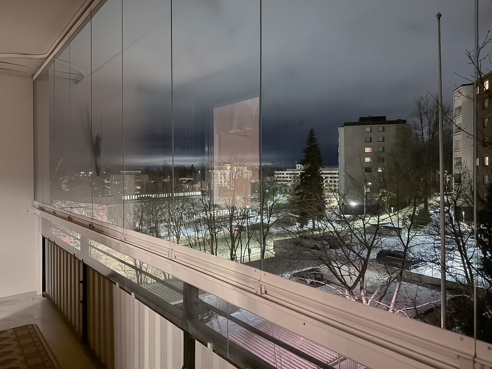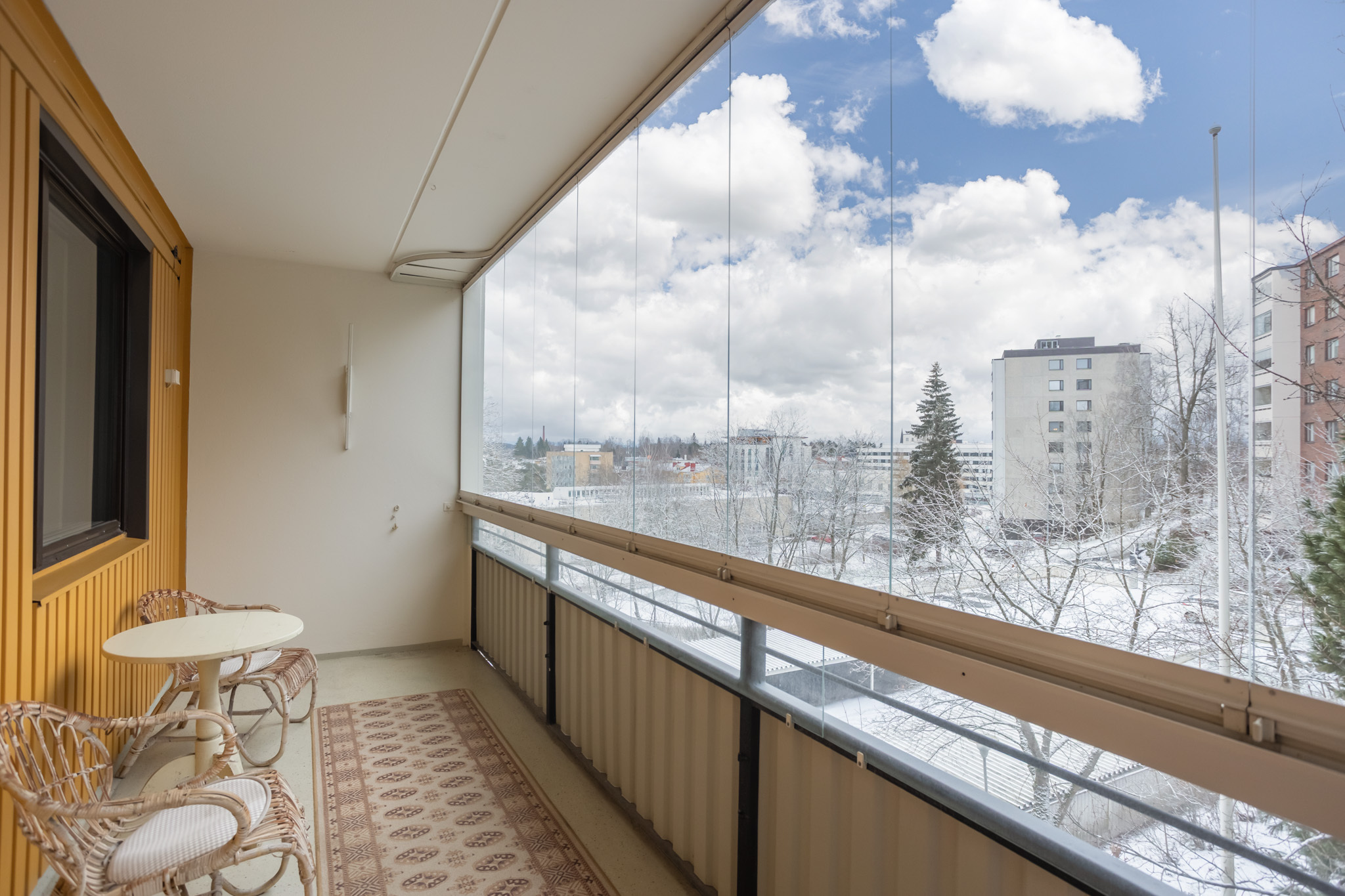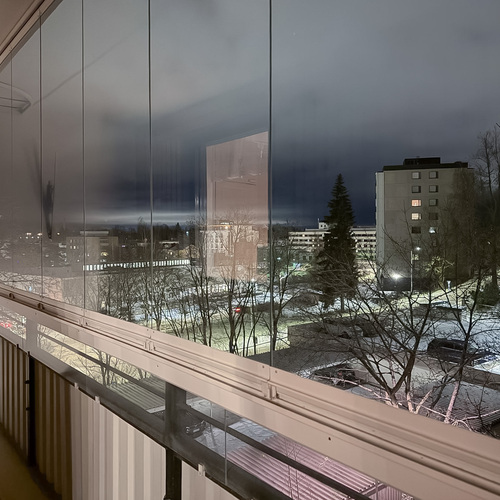 Todella tilava lasitettu parveke.