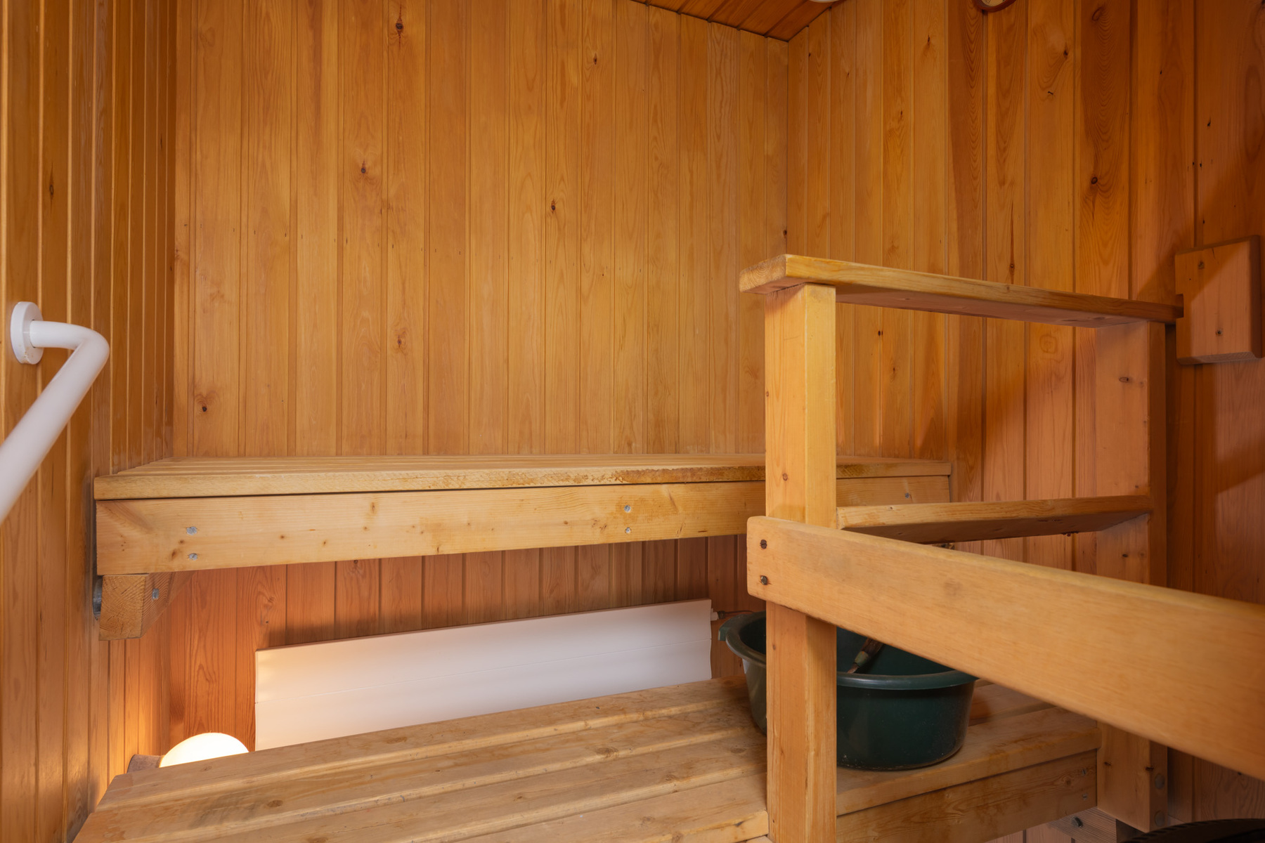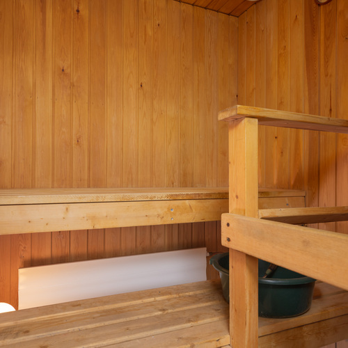 Oma sauna. Sähkökiuas, lauteet. Laattalattia.