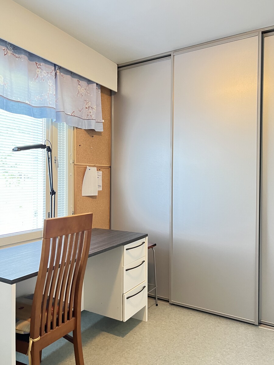 Vuonna 1996 valmistunut huoneisto sijaitsee talon päädyssä, mikä tuo lisää omaa rauhaa ja käytännöllisyyttä arkeen. Pohjaratkaisu on selkeä ja toimiva: olohuone, keittiö, kolme makuuhuonetta, kaksi wc:tä, kylpyhuone, kodinhoitohuone sekä oma sauna. Keittiö ja pintoja on uudistettu vuonna 2021, joten koti on muuttovalmis ilman välittömiä remonttihuolia.