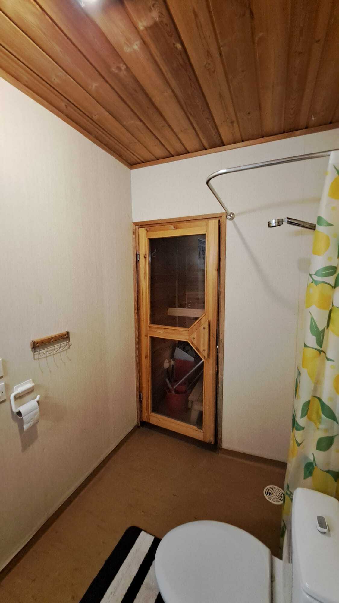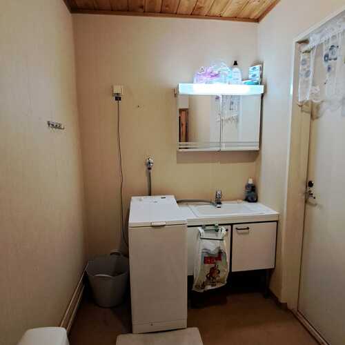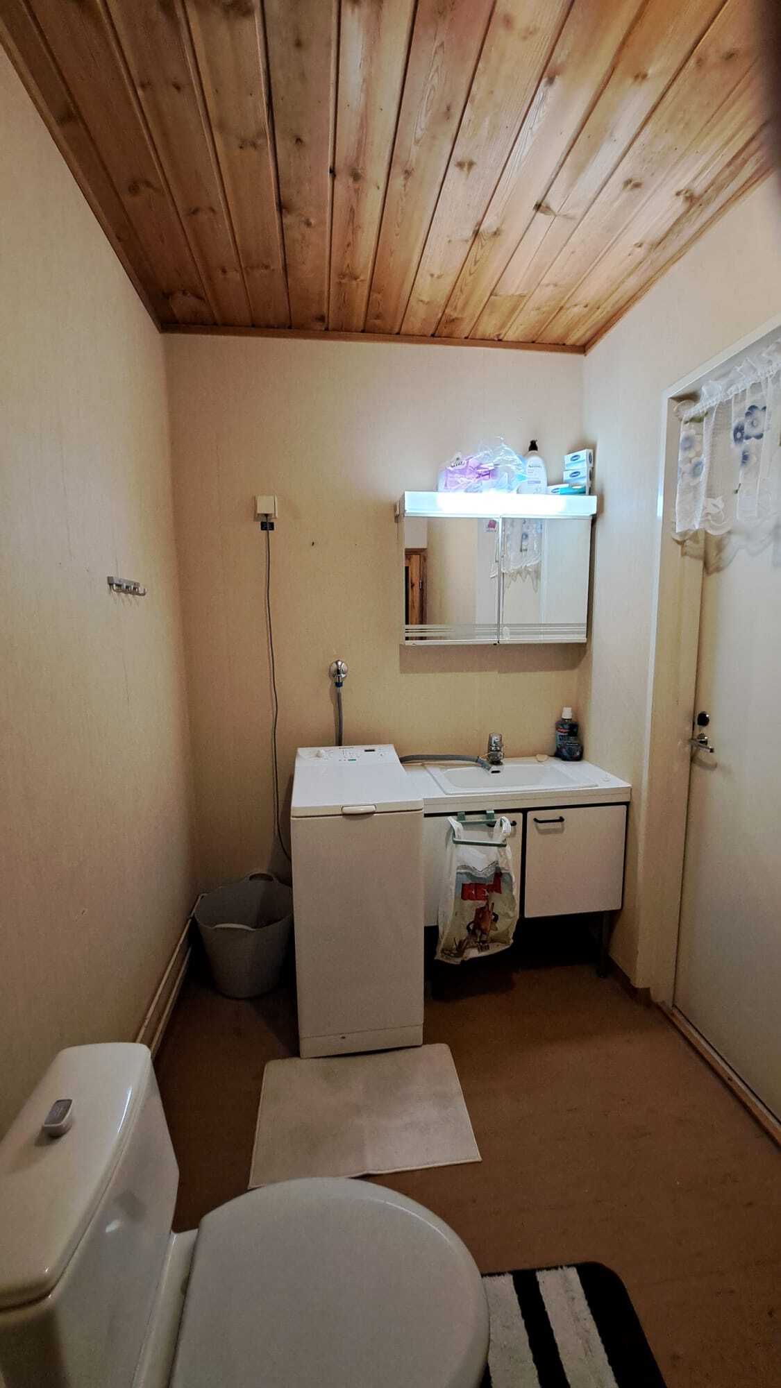 Pintamateriaalit: lattia muovi, seinät maalattu (välitilassa kaakeli), katto maalattu rakennuslevy.