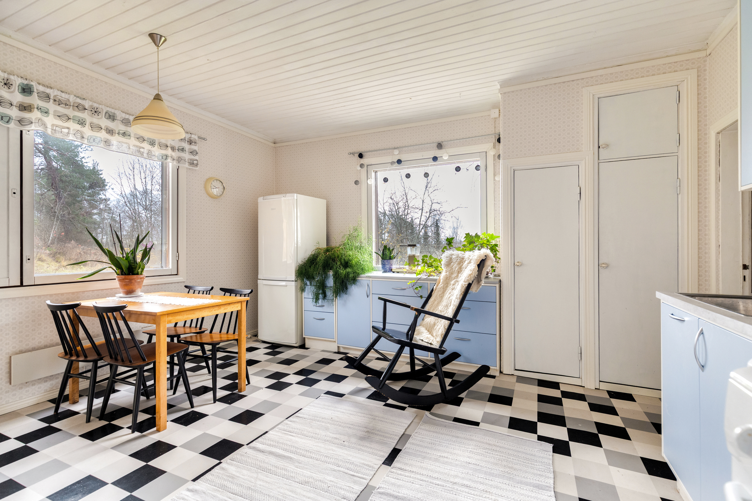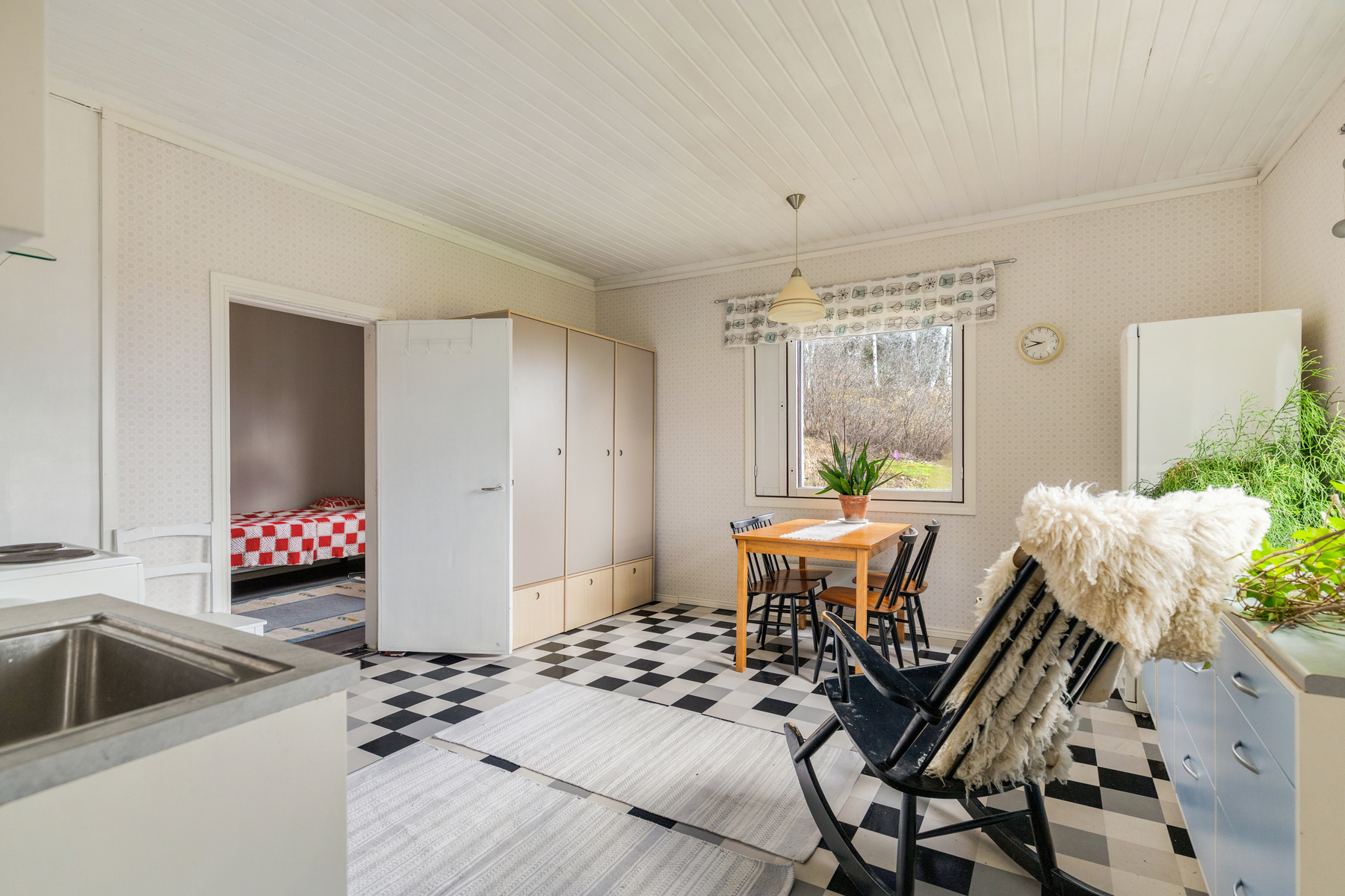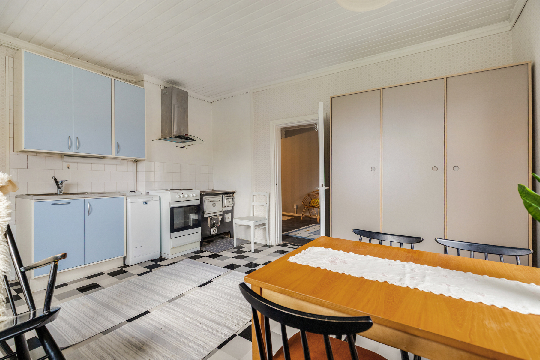 Varusteet: jääkaappipakastin, pesukoneliitäntä, sähköliesi, puuhella, liesituuletin