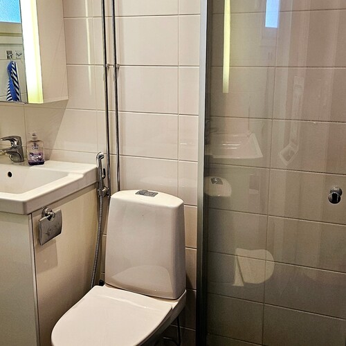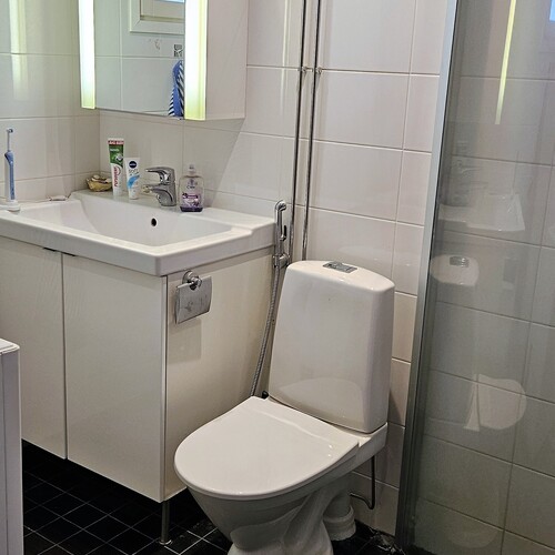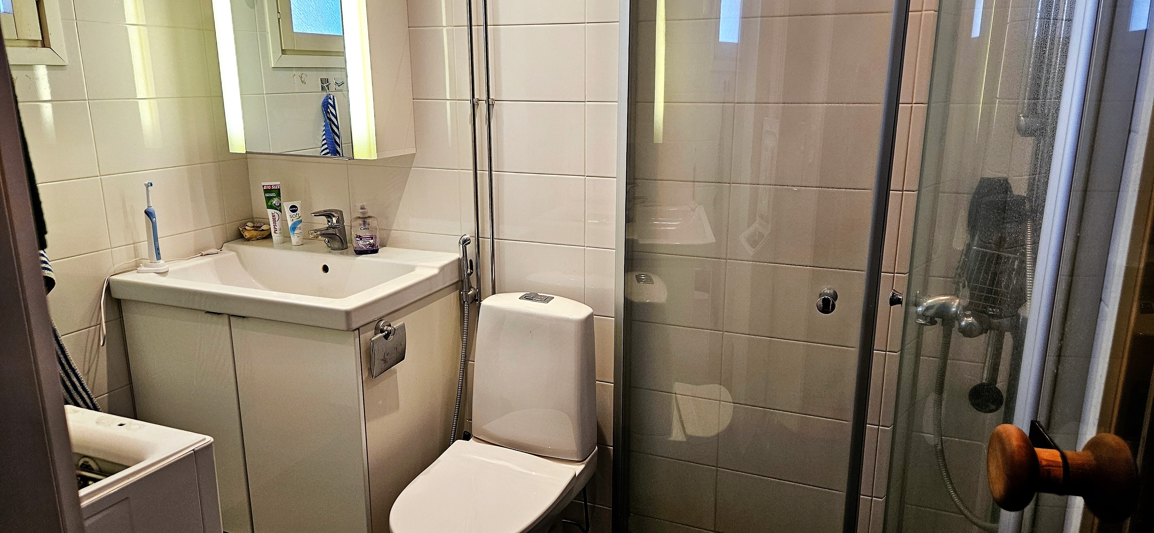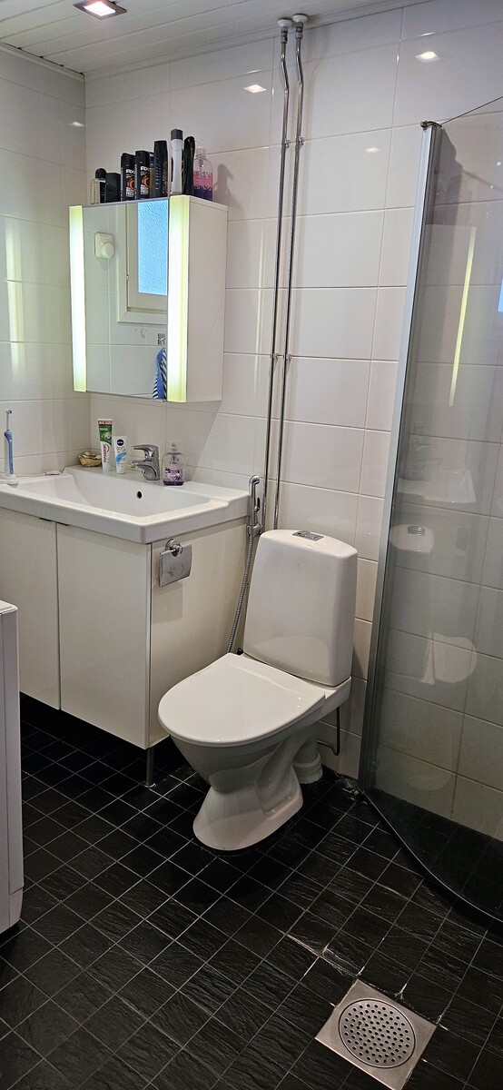 Kylpyhuone on uusittu vuonna 2012 ja sen yhteydessä sijaitsee oma sauna. Pesutilat ovat siistit ja toimivat, ja kokonaisuus tukee arjen sujuvuutta. Asunnossa on lisäksi autokatospaikka sähköpistokkeella, mikä lisää käyttömukavuutta erityisesti talviaikaan.