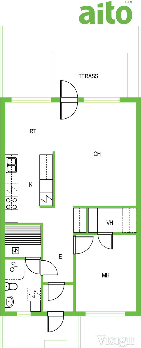 Asunnon 57 neliötä on käytetty tehokkaasti. Olohuone ja keittiö muodostavat viihtyisän kokonaisuuden, josta on käynti omalle terassille. Terassi tuo mukavasti lisätilaa kesäkaudella ja tarjoaa paikan oleskeluun sekä pieneen puutarhanhoitoon. Makuuhuone on rauhallinen ja sopivan kokoinen, ja säilytystilaa löytyy sekä asunnosta että ulkovarastosta.