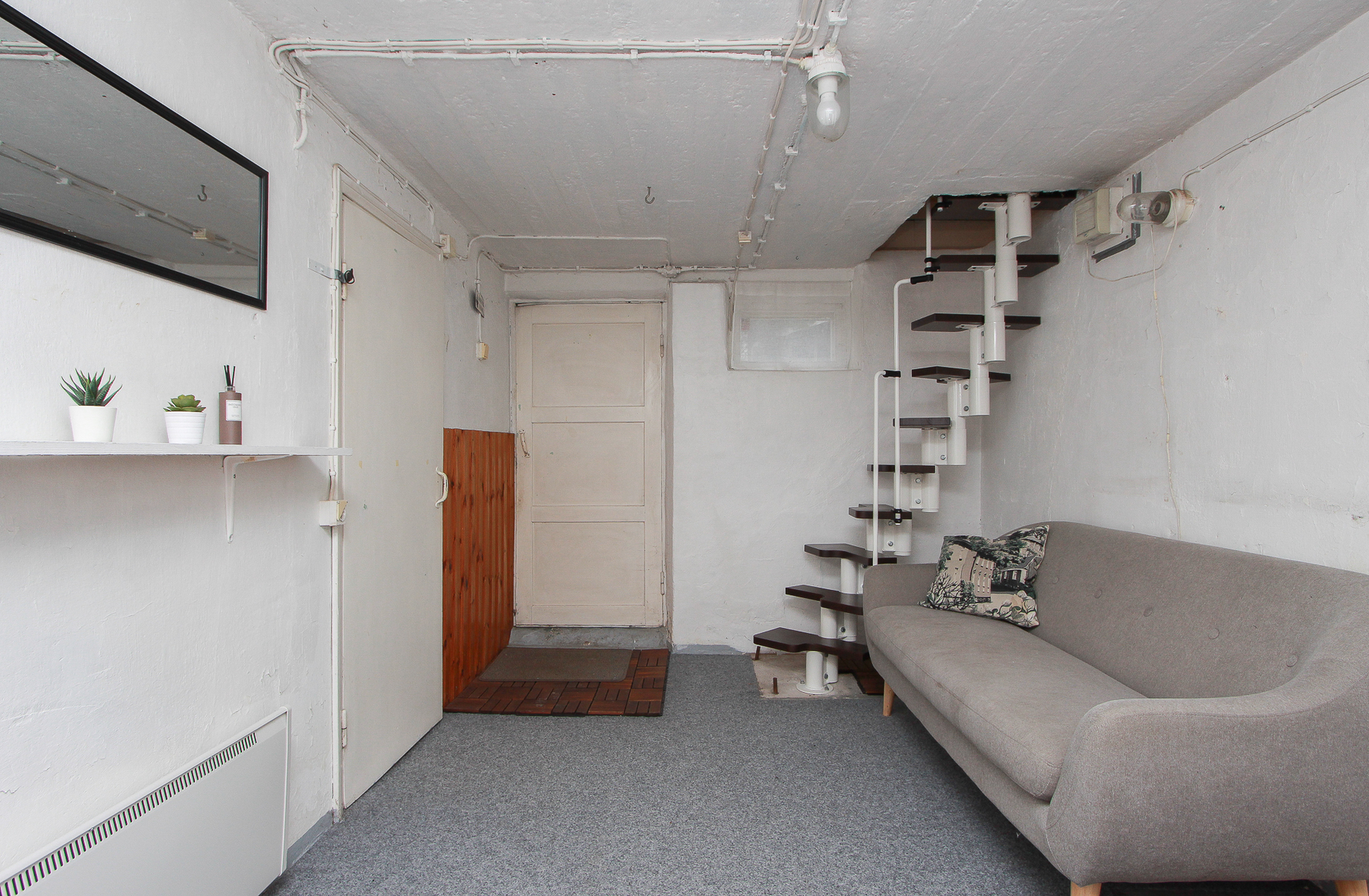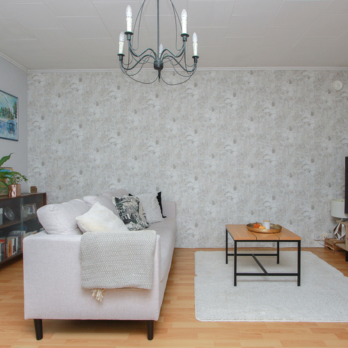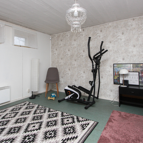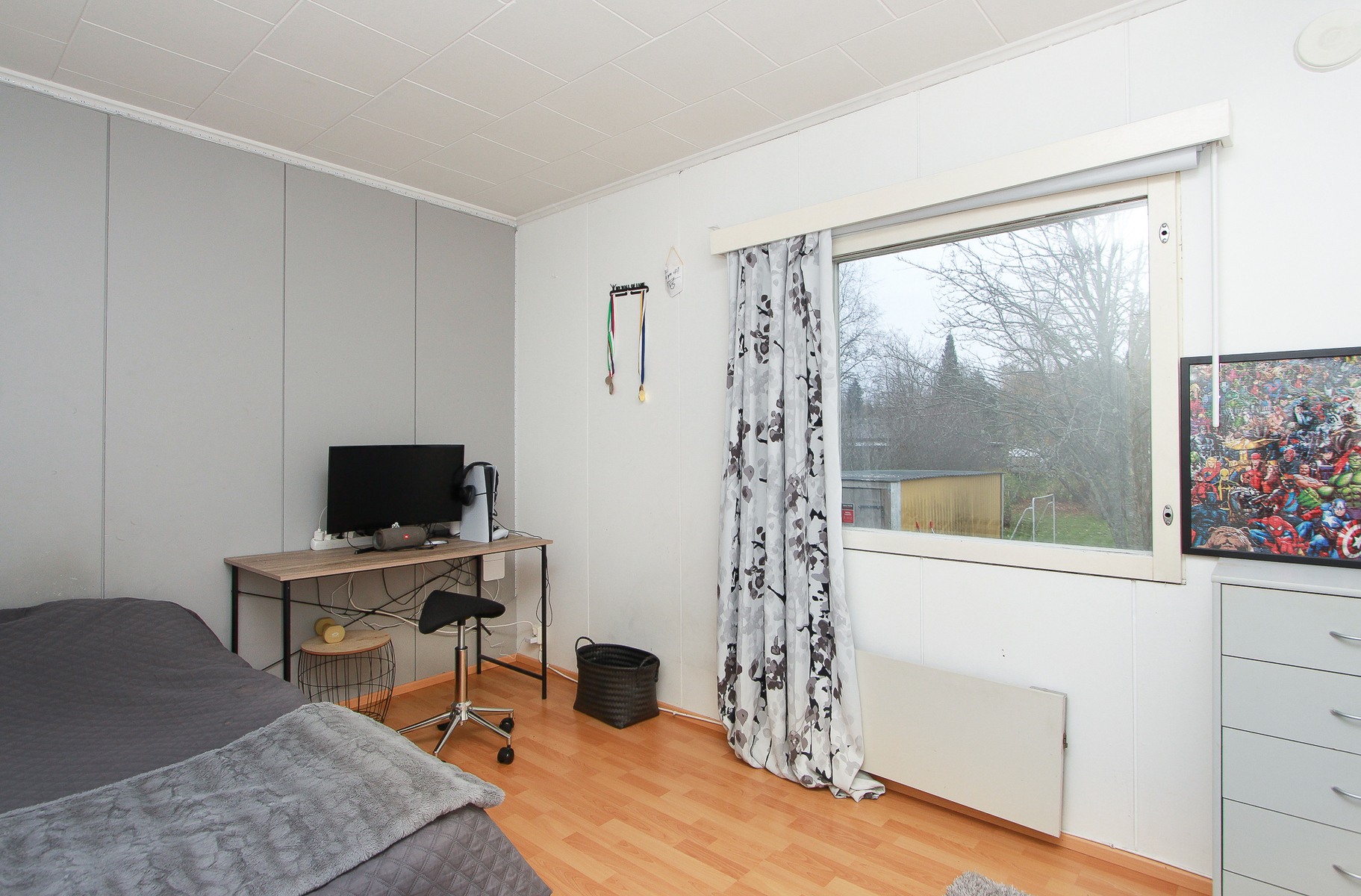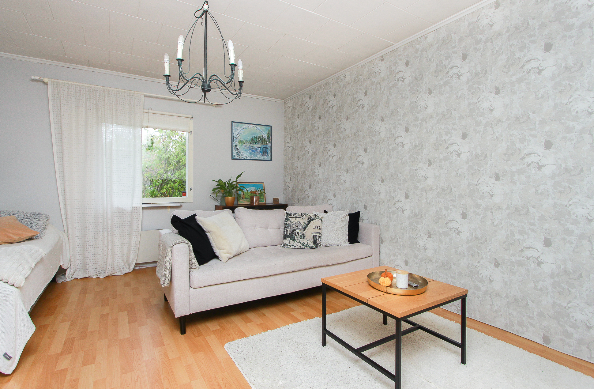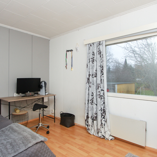 Lattia laminaattia. Seinät tapetoitu/maalattu.