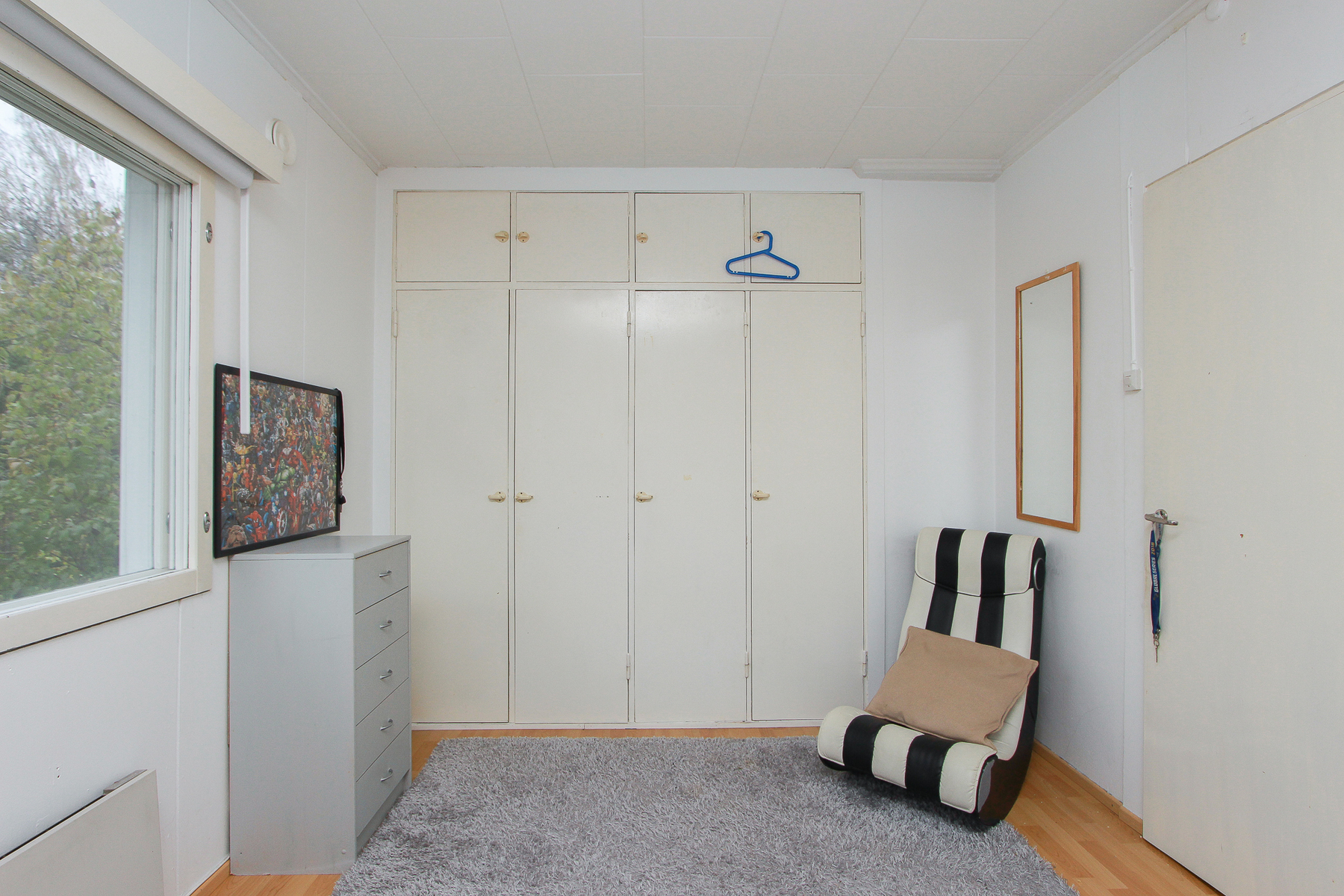 Lattia laminaattia. Seinät maalattu. Komerot.