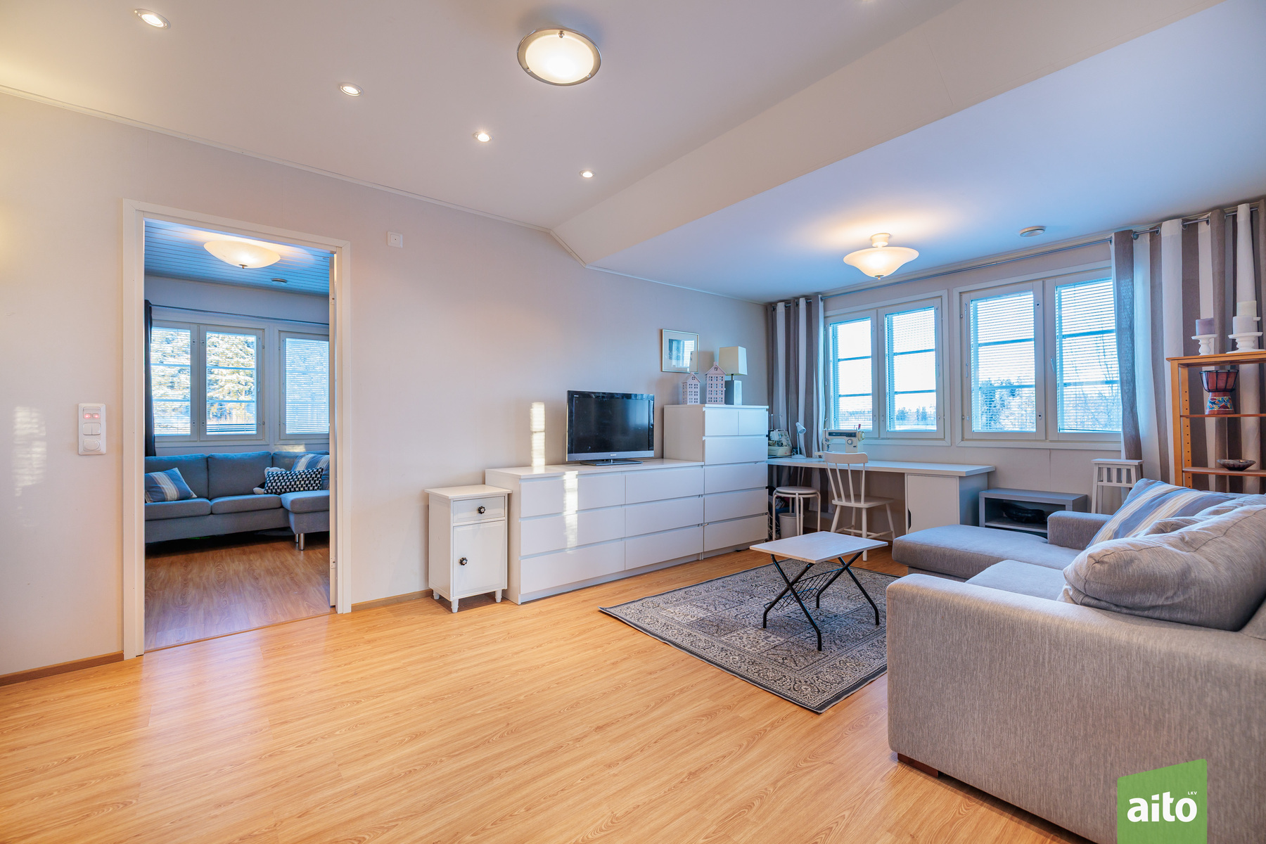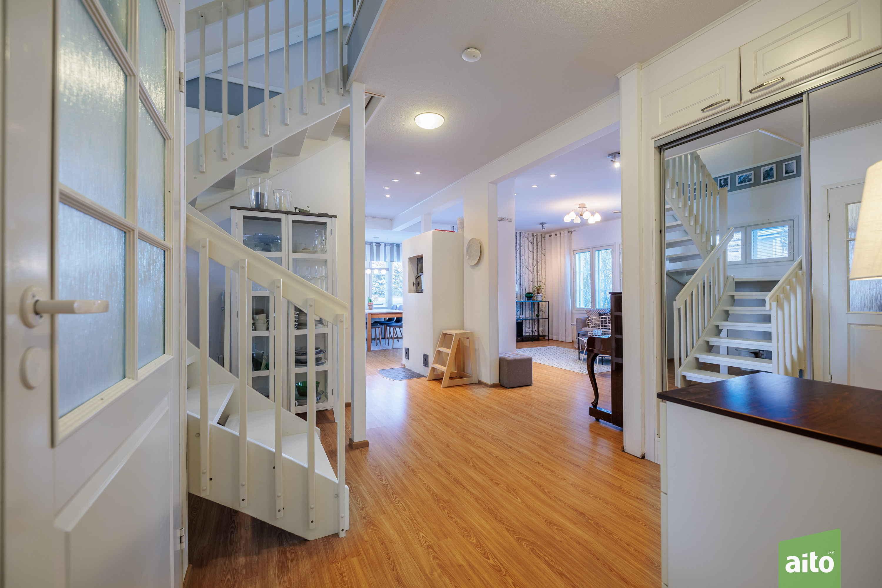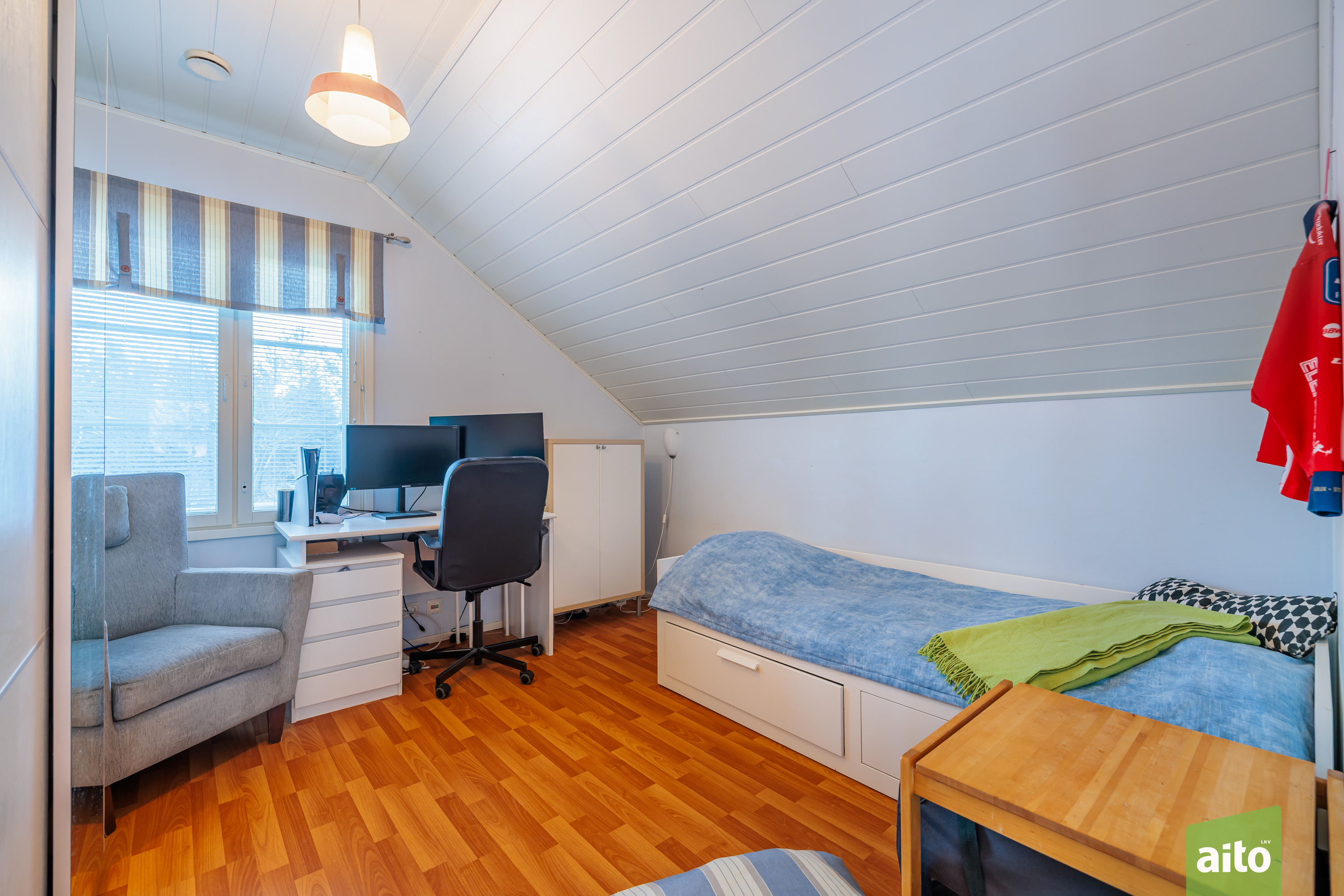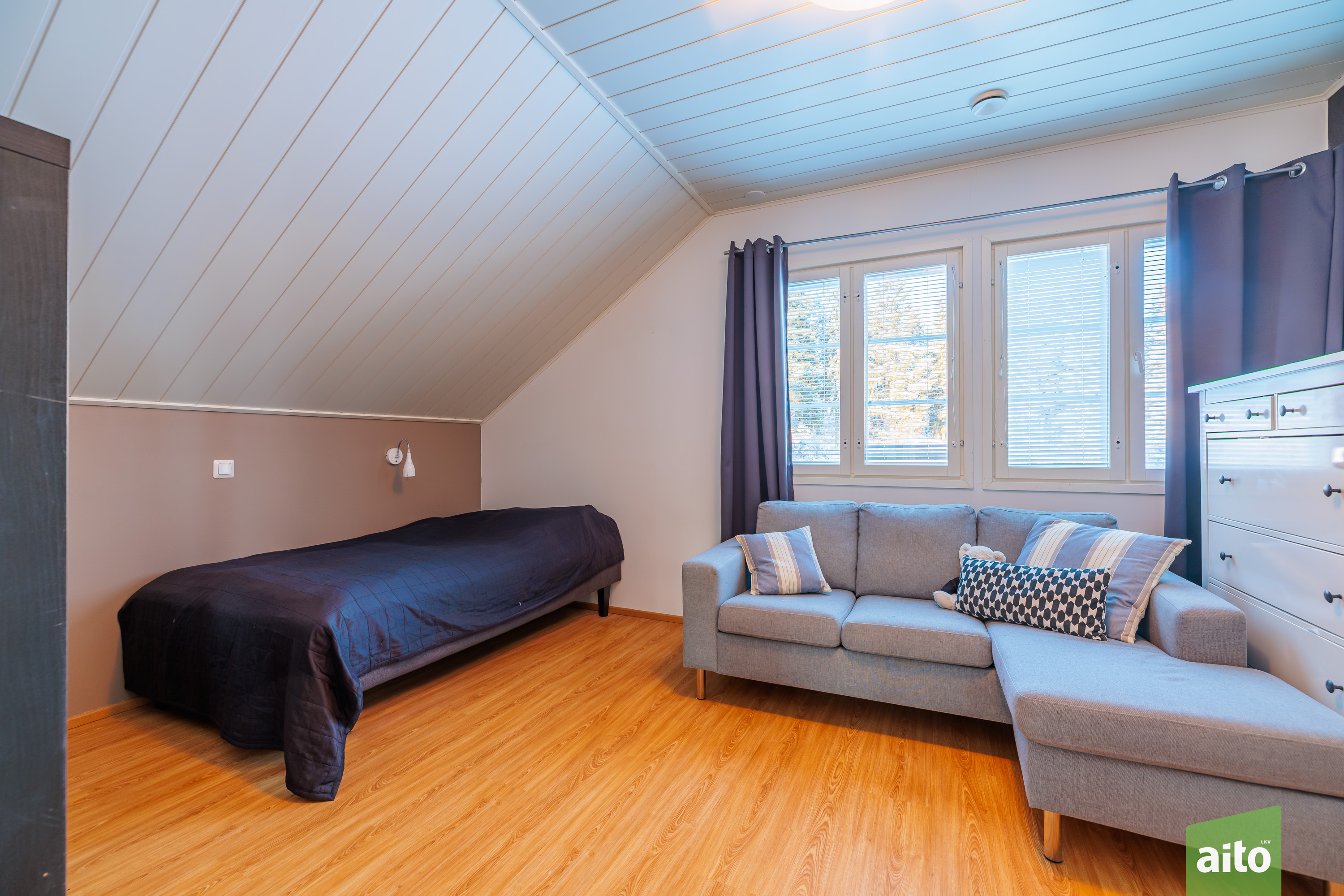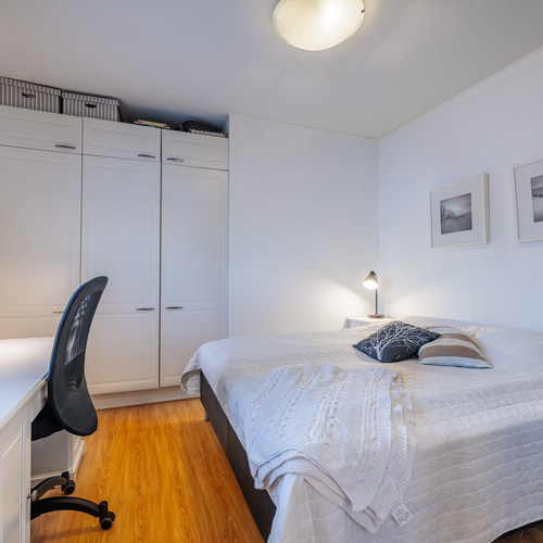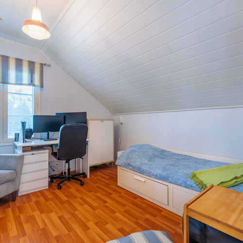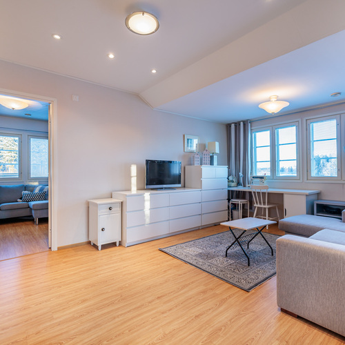 Asunnon tilaratkaisu palvelee monenlaisia elämäntilanteita. Yläkerrassa sijaitsevat varsinaiset makuuhuoneet, mikä tuo selkeyttä ja rauhaa asumiseen. Alakerrassa oleva makuuhuone ja/tai työhuone tarjoaa joustavan tilan etätyöhön, vierashuoneeksi tai harrastekäyttöön. Olohuone ja keittiö muodostavat toimivan kokonaisuuden, jossa arki ja yhdessäolo kohtaavat luontevasti.