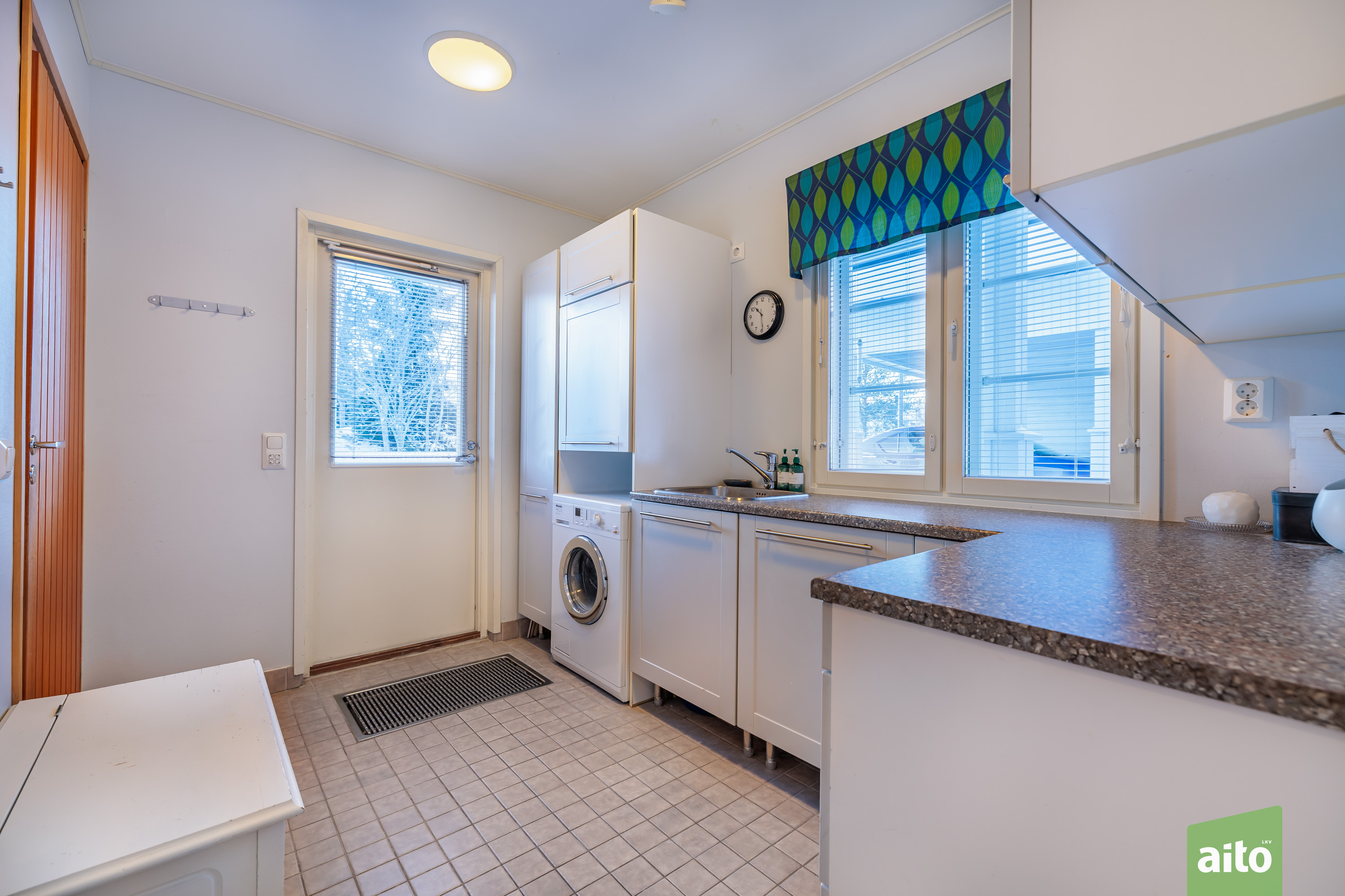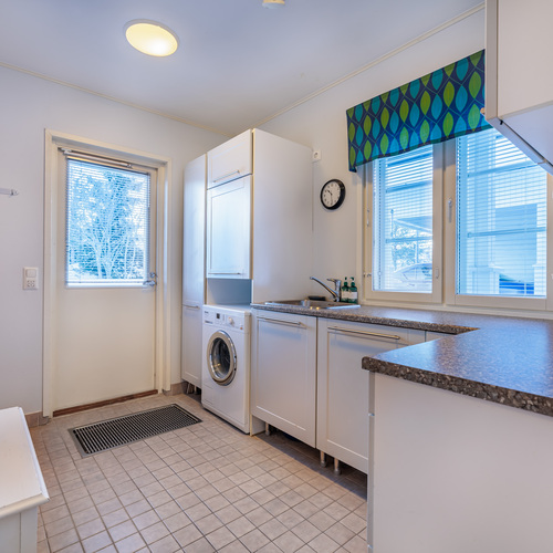 Lämmin varasto autotallin yhteydessä.