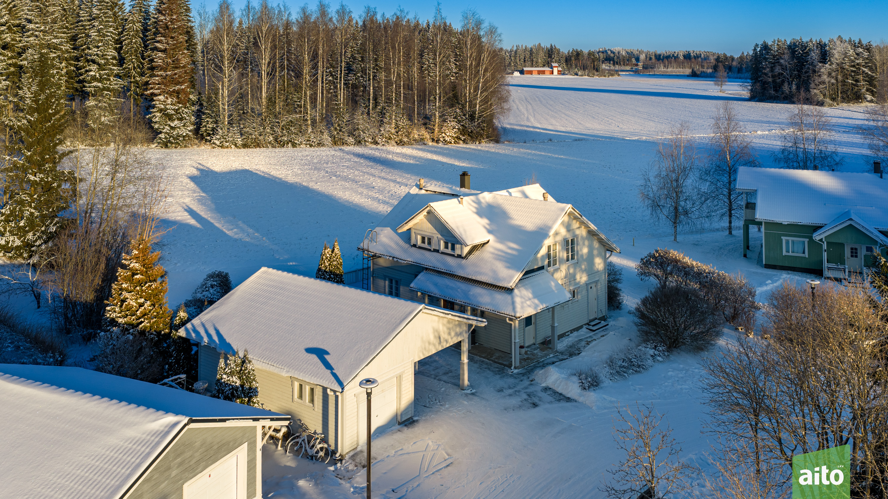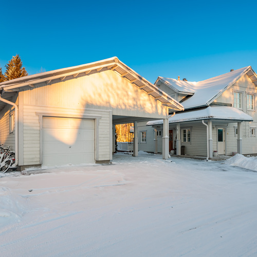 Pihapiirissä on autokatos sekä lämmin varasto, joka tuo kaivattua säilytystilaa ja käytännöllisyyttä. Autotalli on kylmä, mutta sopii erinomaisesti varastointiin tai harrastekäyttöön. Kokonaisuus tarjoaa hyvät puitteet aktiiviseen arkeen ja kodin askareisiin.