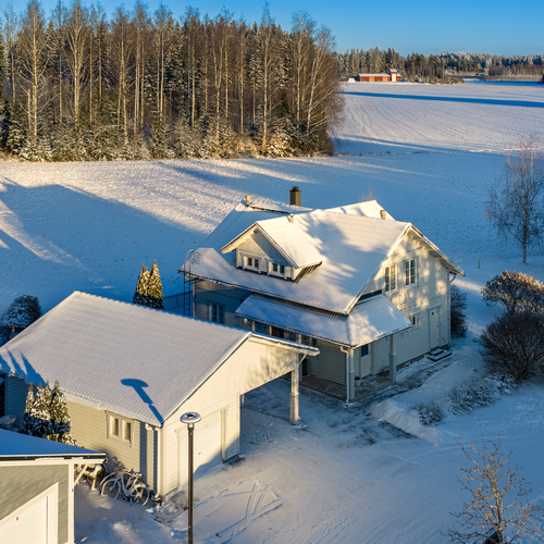Päättyvän kadun varrella sijaitseva omakotitalo tarjoaa poikkeuksellisen rauhallisen asuinympäristön. Olohuoneesta avautuu avara peltonäkymä, joka tuo tilaan valoa ja avaruutta sekä vuodenaikojen kauneuden osaksi arkea. Piha-alue on suojaisa ja viihtyisä, sopien niin oleskeluun kuin perheen yhteisiin hetkiin.