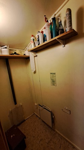 Pintamateriaalit: lattia betoni/laatta, seinät paneeli/kaakeli, katto lauta.