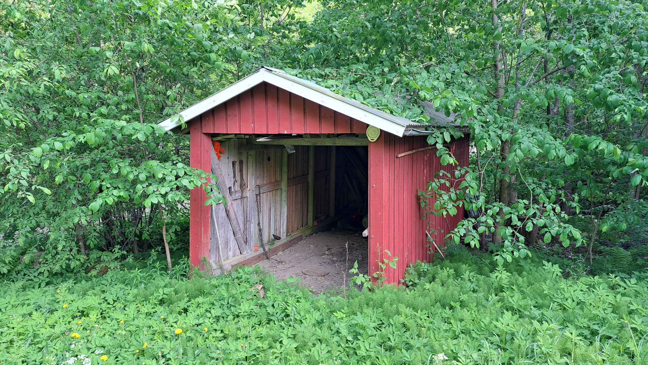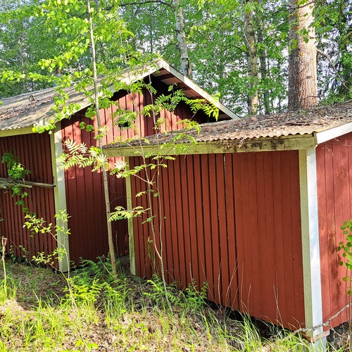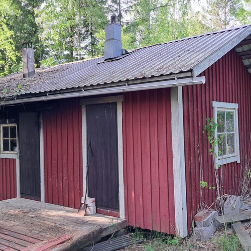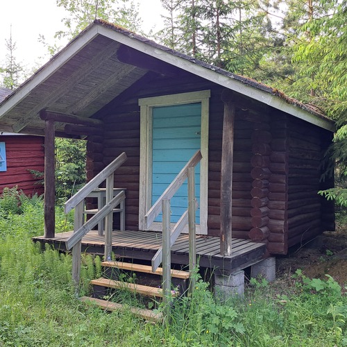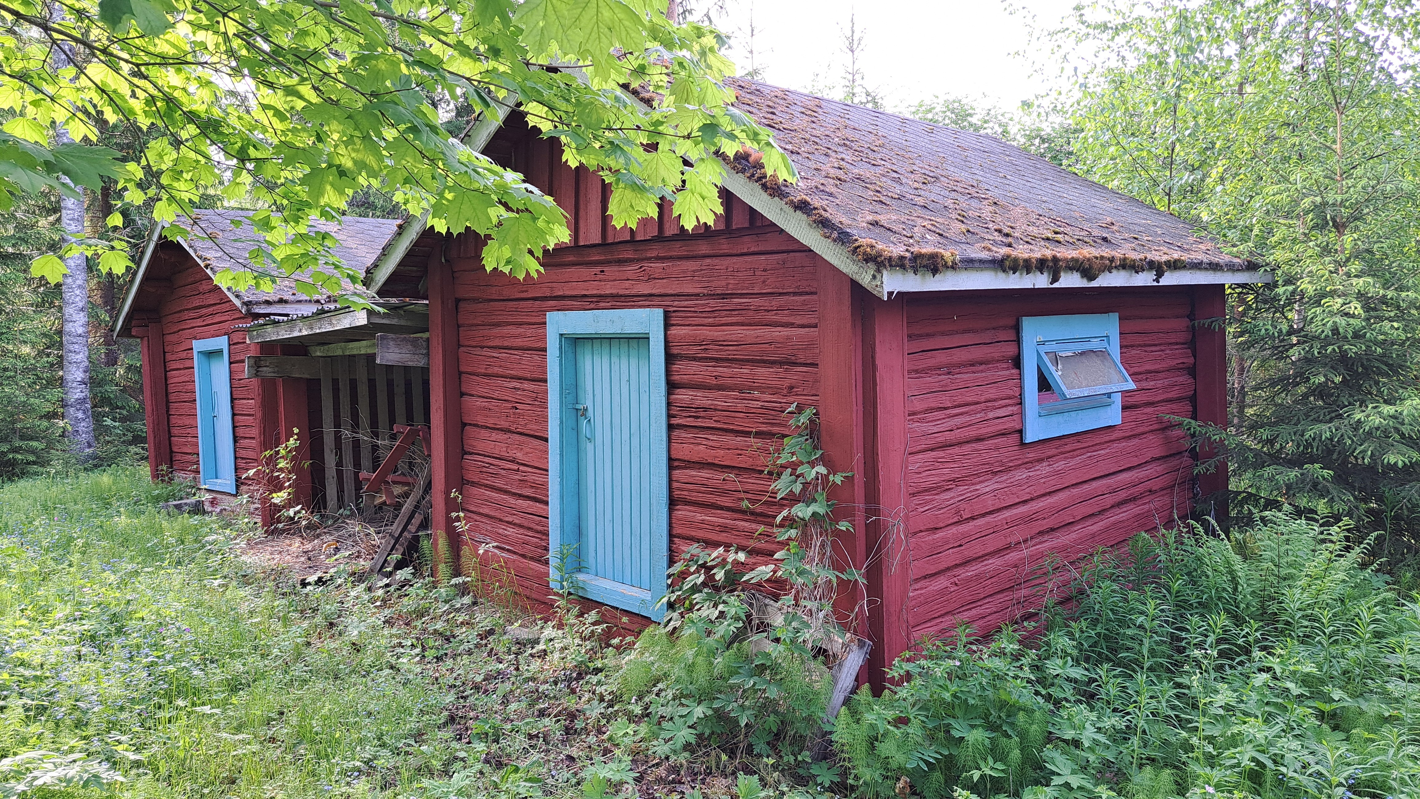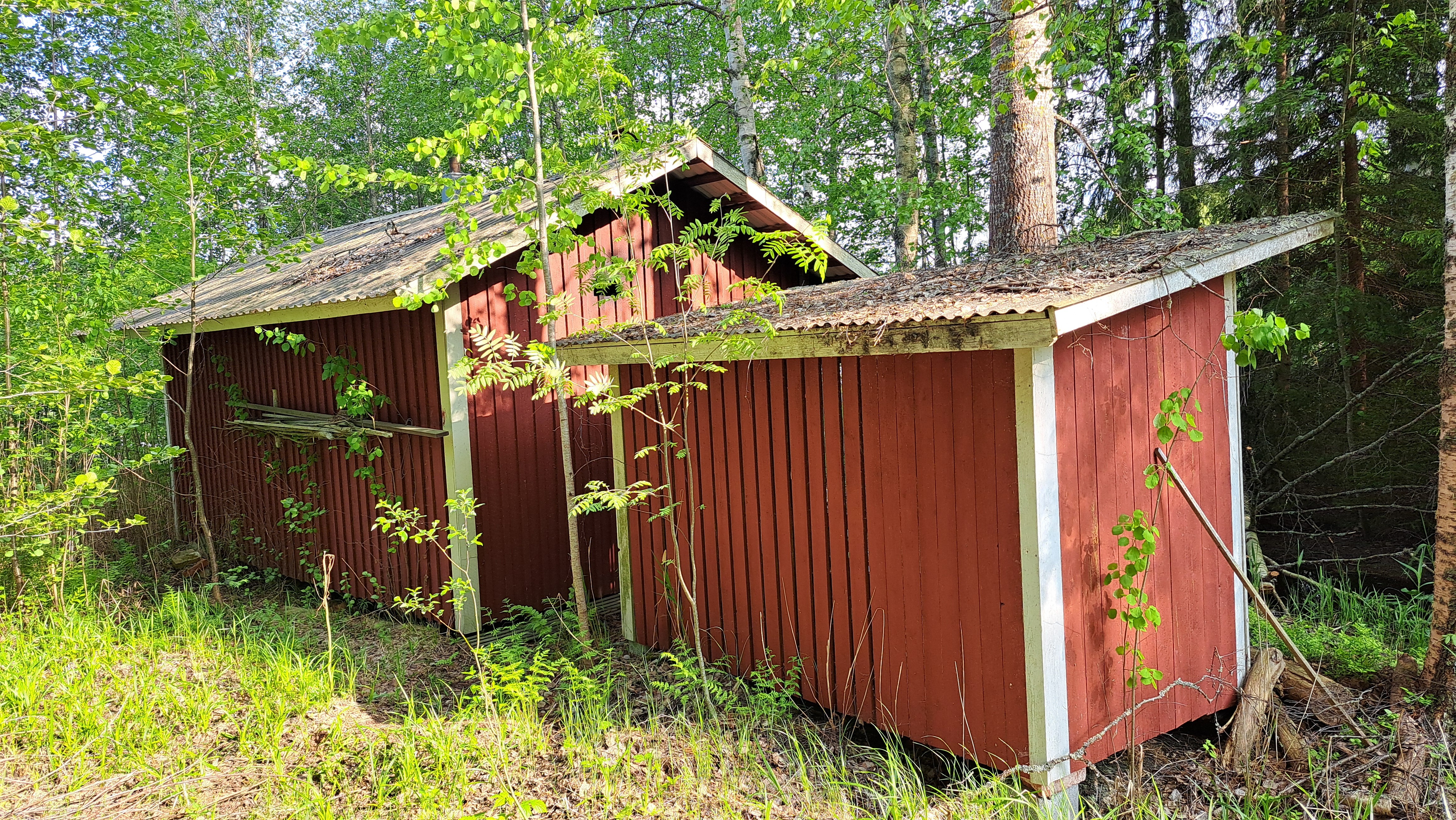 Rannassa kunnostusta kaipaava hirsi-/lautarakenteinen savusauna, jossa savusaunan lisäksi pieni saunatupa. Rakennuksen vieressä polttopuukatos.