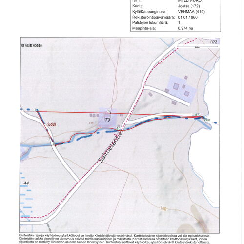 Oikeutena sekä rasitteena kiinteistön läpi kulkevan Salmelantien tieoikeudet. Osuudet Ison Suojärven rannalla sijaitsevaan yhteiseen venevalkamaan ja vesialueisiin. Kts. kiinteistörekisteriote.