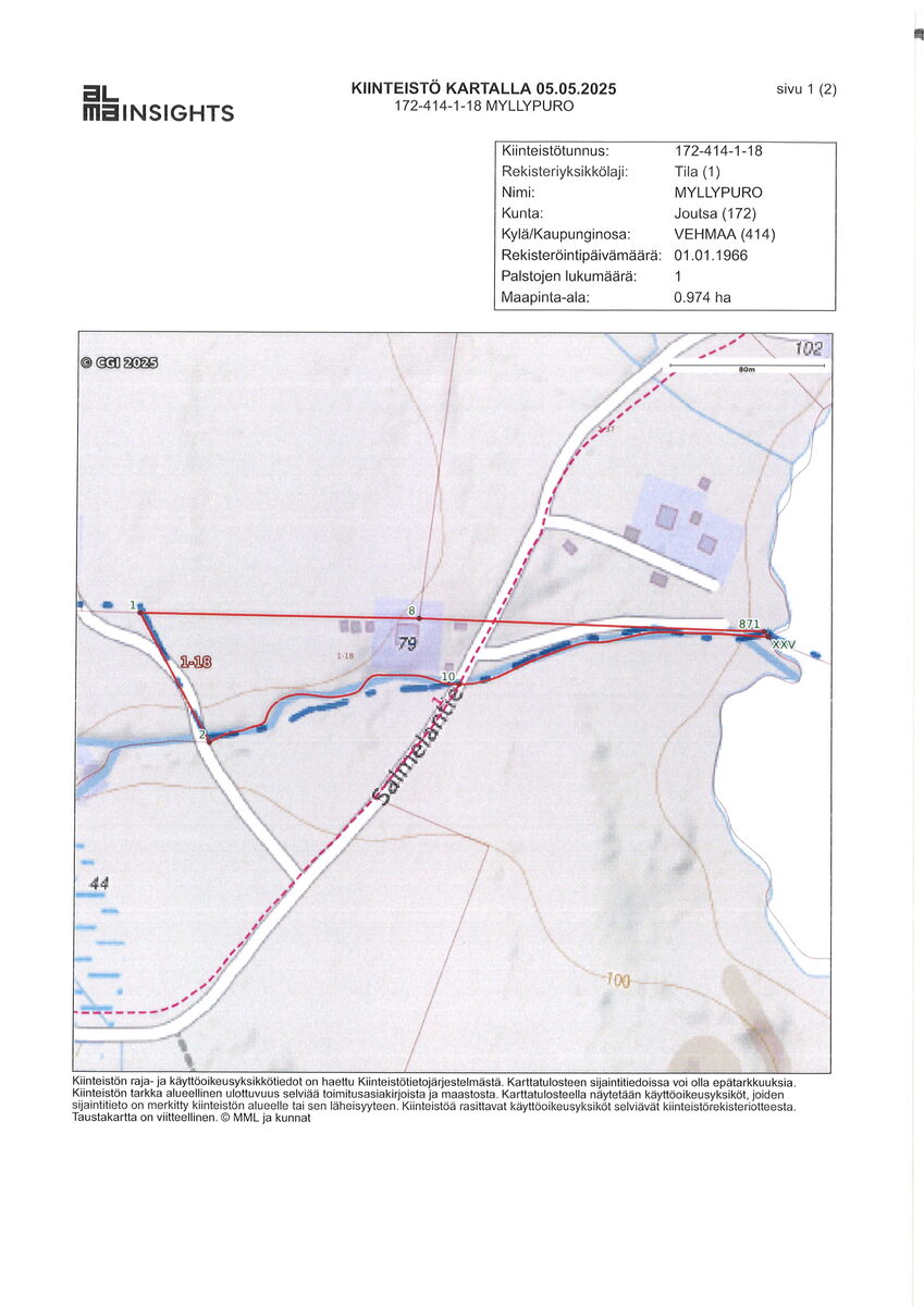 Kohde sijaitsee Joutsassa Keski-Suomessa osoitteessa Salmelantie 79. Joutsan keskustaan on matkaa noin 20 km ja Pertunmaalle noin 17 km. Perille pääsee helposti hyvää tietä pitkin. Alue on rauhallinen ja luonnonläheinen, mutta kuitenkin järkevän etäisyyden päässä palveluista.