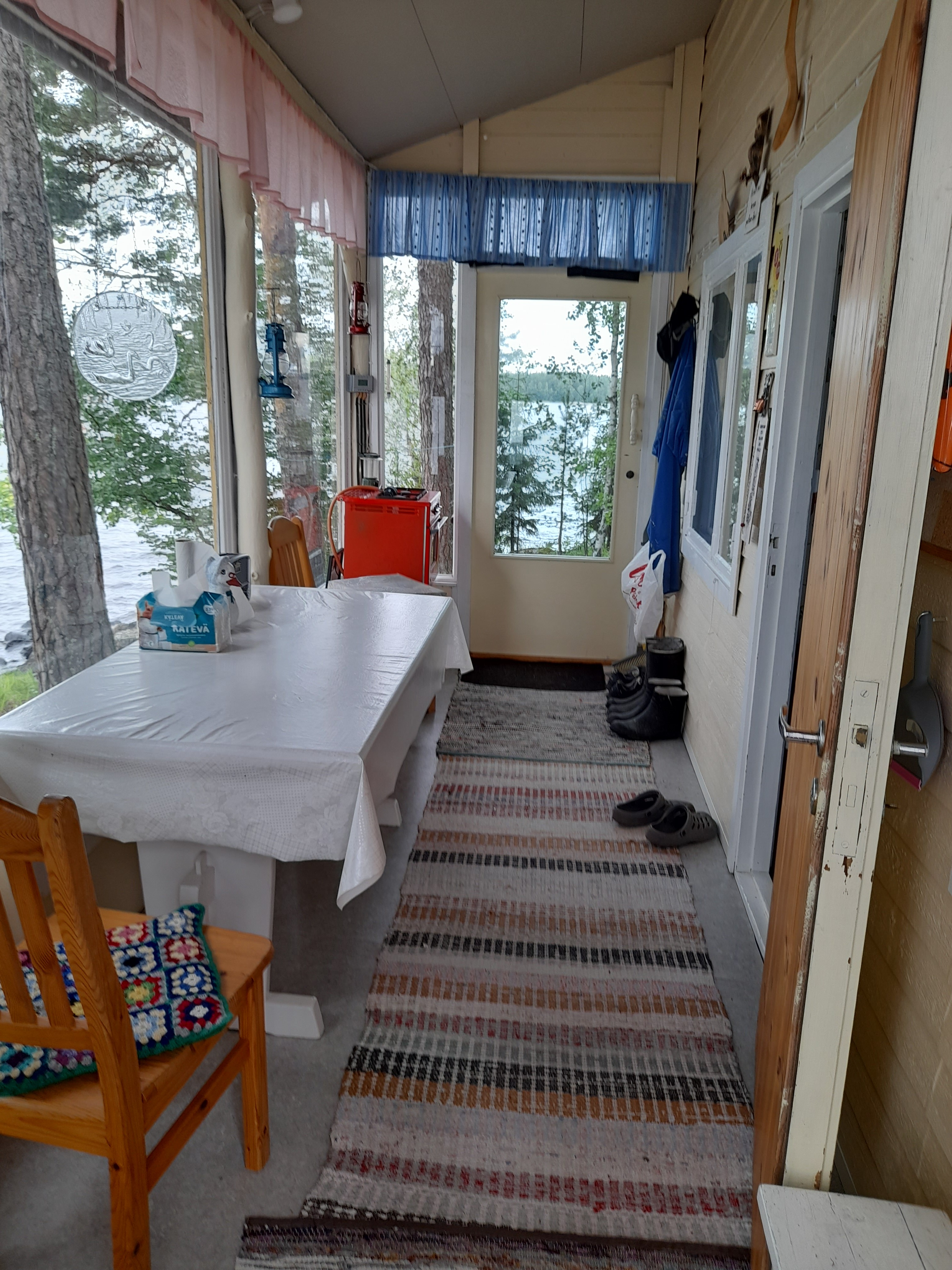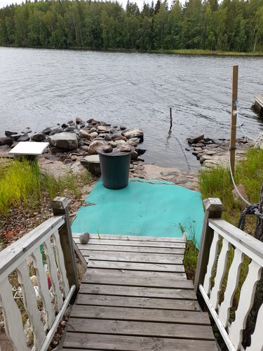 Sauna on rannassa ja siinä on saunatupa