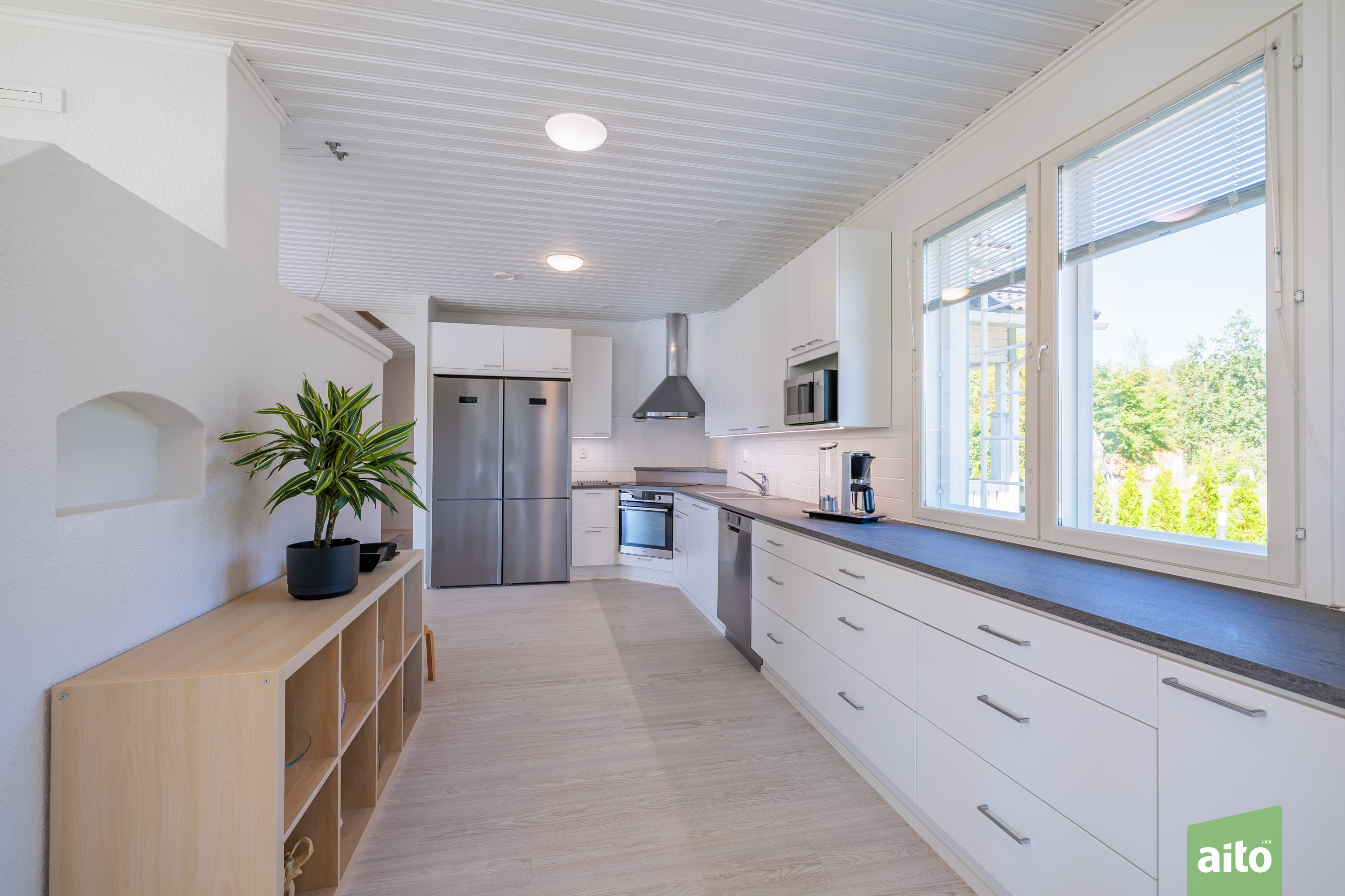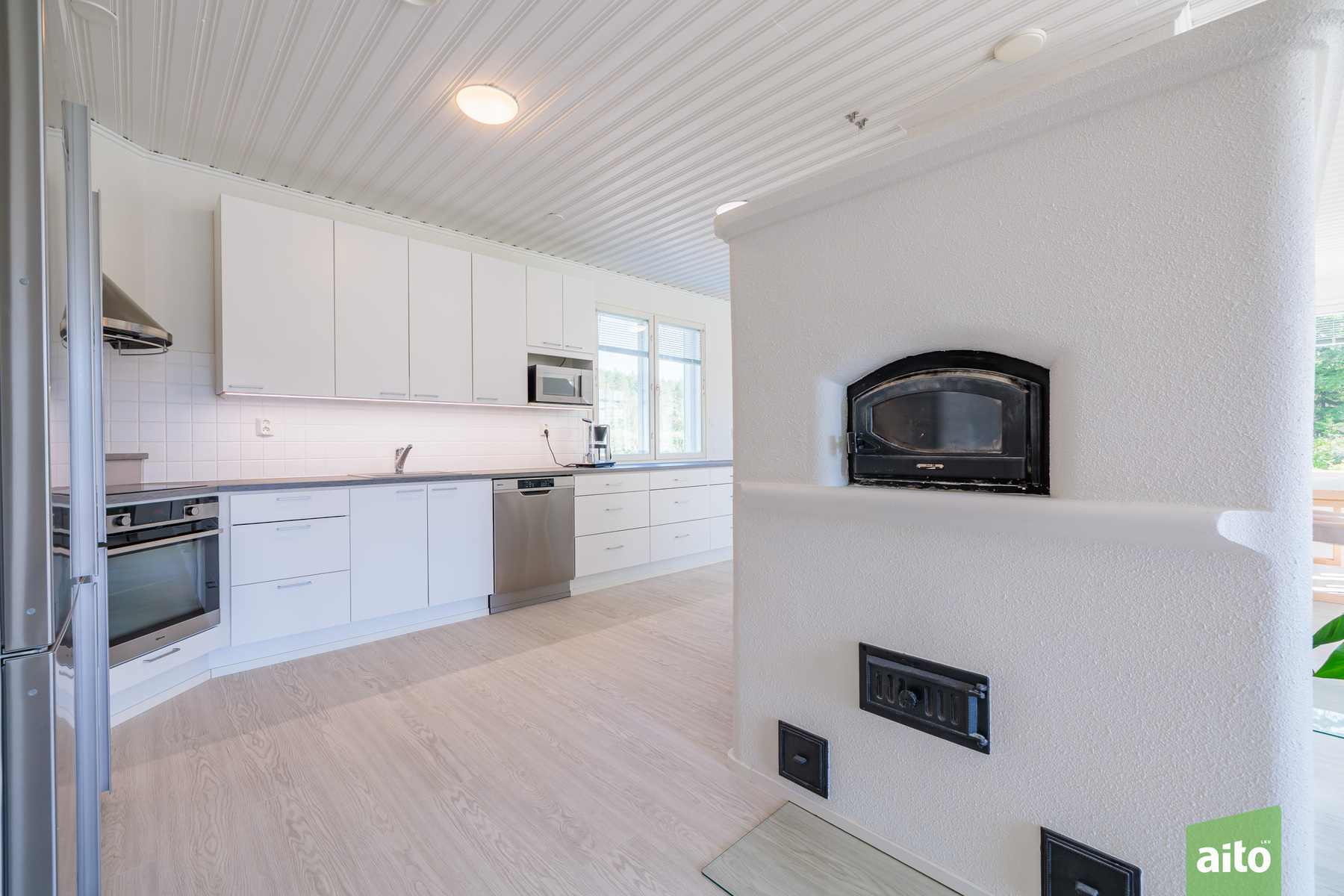 – Upea ja tilava keittiö, jossa leivinuuni, uusitut ovet ja kodinkoneet