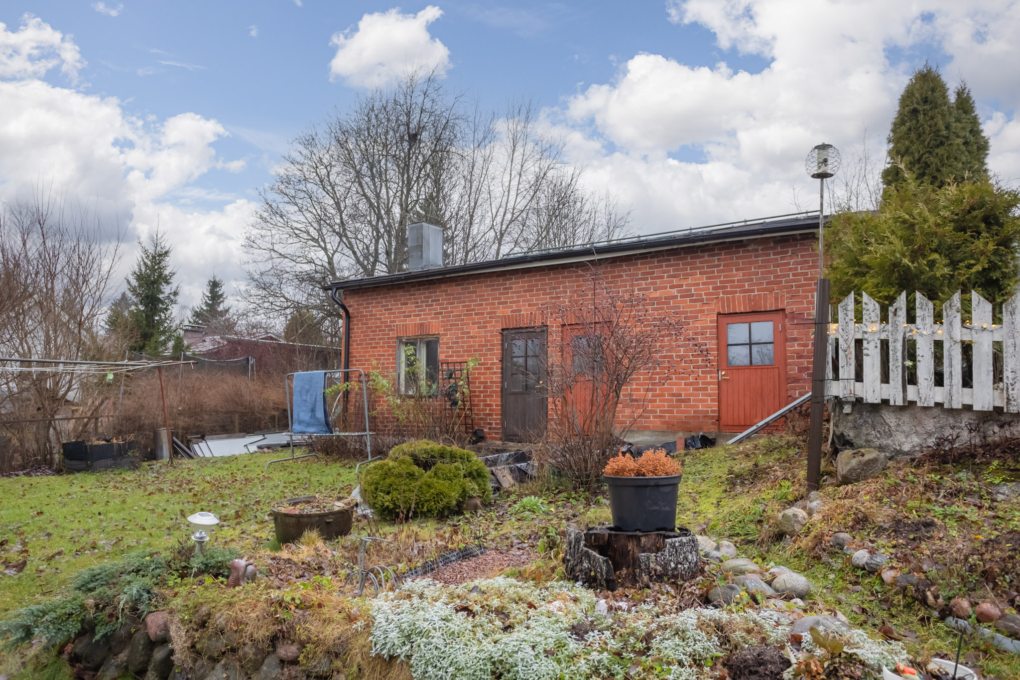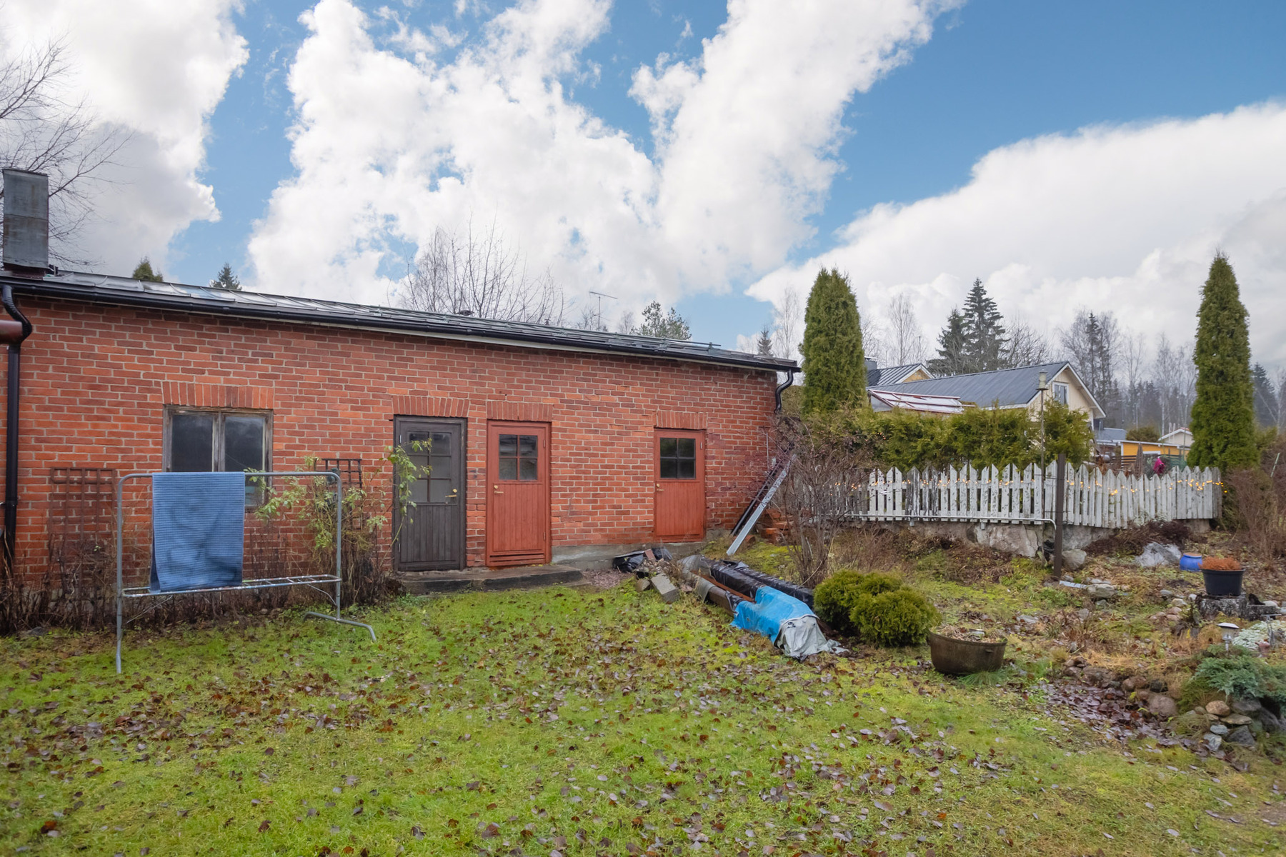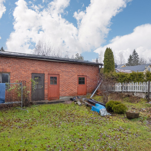 Noin v. 1946 rakennettu, pääosin tiilirakenteinen 68 m² talousrakennus. Talousrakennuksessa maalattia, sisätilat vaativat kunnostusta. Katto on vuotanut v. 2015. Yläpohja korjattu ja päätyseinä uusittu v. 2017 (lupa 2017-227) ja loppukatselmus tehty 14.10.2021. Talousrakennus sijaitsee "vähäisessä määrin toisen tontin puolella".