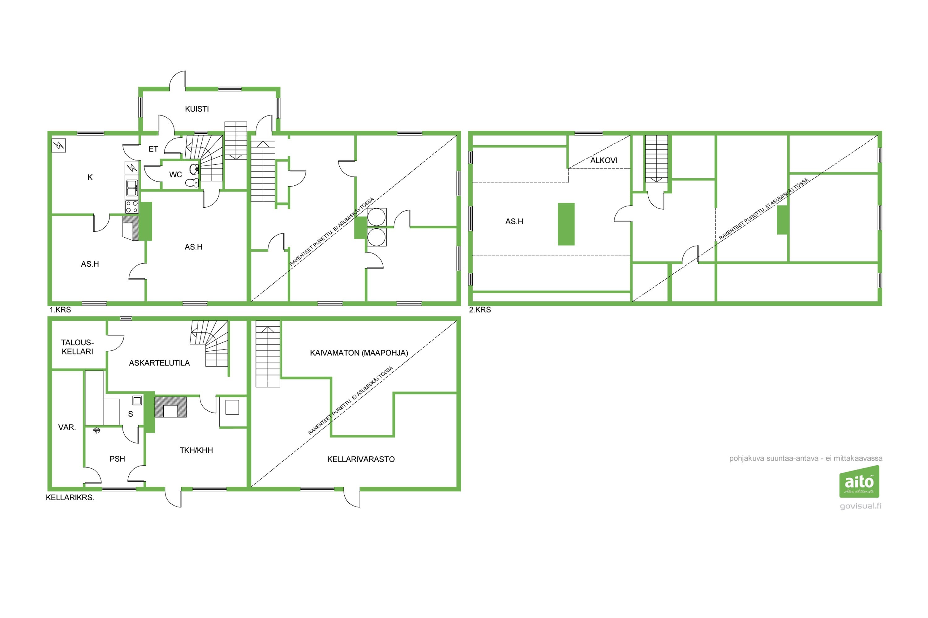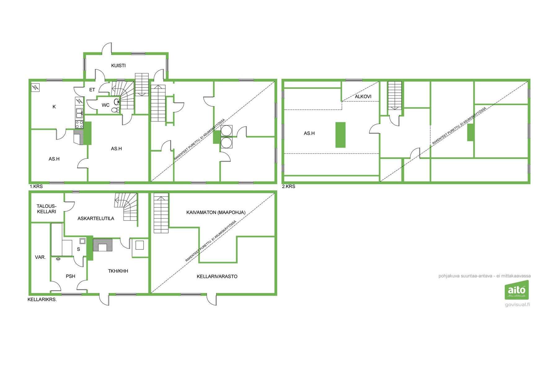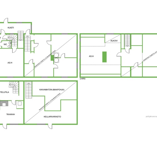 Vanhempi puoli on purettu sisältä, eikä tällä hetkellä ole asumiskäytössä.