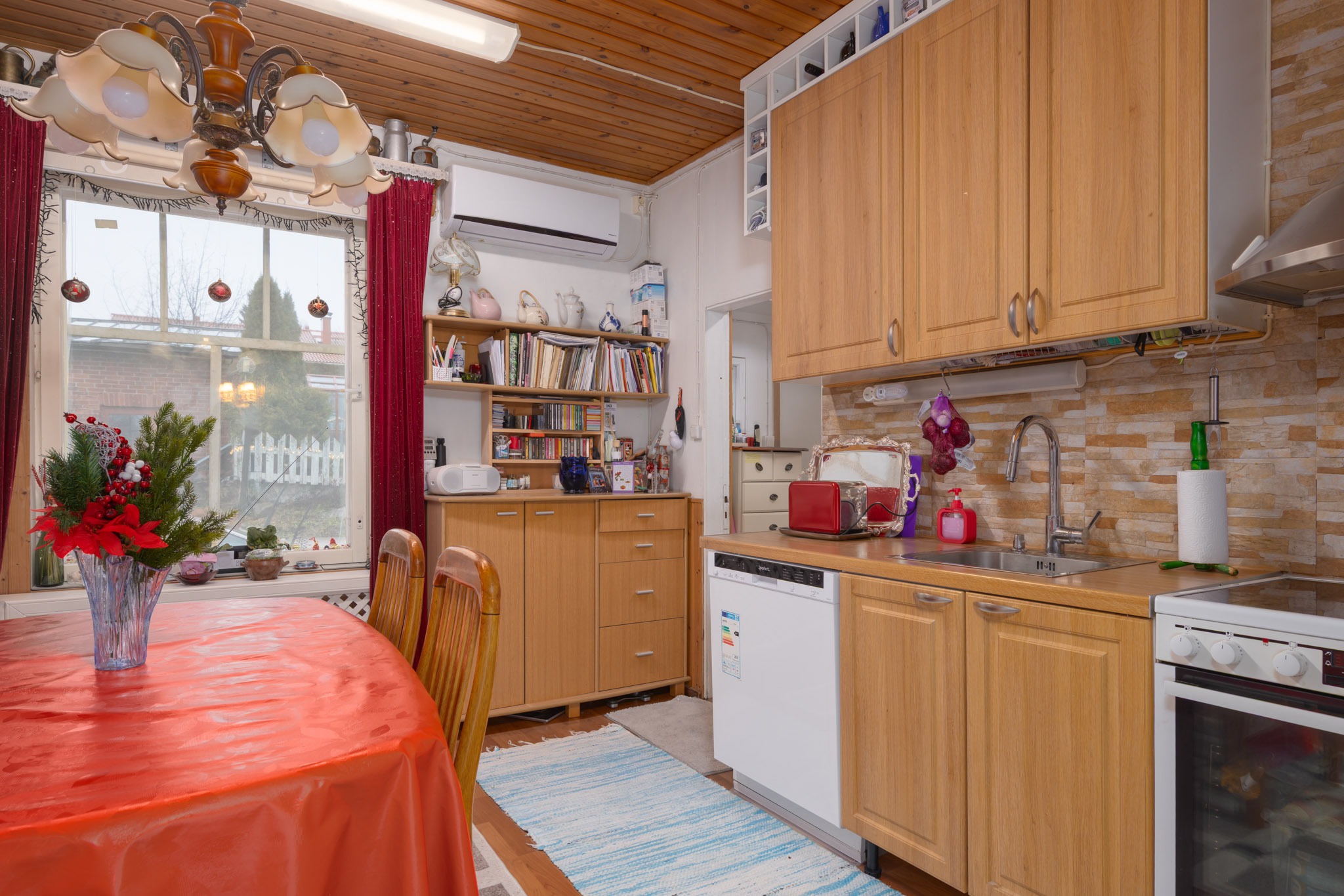 Rakennuksesta on tällä hetkellä asuinkäytössä noin puolet. Toisen puolen sisätilat on purettu lähes runkoon asti, joten kohde soveltuu erityisesti ostajalle, joka ymmärtää peruskorjauksen päälle ja näkee keskeneräisyydessä mahdollisuuksia eikä painajaisia. Asuttava puoli mahdollistaa asumisen remontin lomassa ja antaa joustoa toteuttaa korjaukset omaan tahtiin.