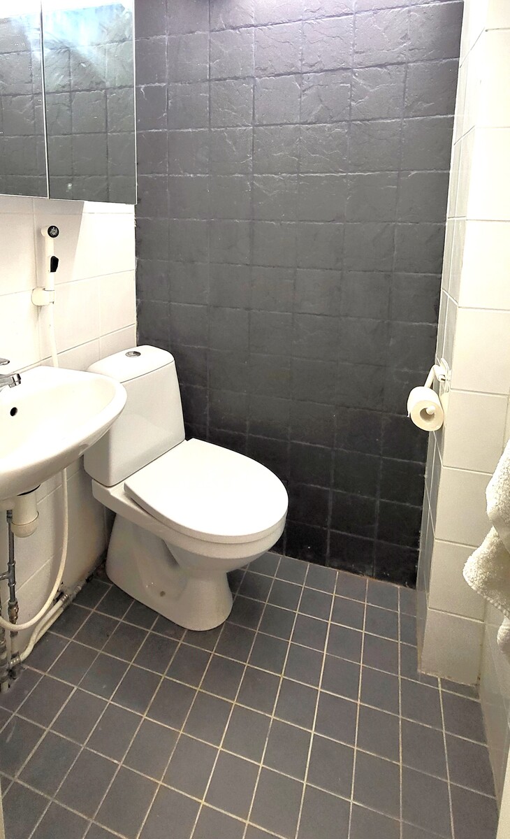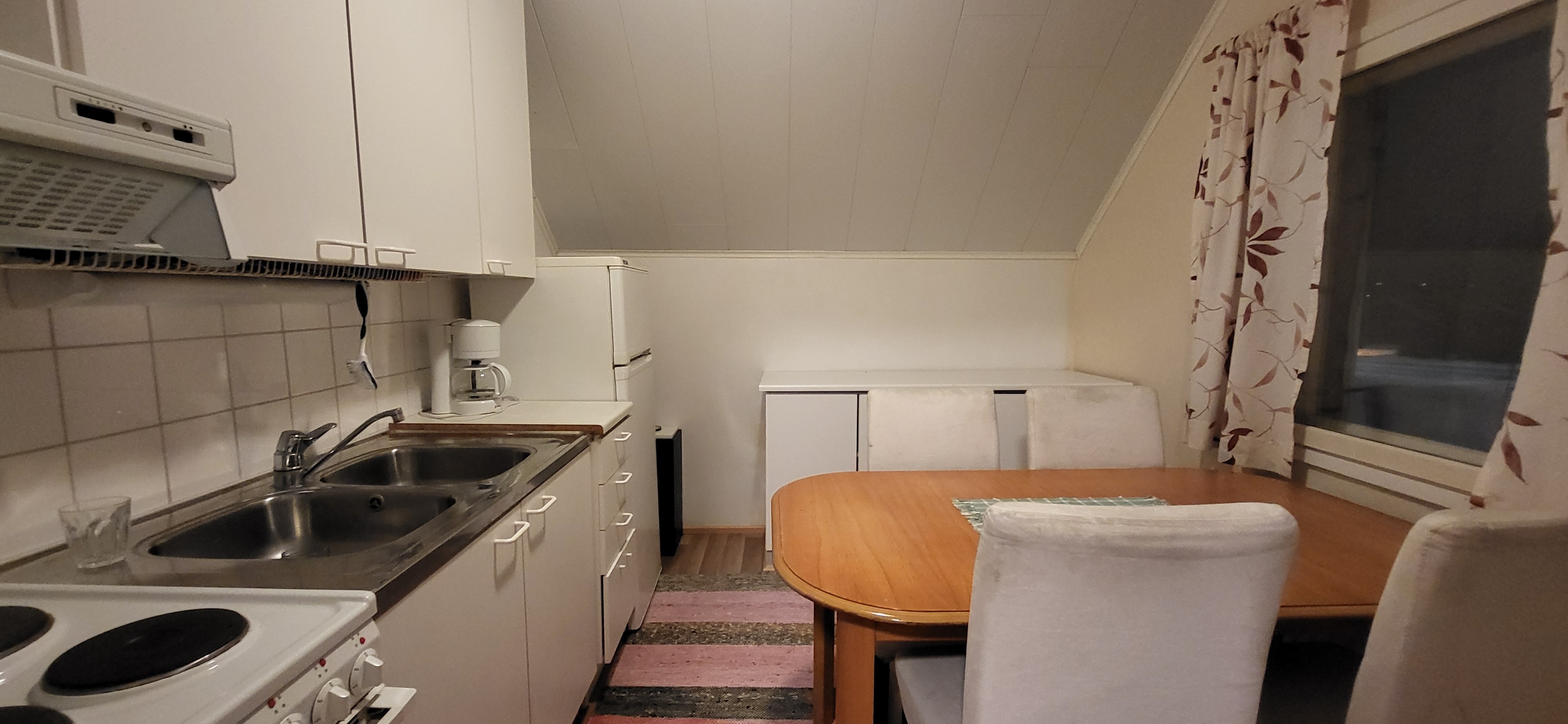 Varusteet: jääkaappi, sähköliesi, astianpesukone, mikroaaltouuni