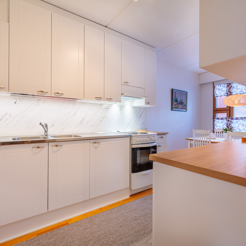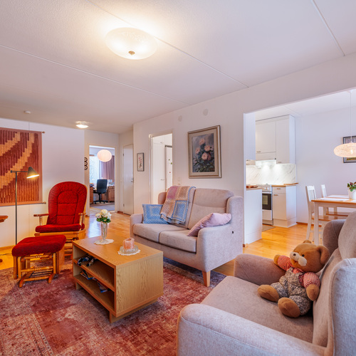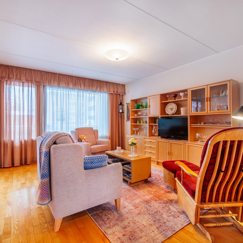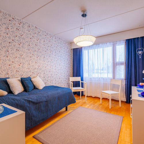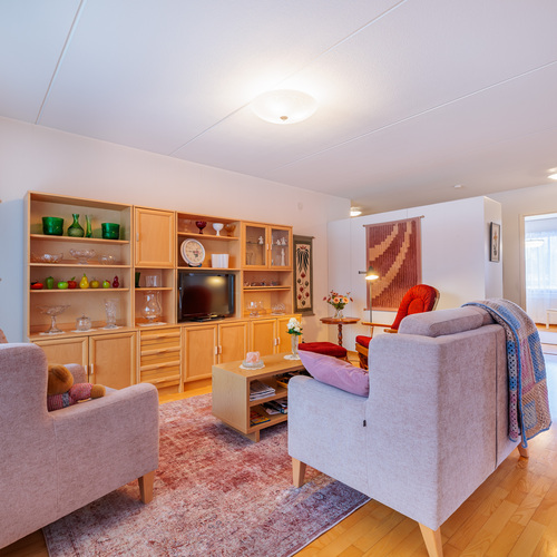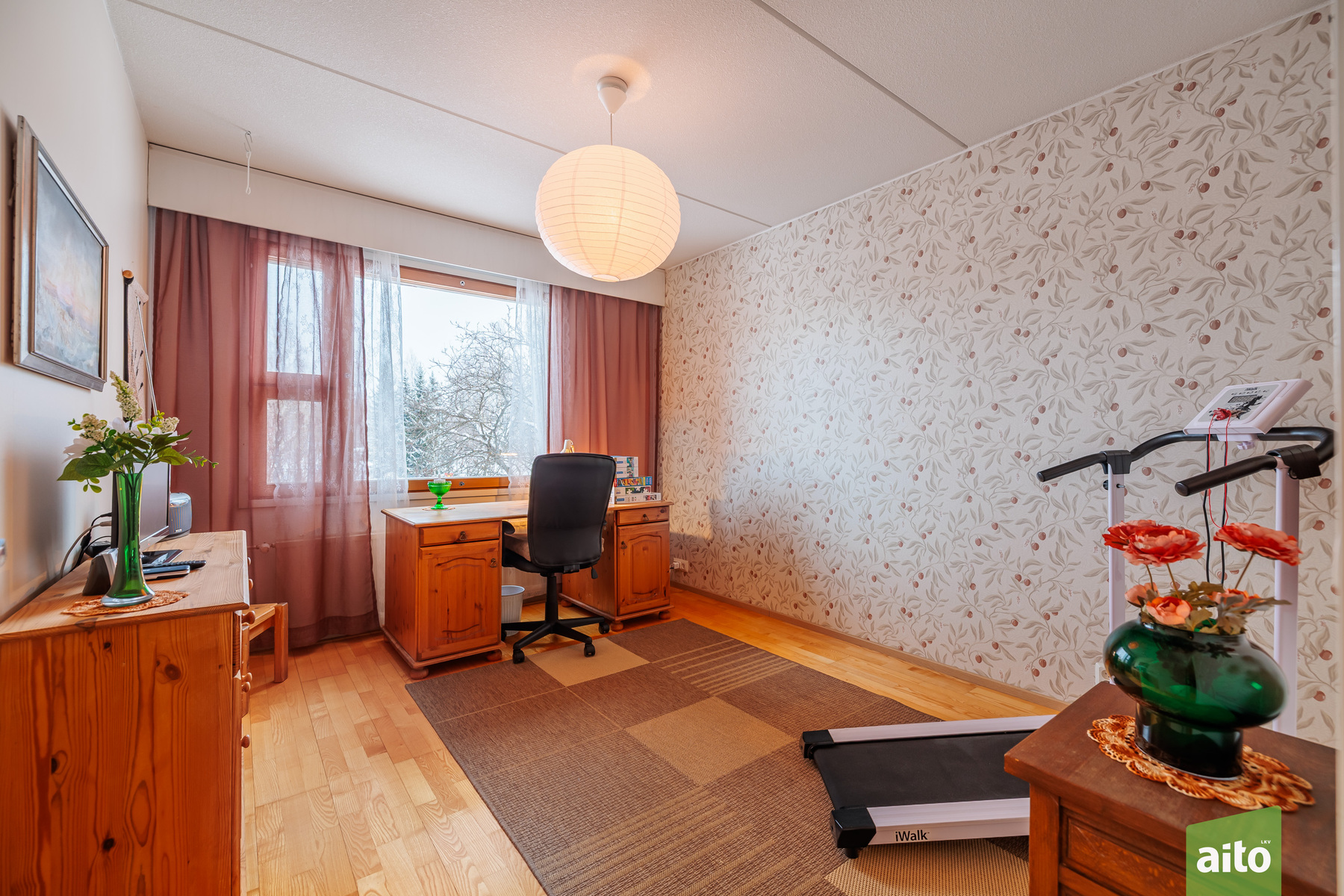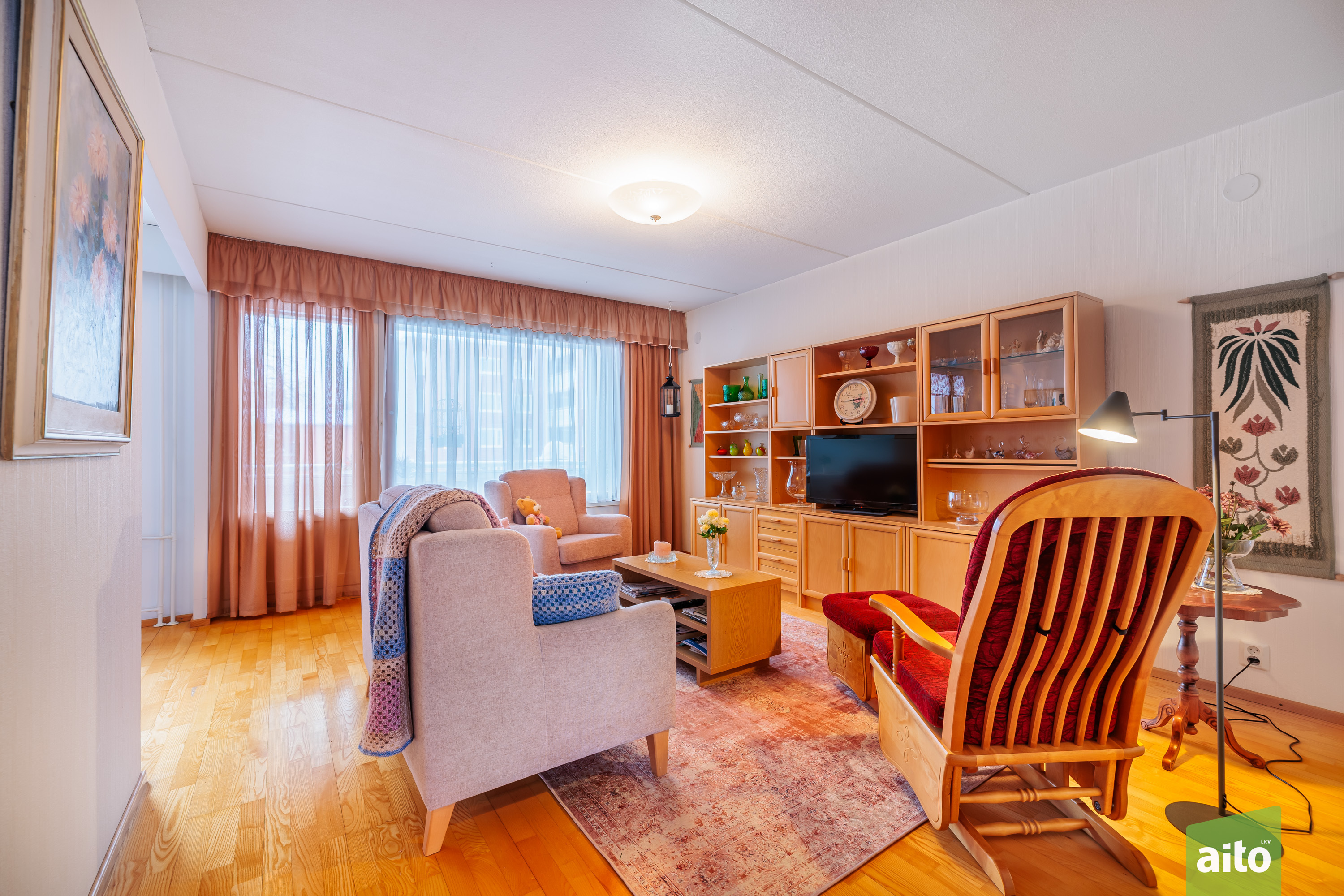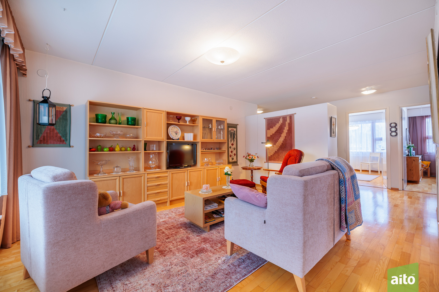 Asunnossa on kaksi makuuhuonetta, valoisa olohuone, erillinen keittiö sekä oma sauna, joka lisää asumismukavuutta ympäri vuoden. Lasitettu parveke toimii lisähuoneena pitkälle syksyyn ja aikaisesta keväästä alkaen. Parvekelasien kunnossapidosta vastaa taloyhtiö.