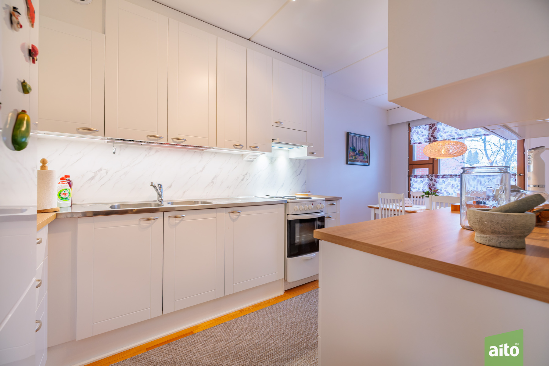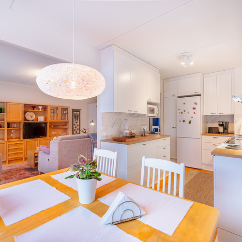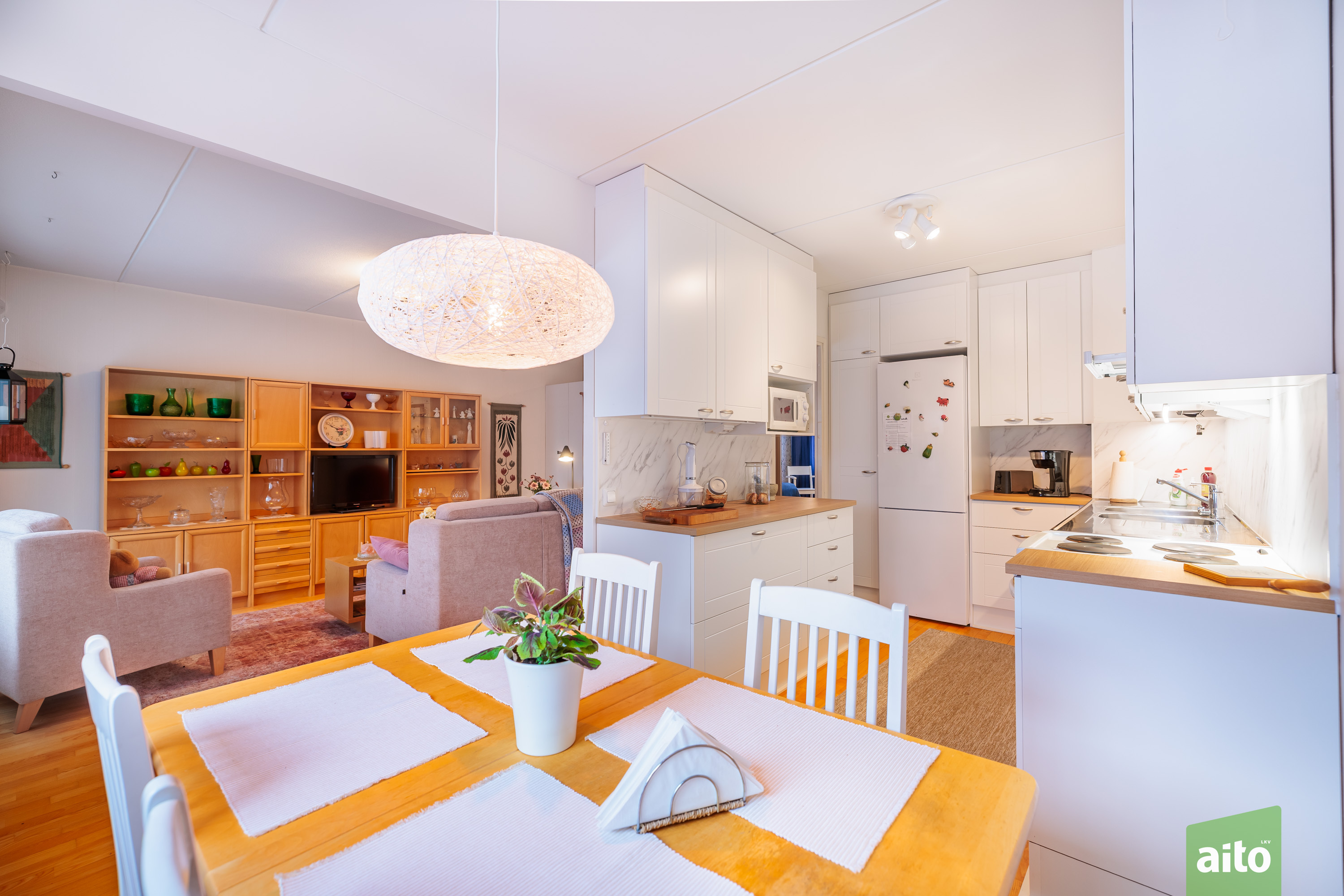 Säilytystilaa on hyvin: huoneistolle kuuluvat yhtiöjärjestyksen mukaisesti kellarikomero sekä kylmäkellari. Lisäksi autokatospaikka on mahdollista siirtää uudelle omistajalle – käytännöllinen ratkaisu Mikkelin sääolosuhteisiin.