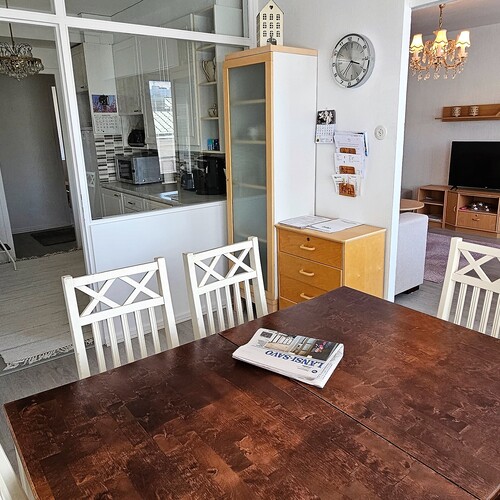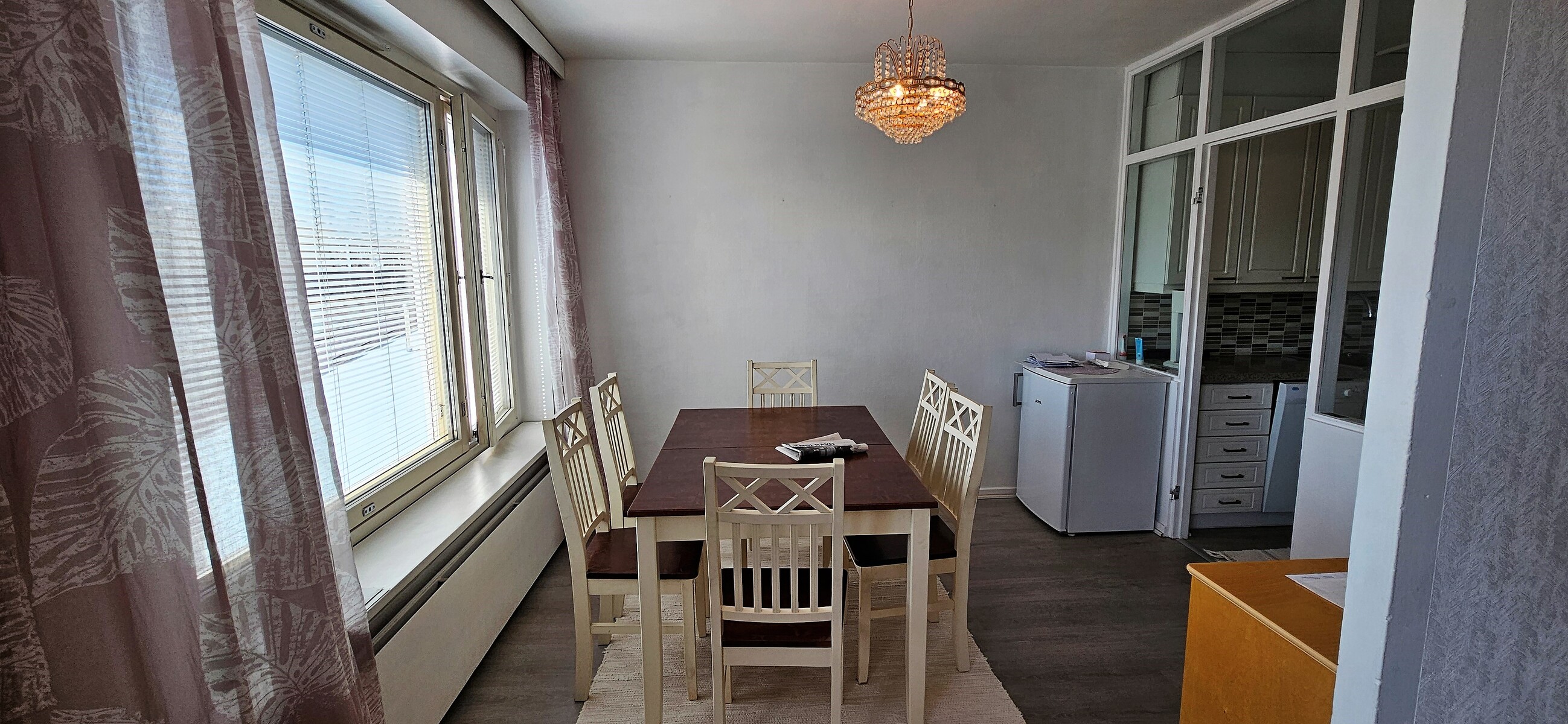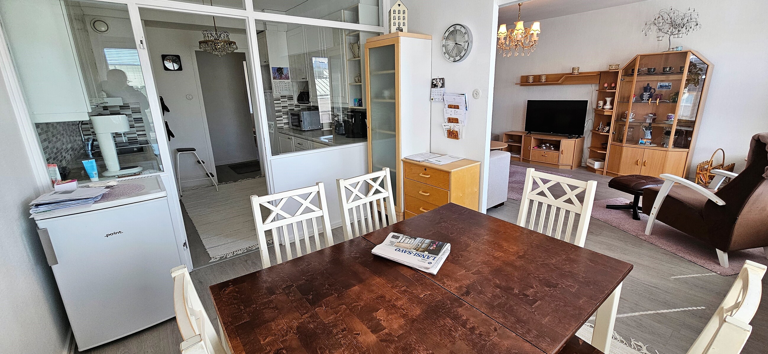 Tämä valoisa ja toimivapohjainen kaksio tarjoaa helppoa asumista aivan Mikkelin keskustan tuntumassa. Asunnon pohjaratkaisu on selkeä ja käytännöllinen: tilava olohuone muodostaa kodin sydämen, ja sen yhteydessä on erillinen ruokailutila, johon mahtuu hyvin ruokapöytä arkeen ja juhlaan. Makuuhuoneesta on käynti lasitetulle parvekkeelle, joka tuo mukavasti lisätilaa pitkälle syksyyn.