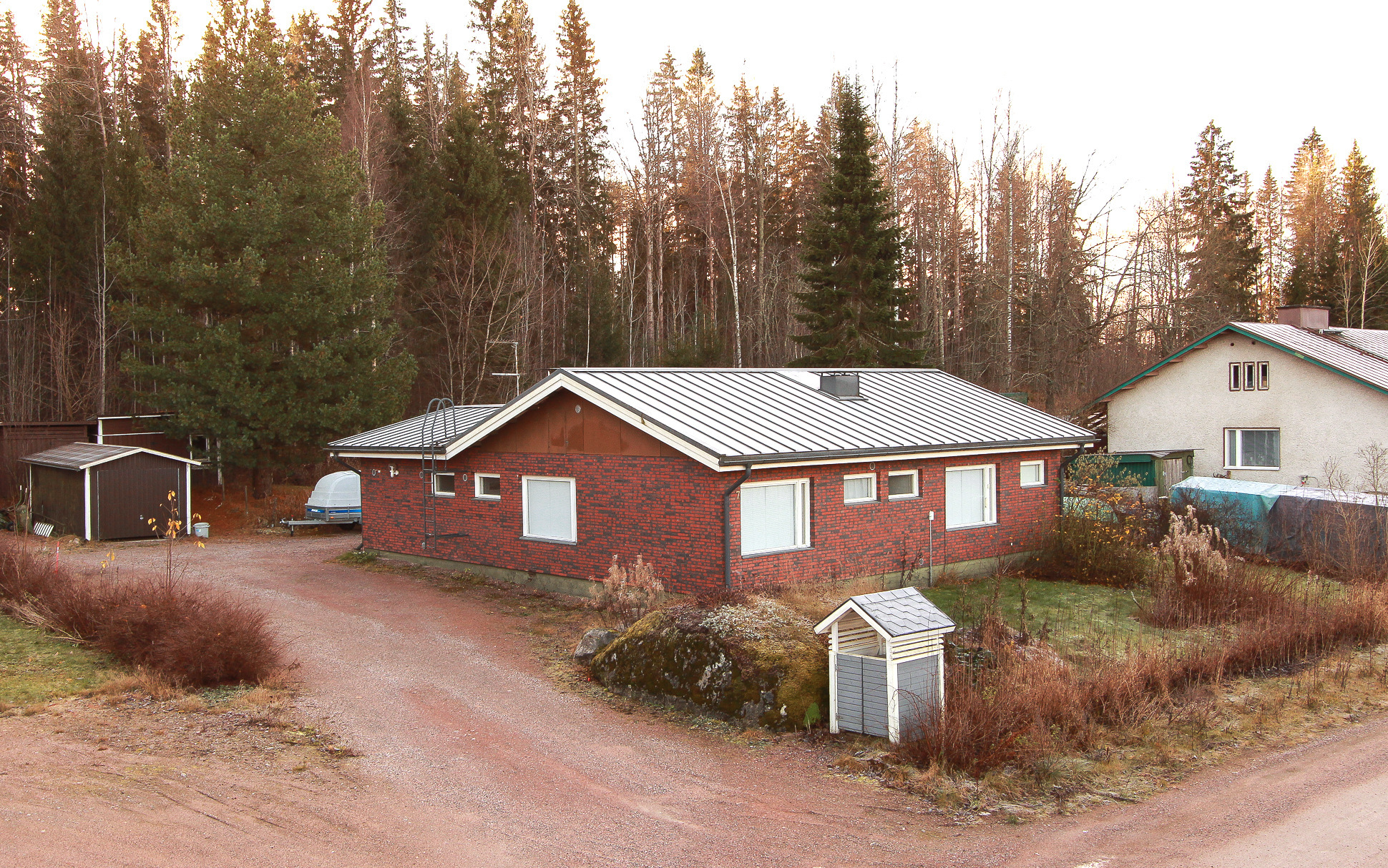 Pariovellinen varasto asuinrakennuksen yhteydessä, erillinen pihavarasto. Autovaja.