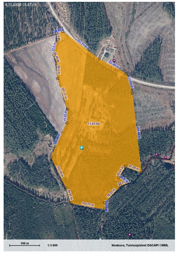 Pinta-ala: 11,60 ha (peltoa noin 2 ha, metsää noin 8 ha)