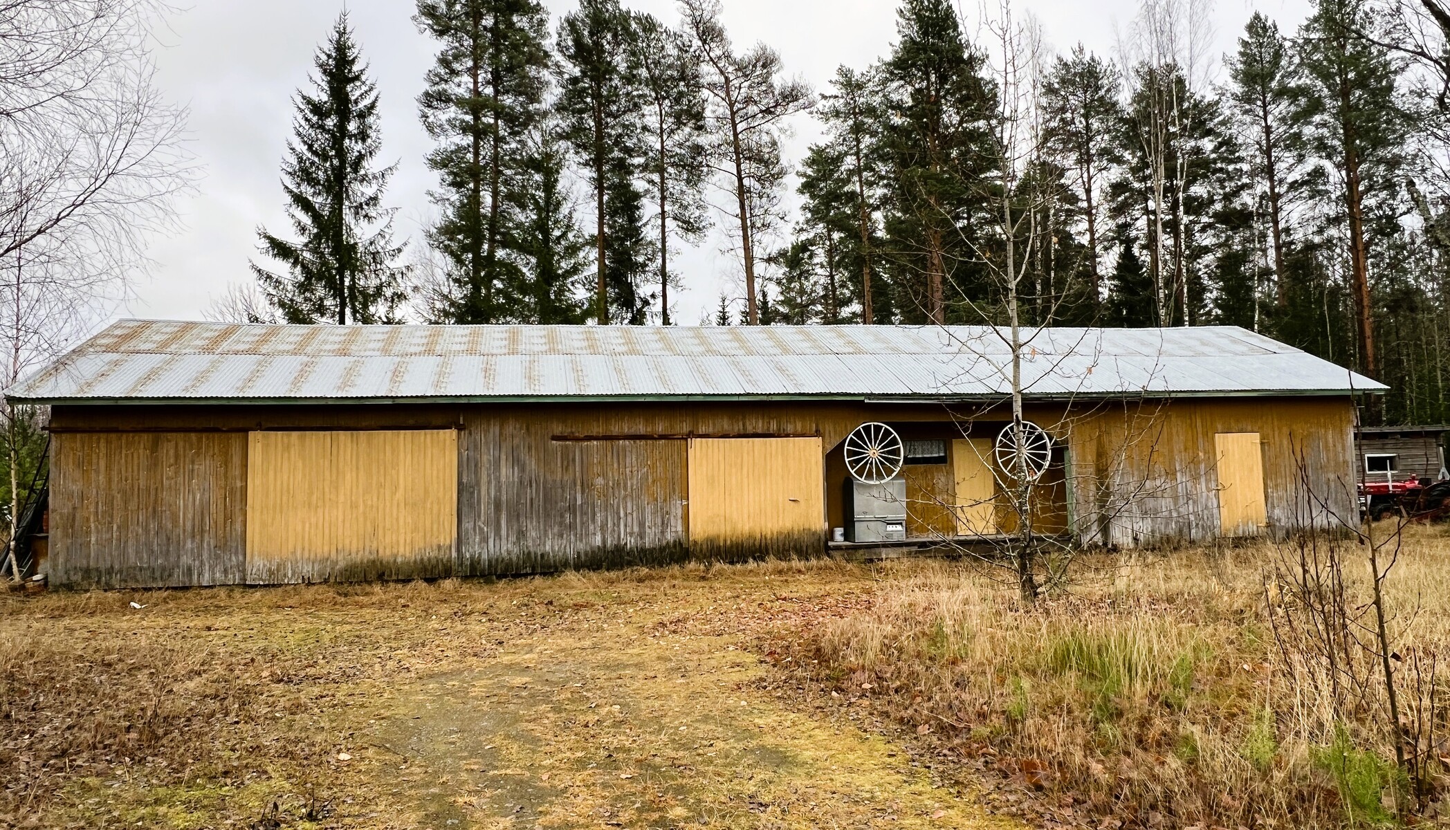 Lisäksi pihapiirissä on useita talousrakennuksia, hallitiloja ja työpajoja, joissa on mahdollista jatkaa puuntyöstötoimintaa tai aloittaa uusi yritystoiminta – kalusto ja laitteet ovat neuvoteltavissa erikseen kaupan yhteydessä.