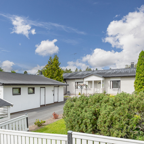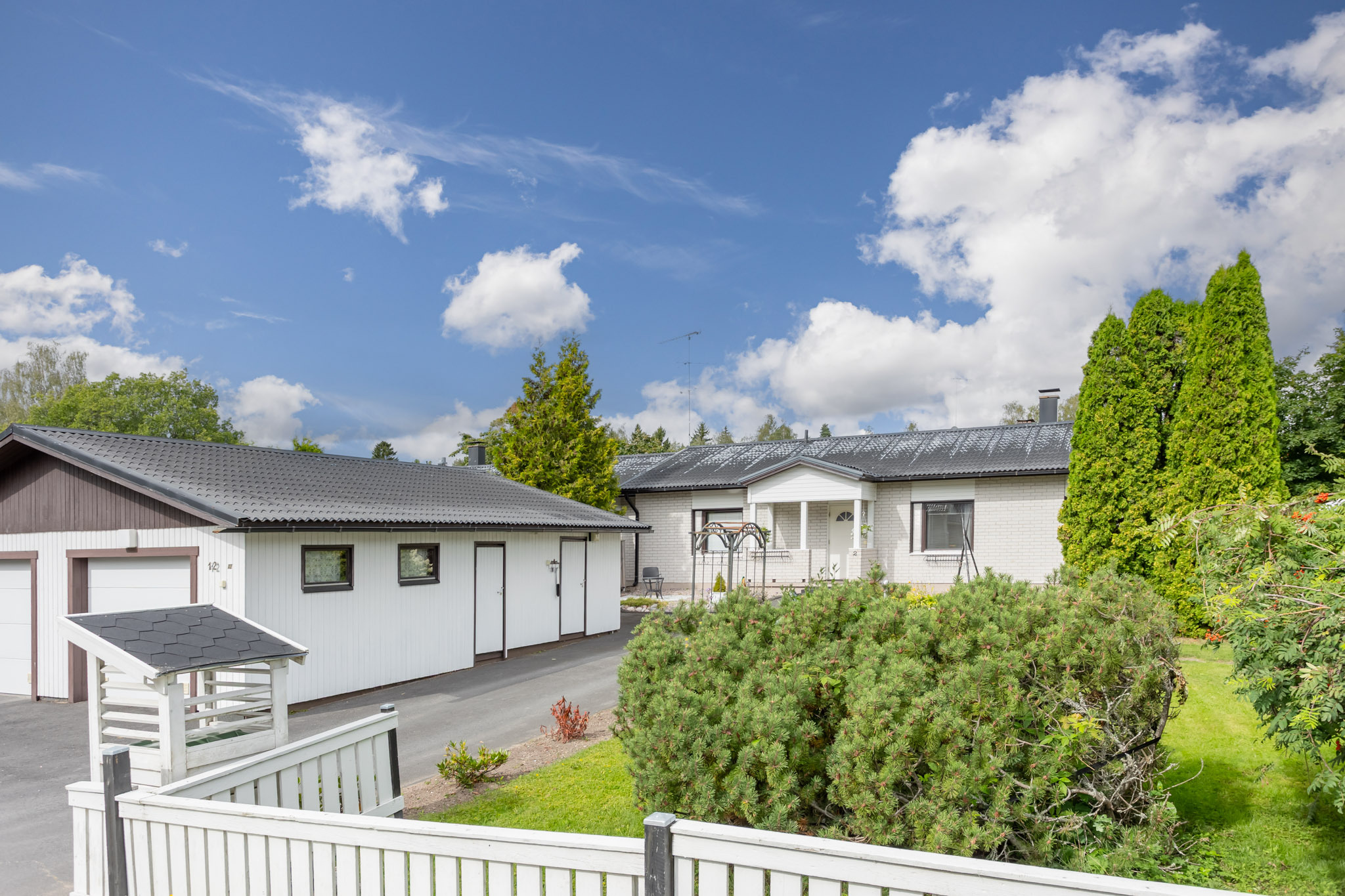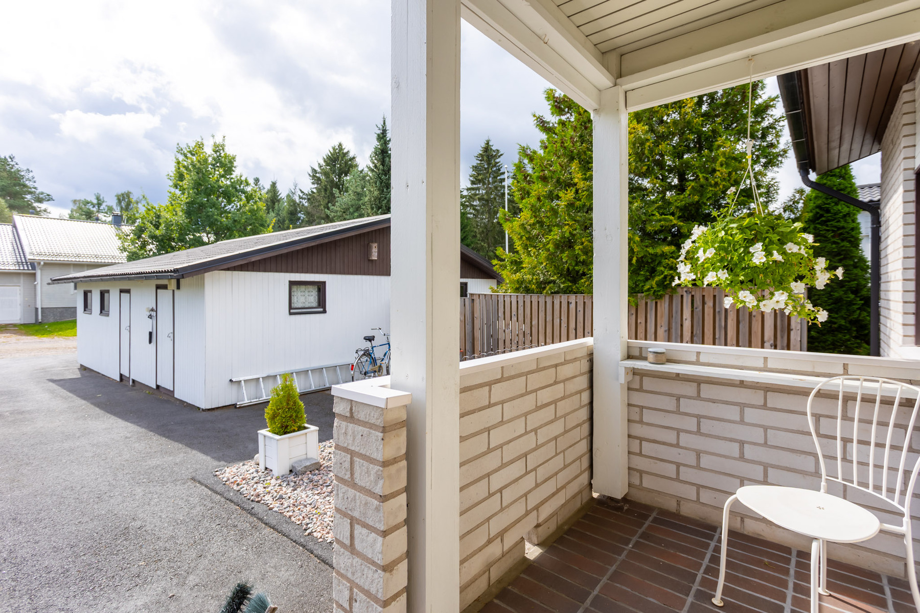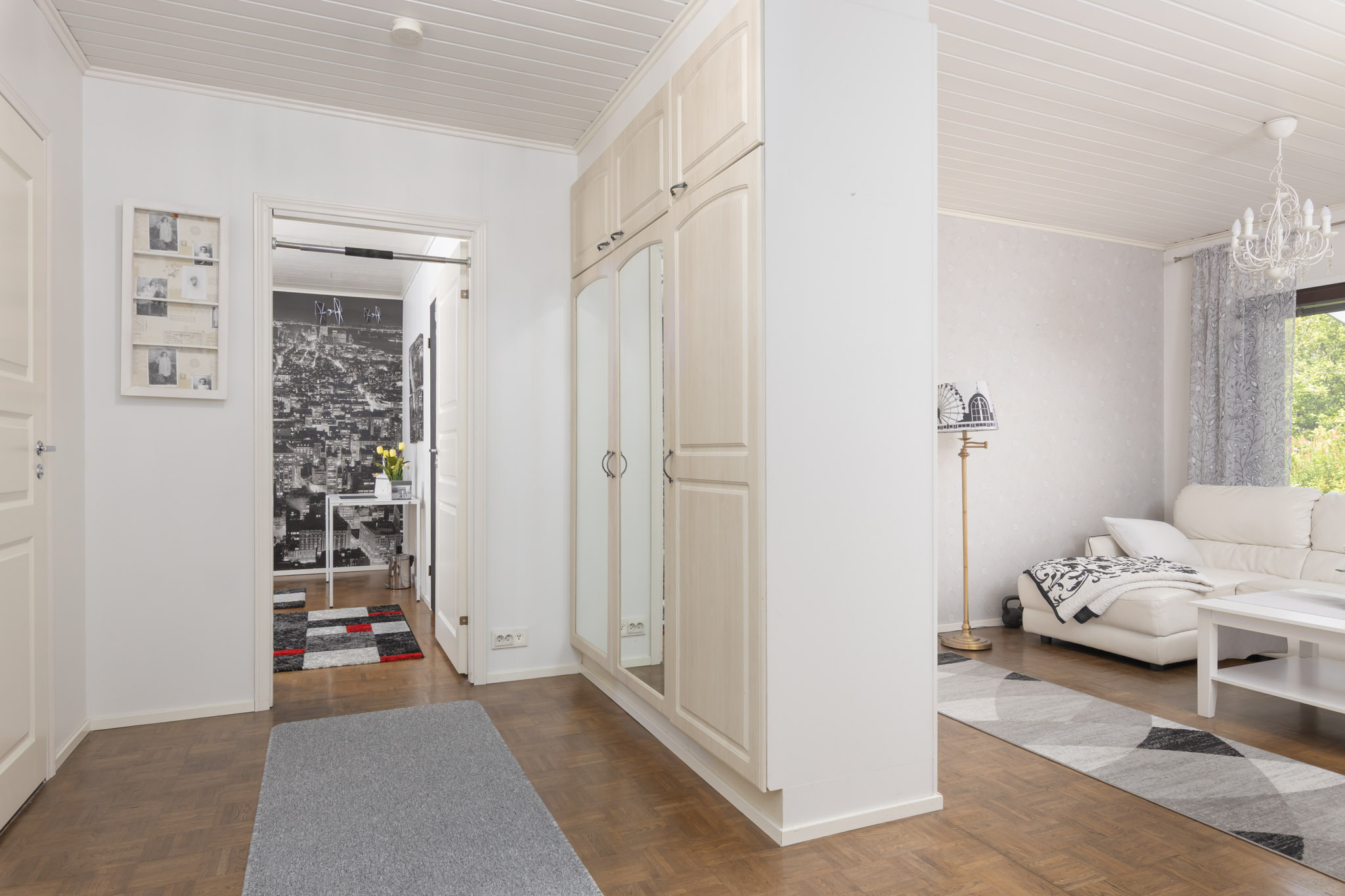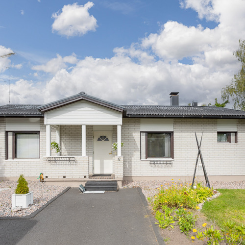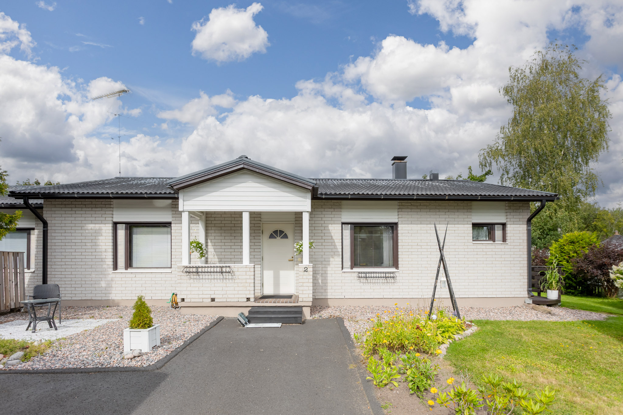 Huoneisto käsittää mm. tilavan olohuoneen, joka jatkuu takkahuoneena, kaksi makuuhuonetta vaatehuoneineen, keittiön, kodinhoitohuoneen, kylpyhuoneen, saunan, wc-tilat sekä runsaasti säilytystiloja. Olohuoneesta avautuu käynti omalle takapihalle, jossa on valokatettu terassi: ja etupihalla on viihtyisä pergola ja grilli – täydelliset puitteet rentoon oleskeluun ja yhdessäoloon.