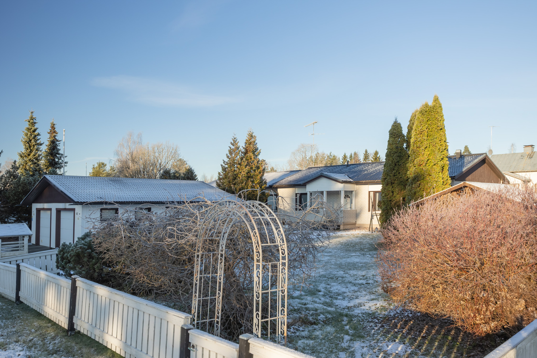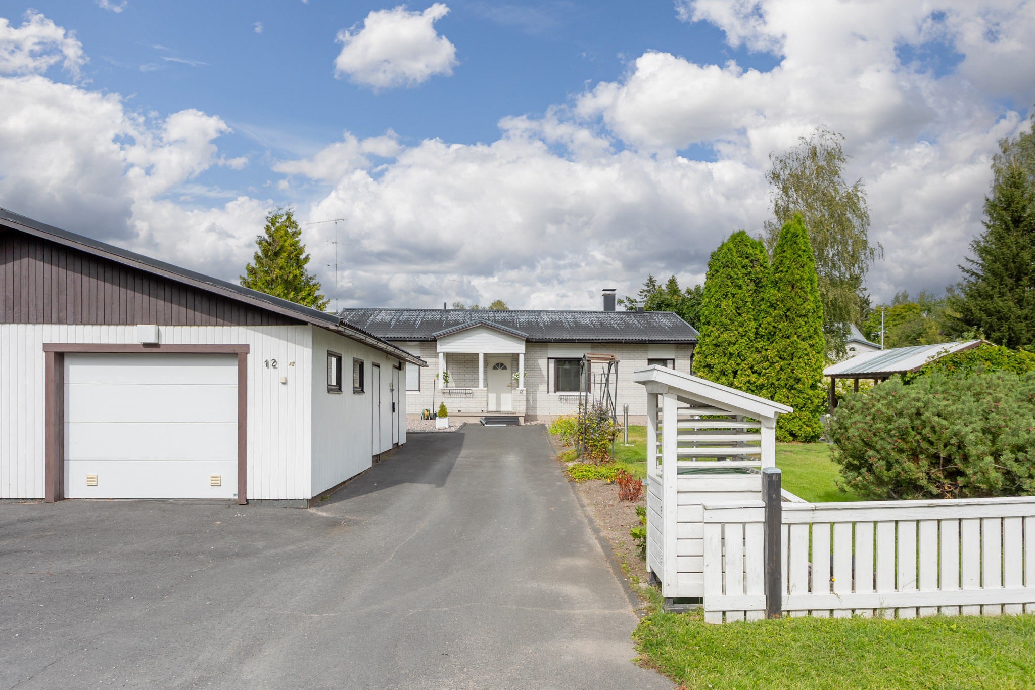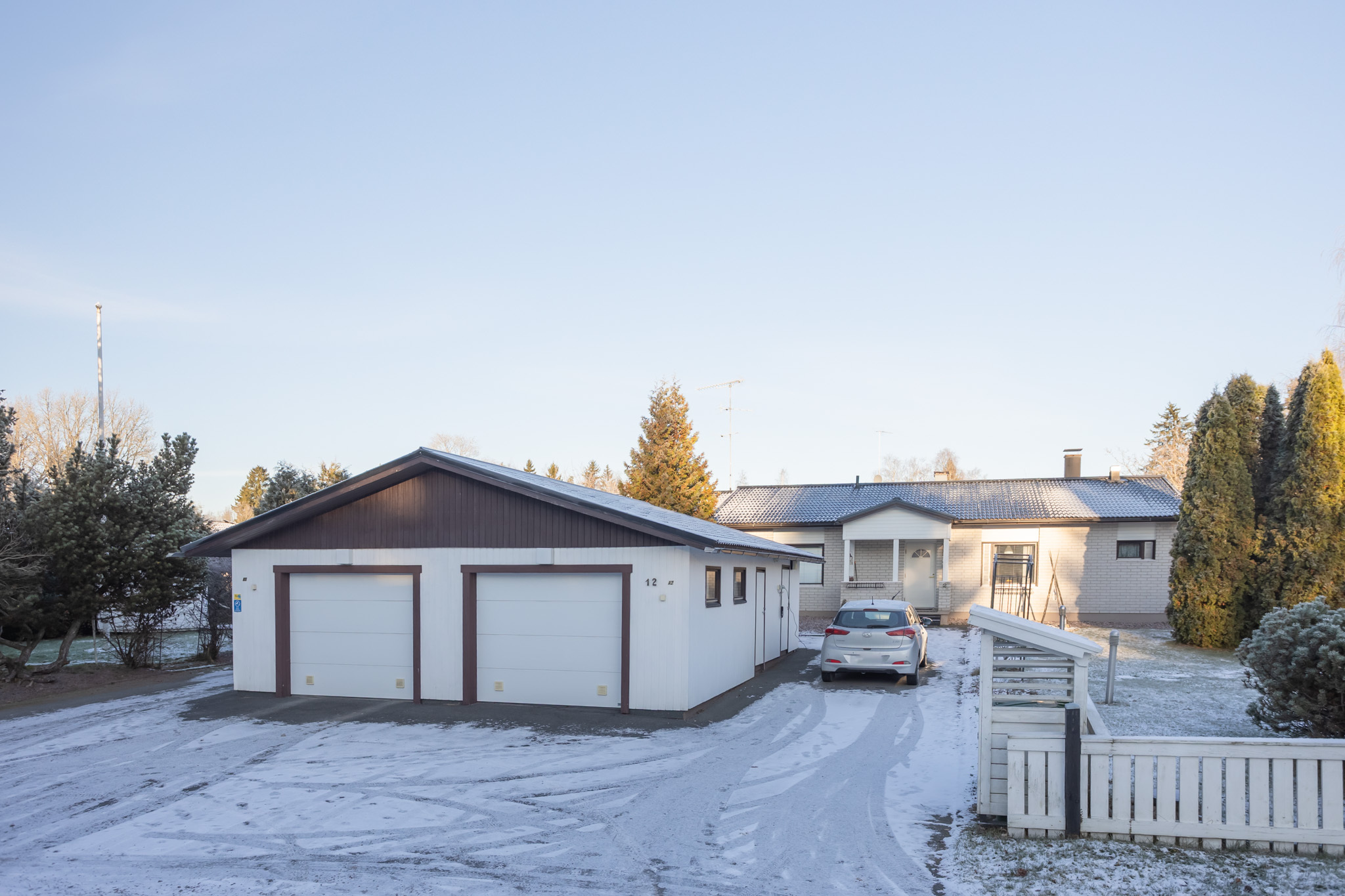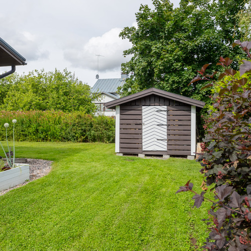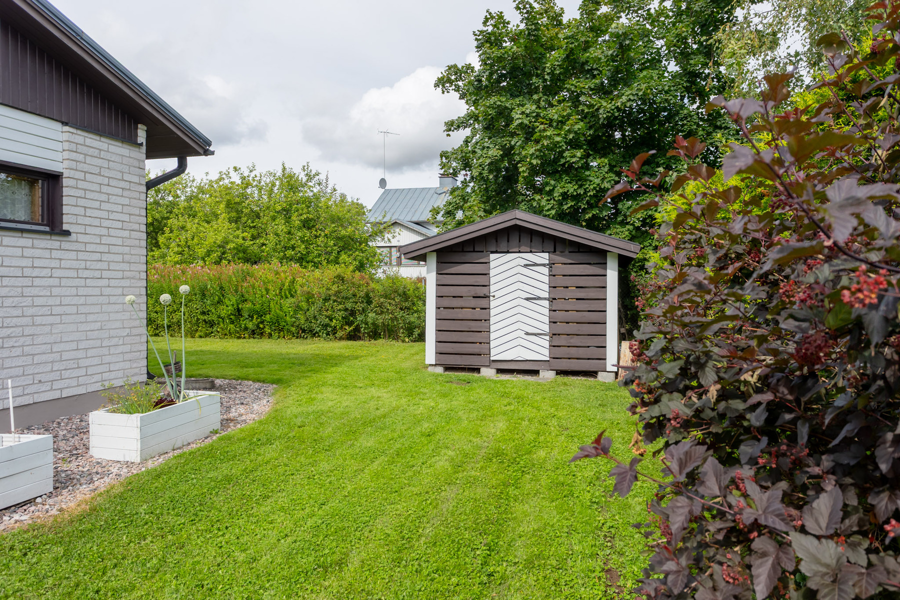 Arjen sujuvuutta lisäävät autotalli ja sen yhteydessä oleva tilava, erillinen varasto. Mylös pihalla on paikoitustilaa.