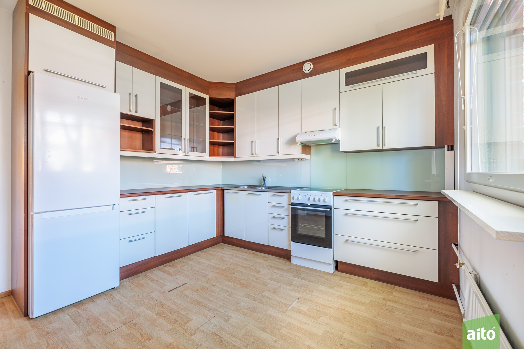 Varusteet: jääkaappipakastin, astianpesukone, keraaminen liesi, liesituuletin
