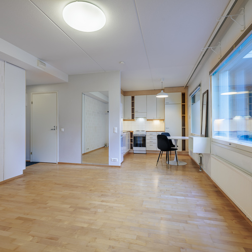 Asunnossa on avara olohuoneen ja avokeittiön yhdistelmä, joka tekee kodista ilmavan ja kutsuvan. Oma sauna tuo arkeen ripauksen rentoutta ja mukavuutta.
