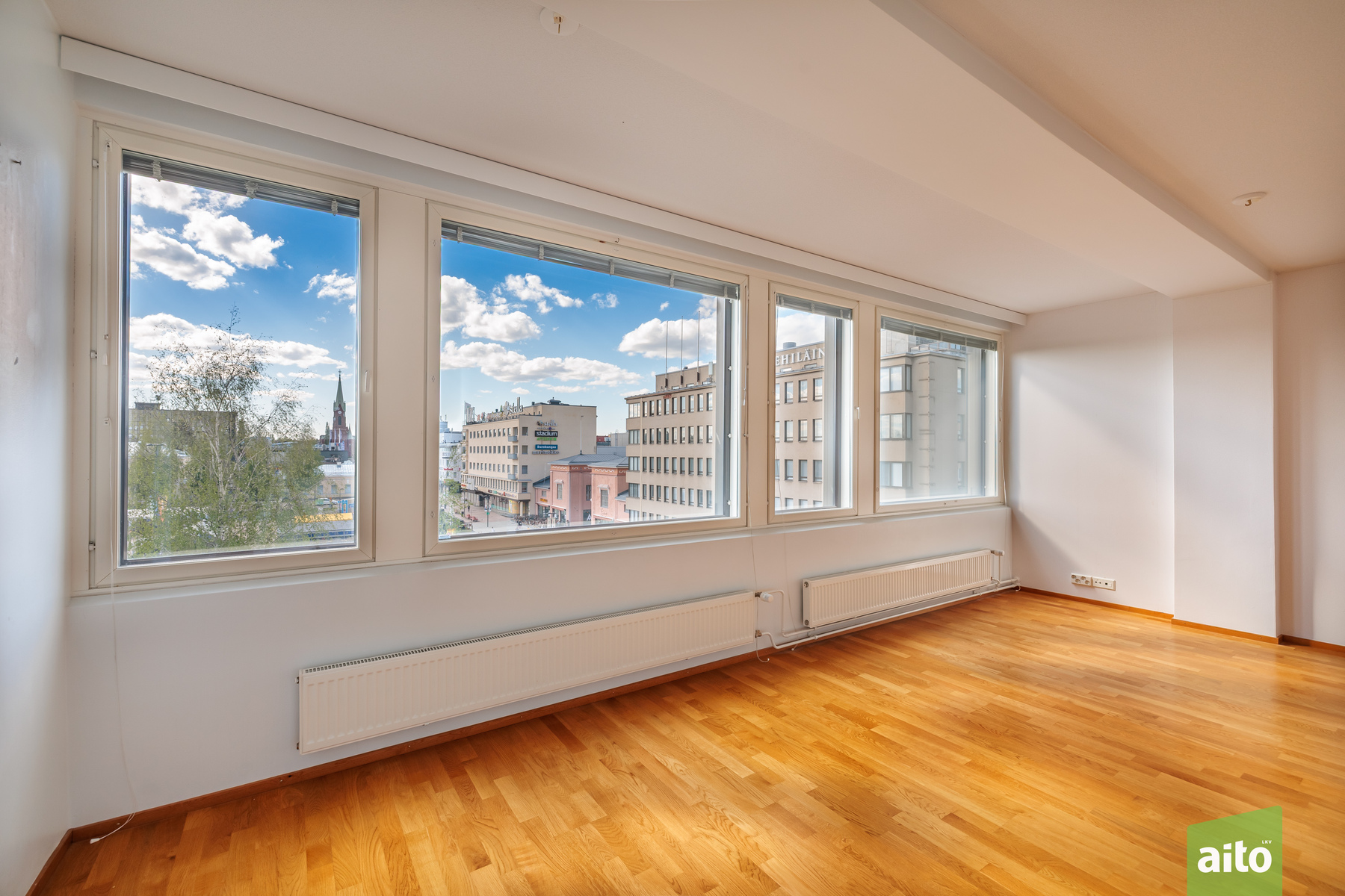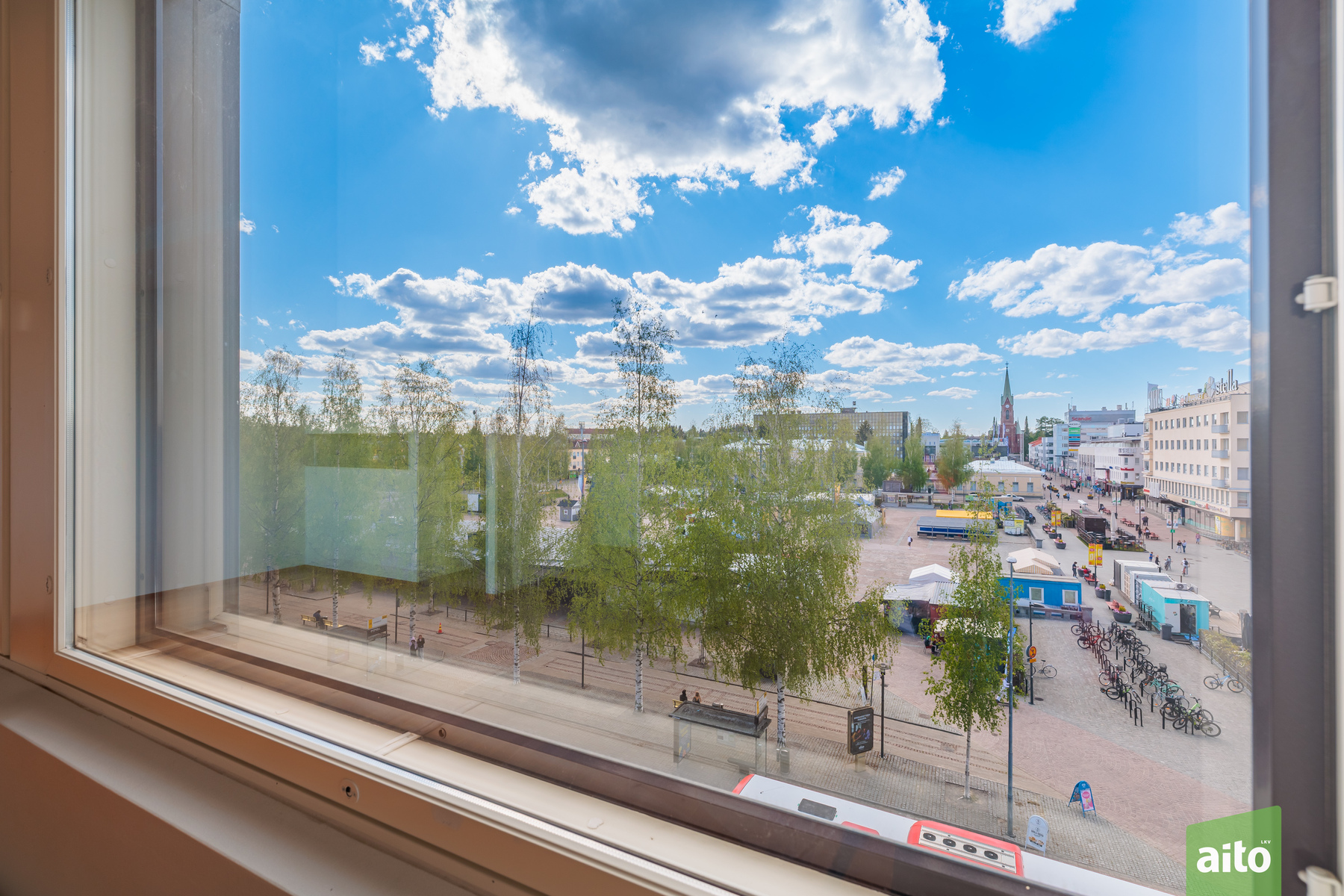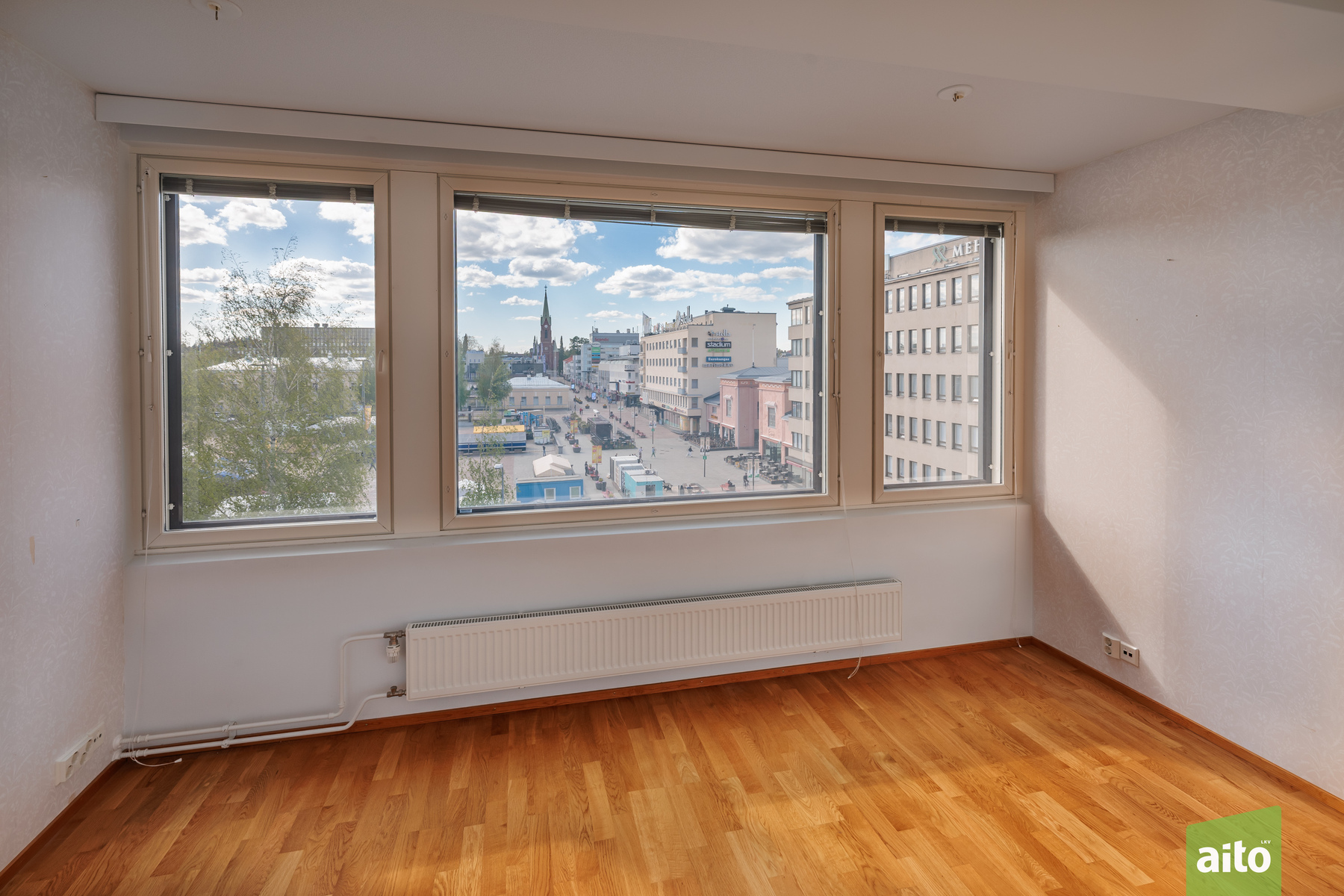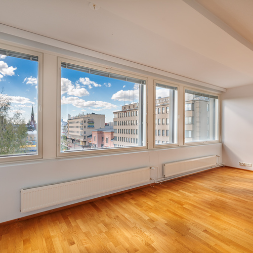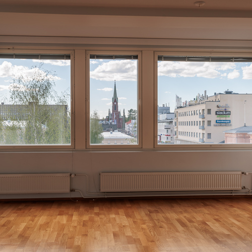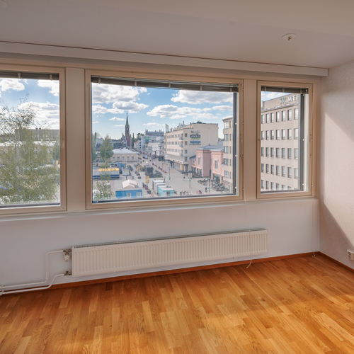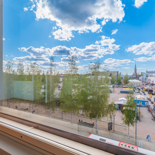 This light-filled three-room apartment on the fifth floor offers effortless city living in the heart of Mikkeli, within the well-known and prestigious Forum building. The 86 m² floor plan is practical and spacious, combining the living room, dining area, and kitchen into a comfortable and functional whole. Two bedrooms provide flexibility for different needs, and the main bedroom has access to a glazed balcony overlooking the beautiful Satamalahti bay. The apartment includes a private sauna and a separate toilet, and the tiled bathroom adds convenience to everyday life. From the living room and kitchen, you can enjoy direct views of the vibrant Mikkeli Market Square.