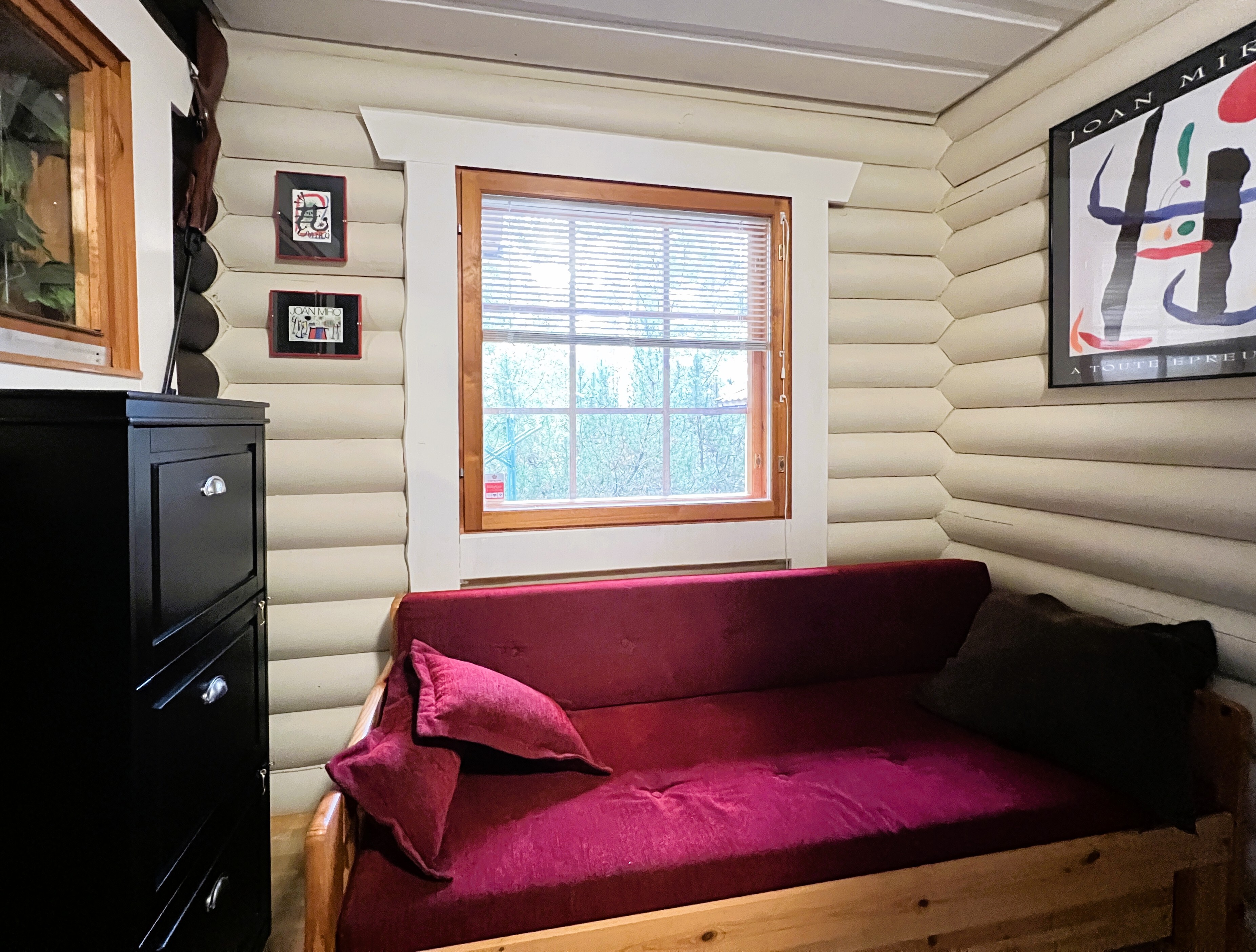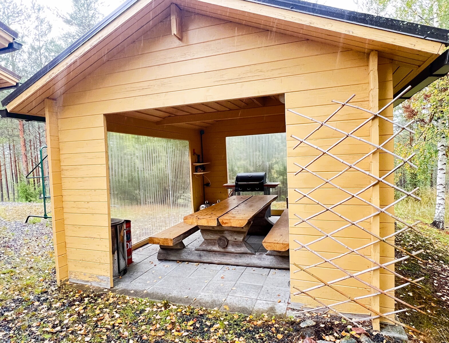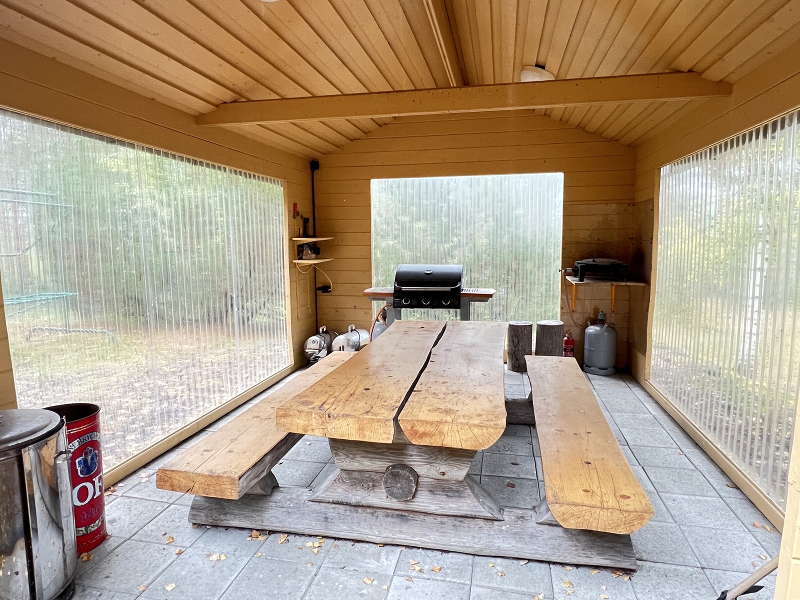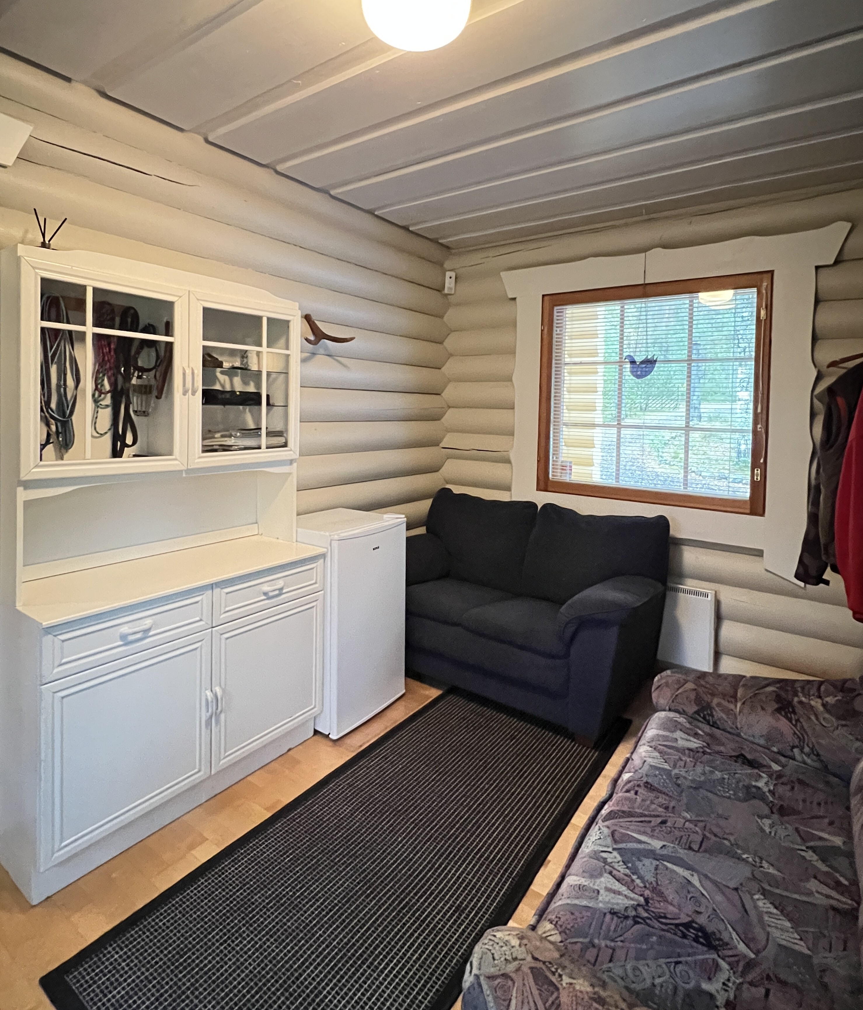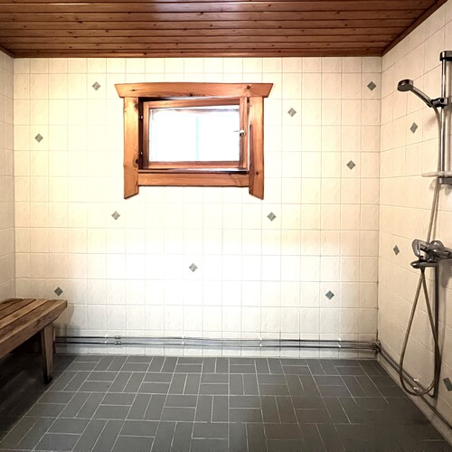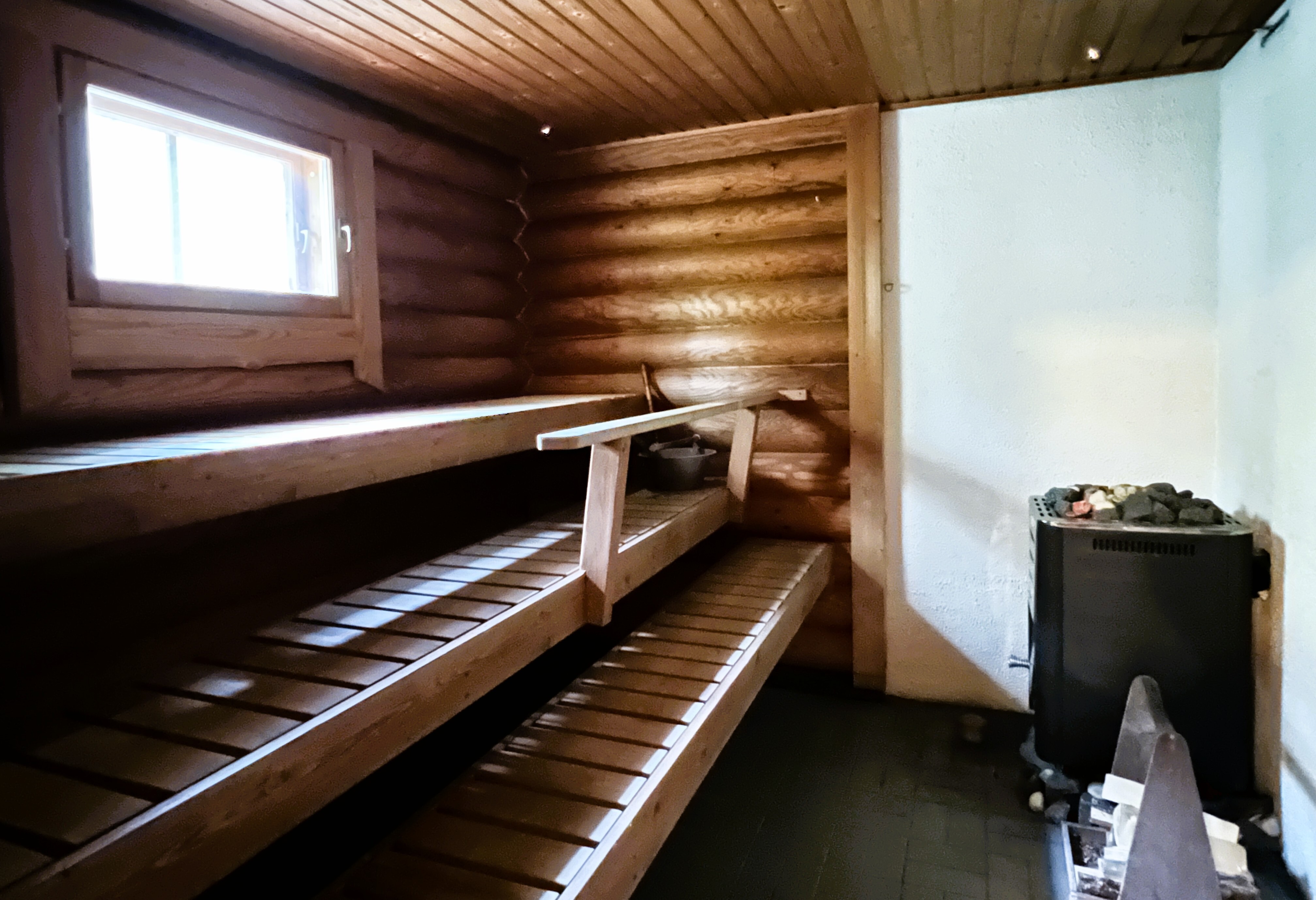 Puukiuas, ikkuna ulos, lauteet. Tilava sauna.