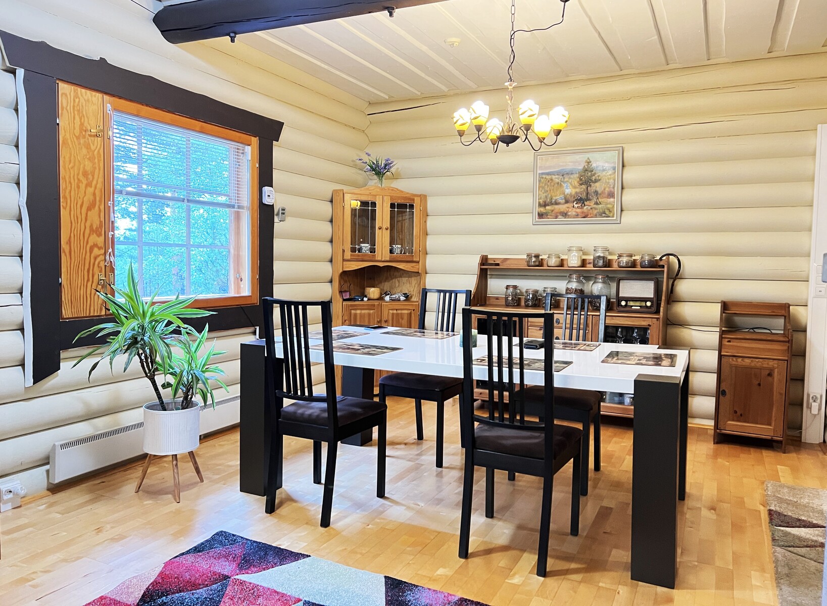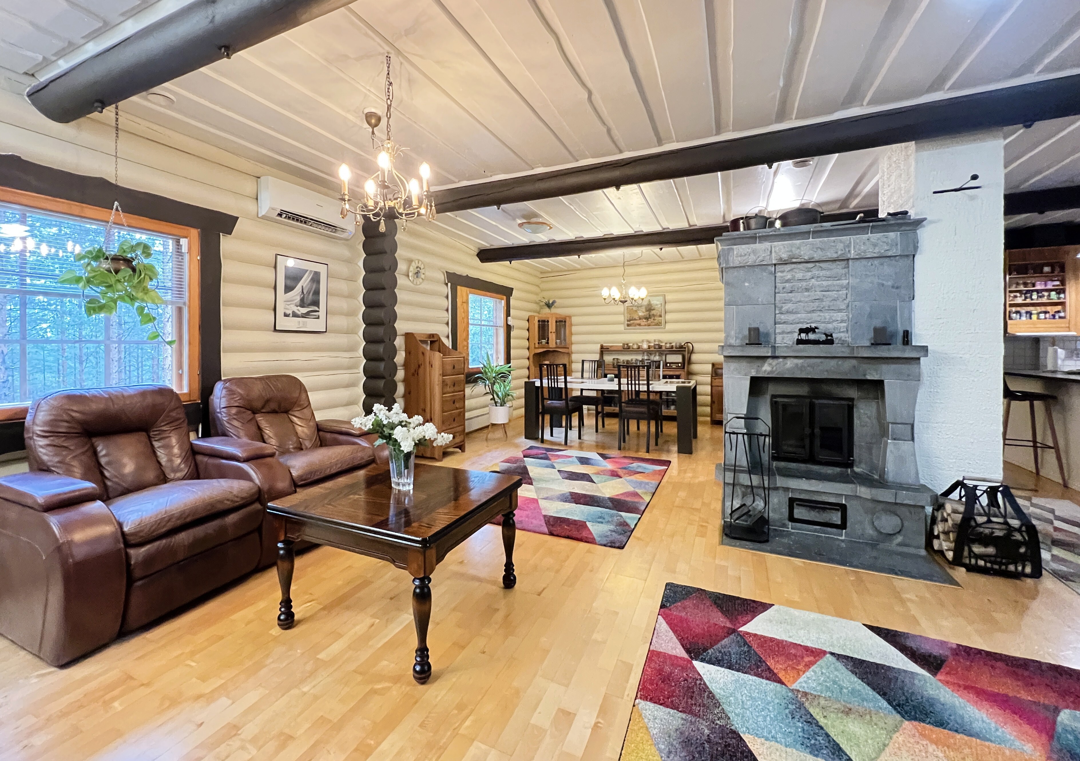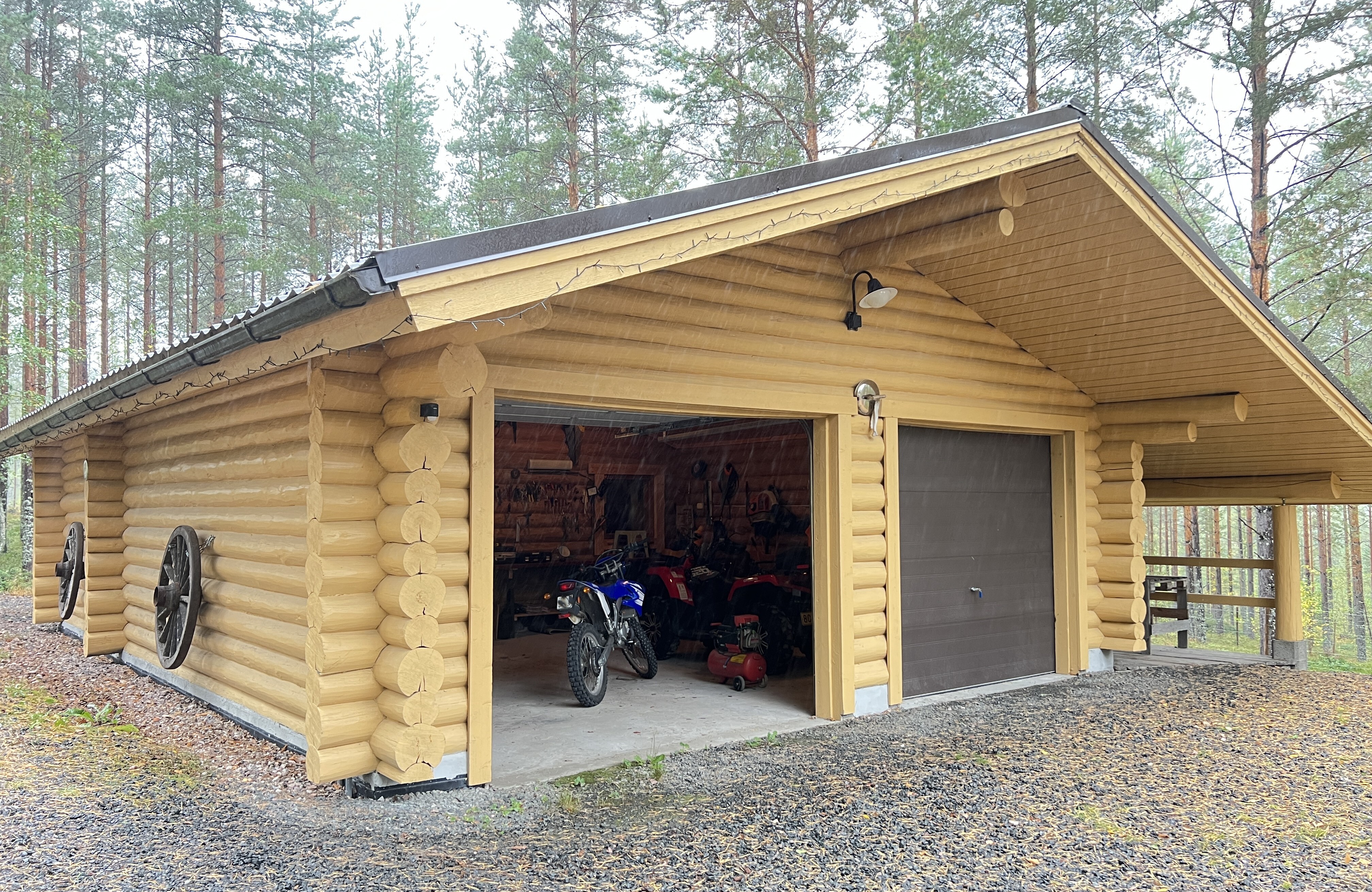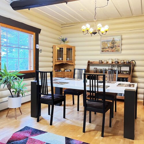 Arkea tukevat käytännölliset ratkaisut: kaksi ilmalämpöpumppua, varaava takka, puuhella sekä valokuituliittymä takaavat nykyaikaisen asumismukavuuden sekä saman etätyömahdollisuuden kuin kaupungissa. Kodin yhteydessä on myös kahden auton hirsinen autotalli varastoineen, kesäkeittiö sekä metsän siimeksessä oleva pieni savusauna, joka kutsuu perinteiseen saunomiseen.