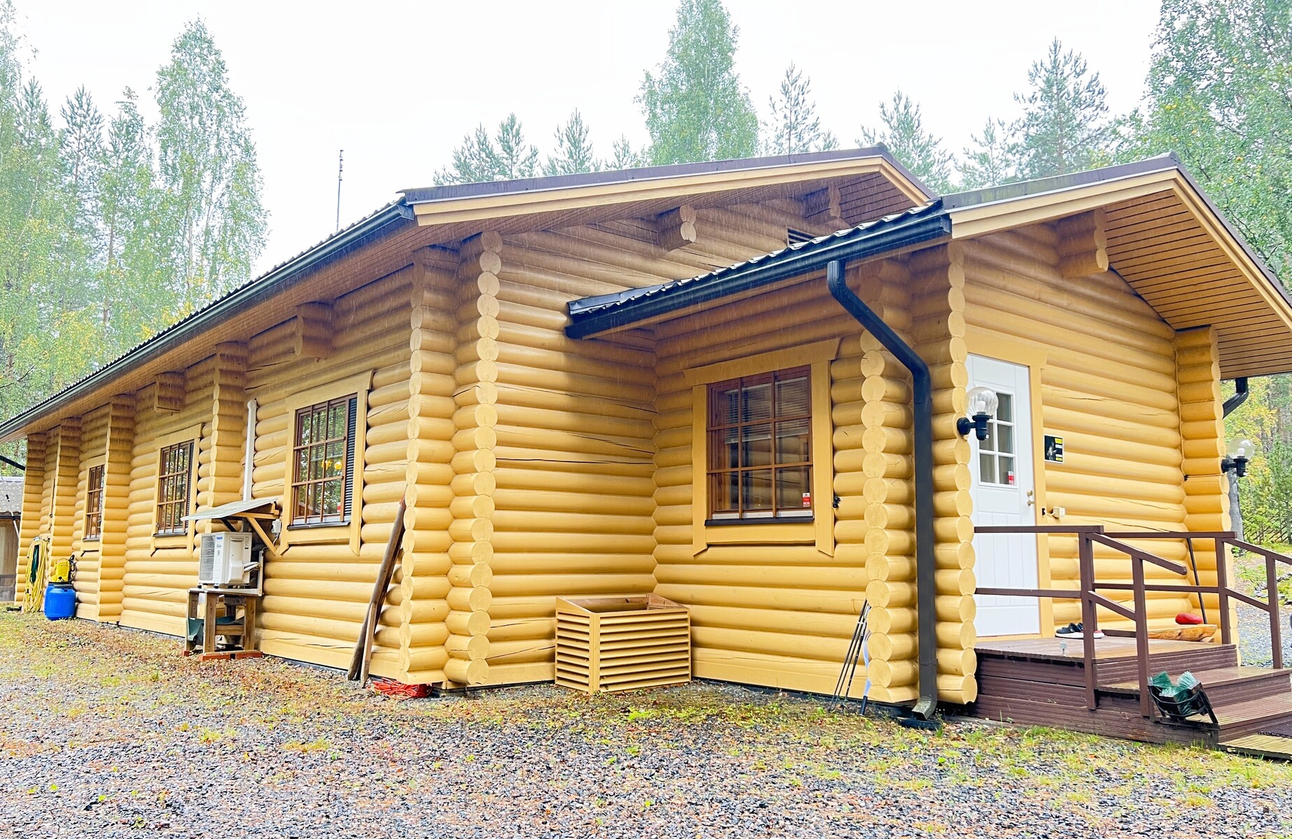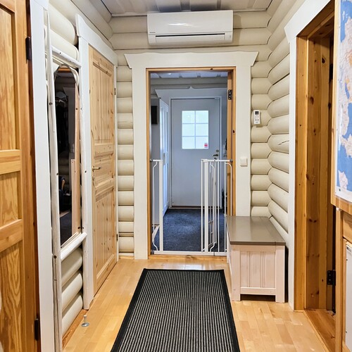 Rajakorventien varrella, kauniin mäntykankaan keskellä, sijaitsee jykevästä hirrestä rakennettu vuonna 1999 valmistunut omakotitalo. Tämä yksitasoinen koti tarjoaa tilaa 140 m², johon mahtuvat avara olohuone varaavalla takalla ja leivinuunilla, käytännöllinen keittiö saarekkeella, kaksi makuuhuonetta sekä sauna- ja kodinhoitotilat. Normaalia korkeampi huonekorkeus ja vaaleaksi maalatut hirsipinnat tekevät tunnelmasta ilmavan ja kodikkaan.