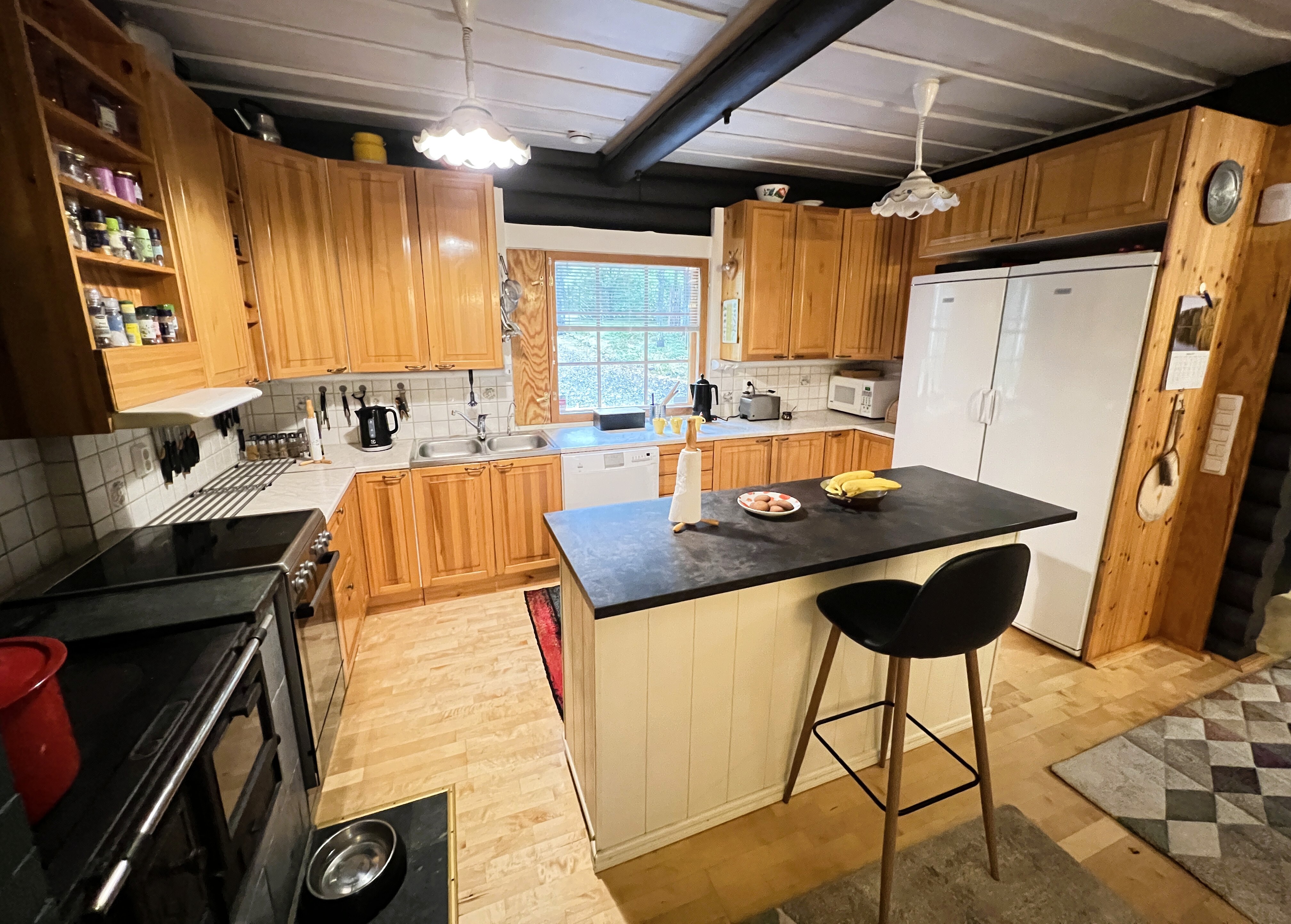 Lisäksi on puuhella ja puukiuas.