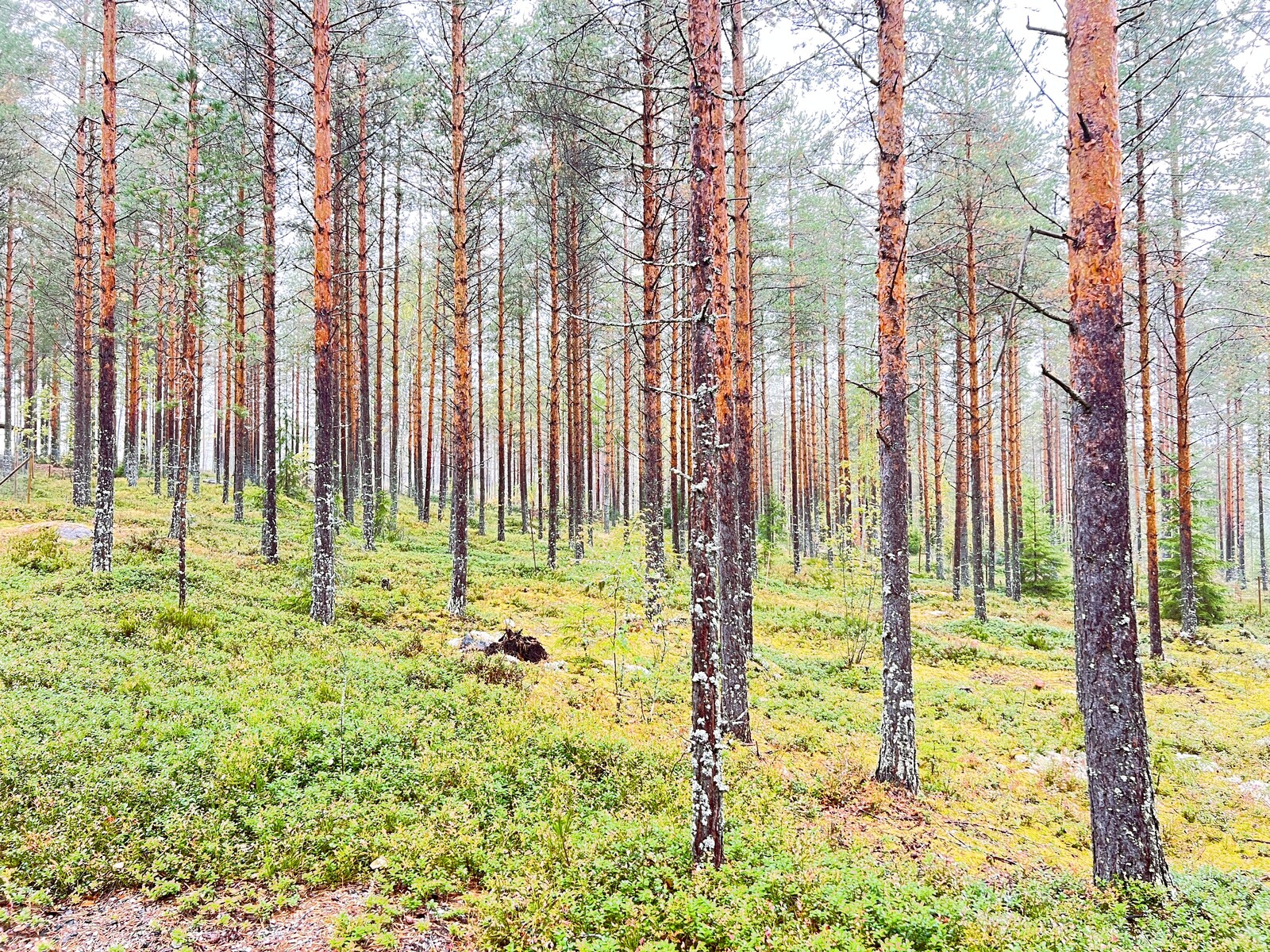 Kovapohjainen hiekka ja kiviperäinen maa. Mäntykangasta, mustikkavarvikkoa.