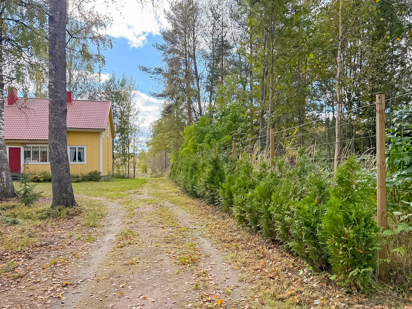 Viitasentieltä pihalle johtava tie on uusittu pari vuotta sitten ja osa rajaa pihan kohdalla on aidattu ja aidan viereen on istutettu tuija-aitaa.