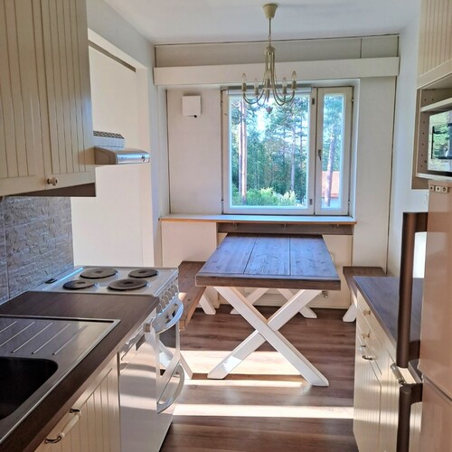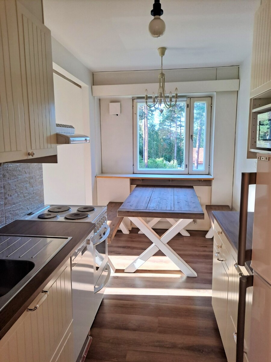 Vuokraan sisältyy mm. pyykinpesukone, ruokailuryhmä ja yksi autokatospaikka.