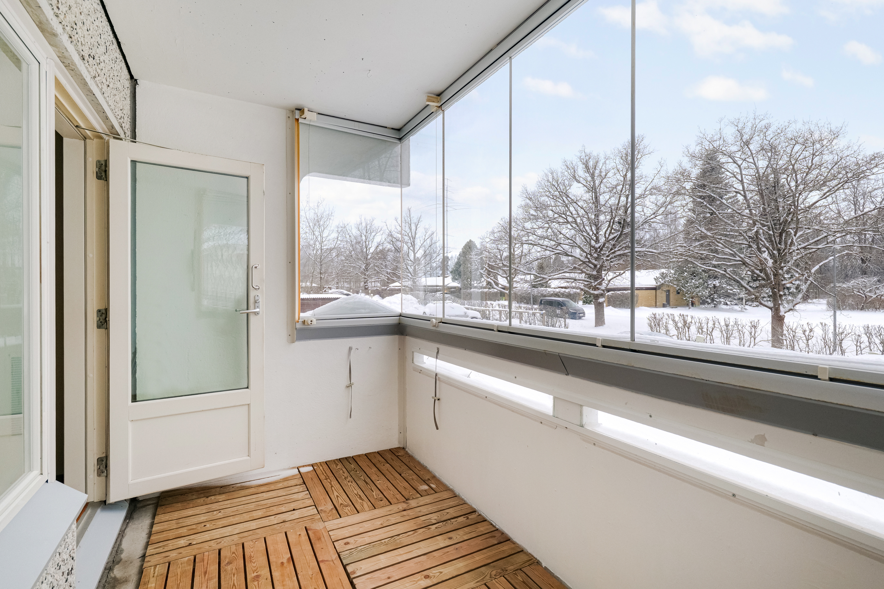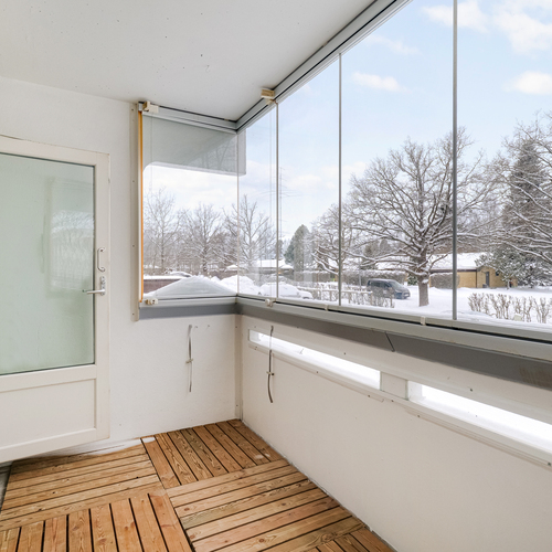 Asunnossa on lasitettu parveke, joka tuo lisätilaa ja mahdollisuuden nauttia näkymistä ympäri vuoden. Ikkunoista avautuvat mukavat ja avarat näkymät, ja asunto on kokonaisuudessaan valoisa.