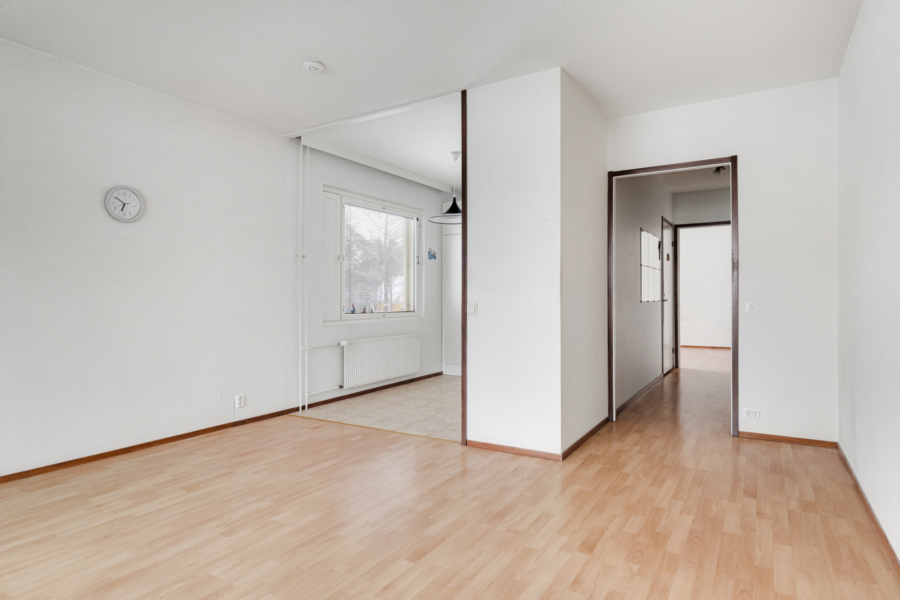 Säilytystilaa on runsaasti, mikä helpottaa arkea ja pitää kodin järjestyksessä. Keittokomerossa on suuri ikkuna, joka tuo luonnonvaloa ja tekee tilasta miellyttävän.