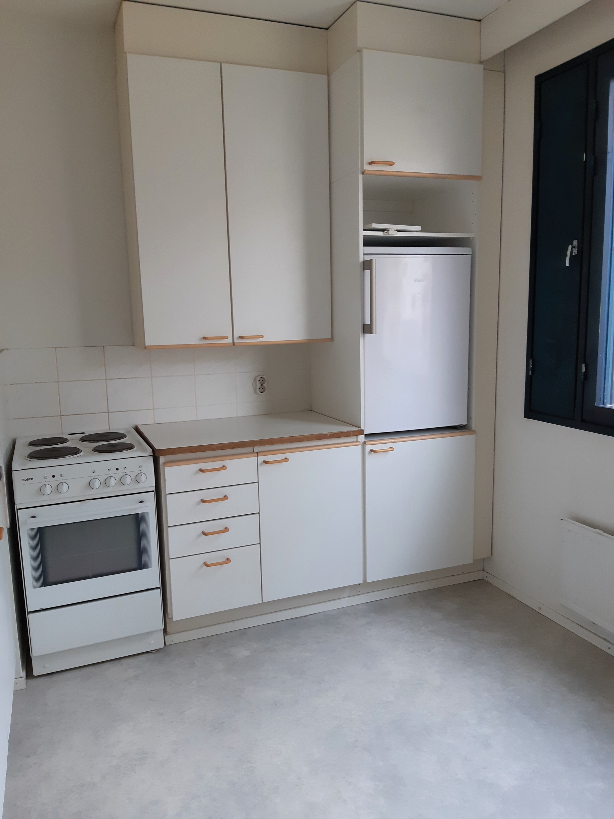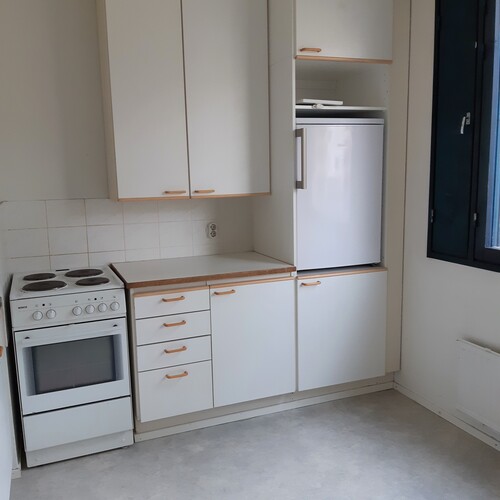 kuvasta poiketen asuntoon on vaihdettu jää-/ pakastekaappi.