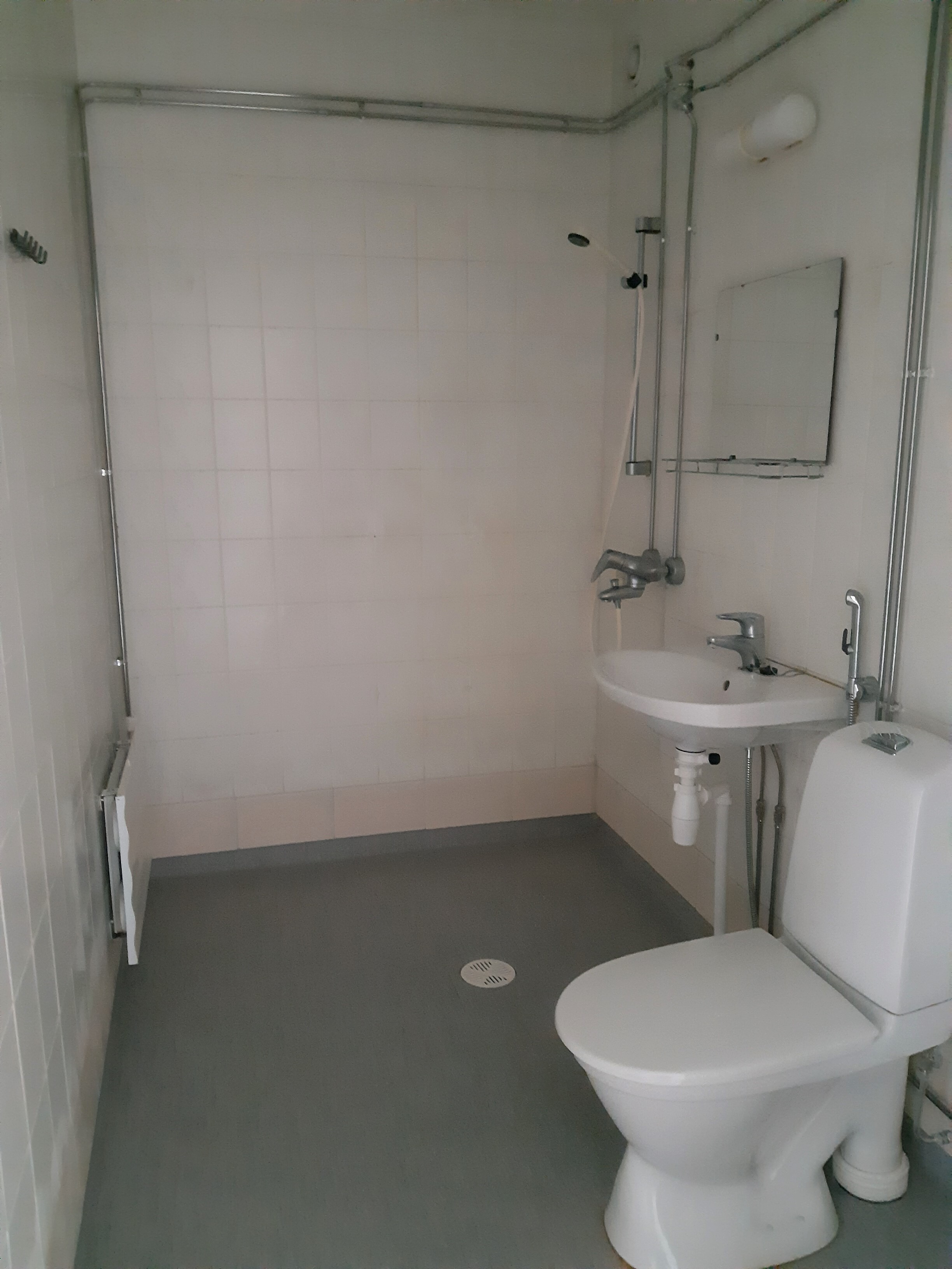 Varusteet: suihku, pesukoneliitäntä, peili