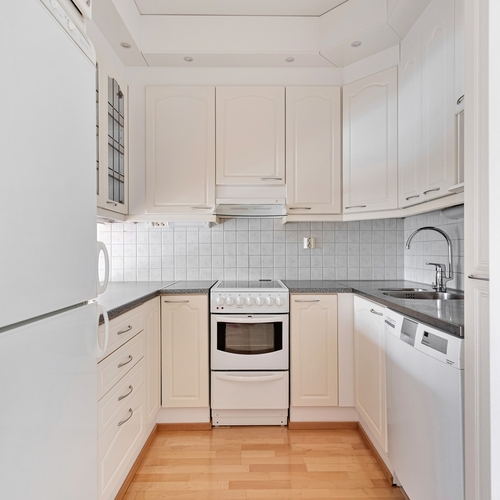 Asunnon pohjaratkaisu on toimiva, keittokomero ja olohuone muodostavat yhtenäisen, avaran oleskelutilan, joka sopii hyvin sekä arkeen että vierailujen kestitsemiseen. Makuuhuoneessa on hyvin säilytystilaa, ja kylpyhuone on siisti sekä käytännöllinen.