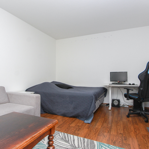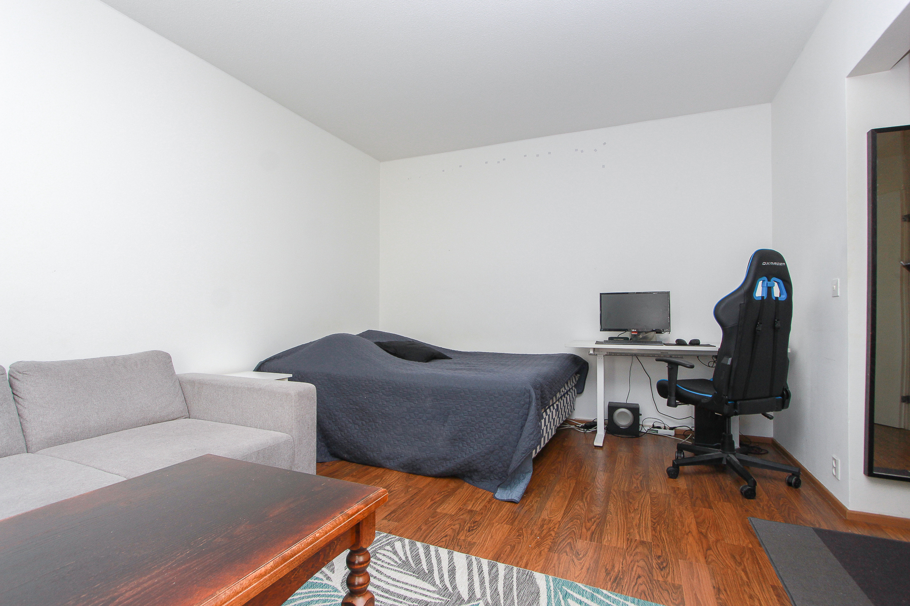 Lattia laminaattia. Seinät maalattu. Olohuoneesta käynti parvekkeelle.