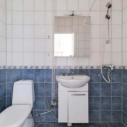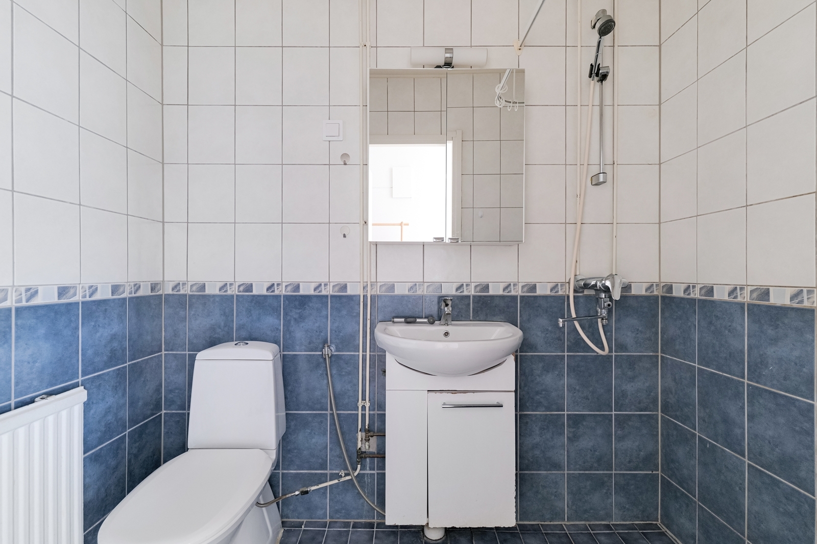 Varusteet: suihku, allaskaappi, peilikaappi, pesukoneliitäntä, kiinteät valaisimet